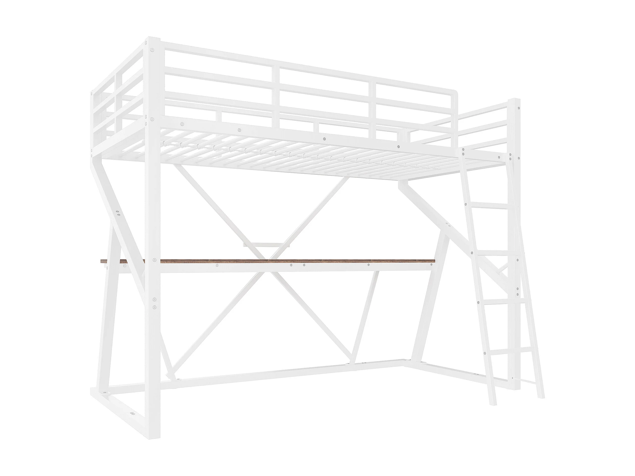 90 x 200 cm Hochbett – Kinderbett mit LED-Beleuchtung und Schreibtisch – weiß – Matratze nicht enthalten.