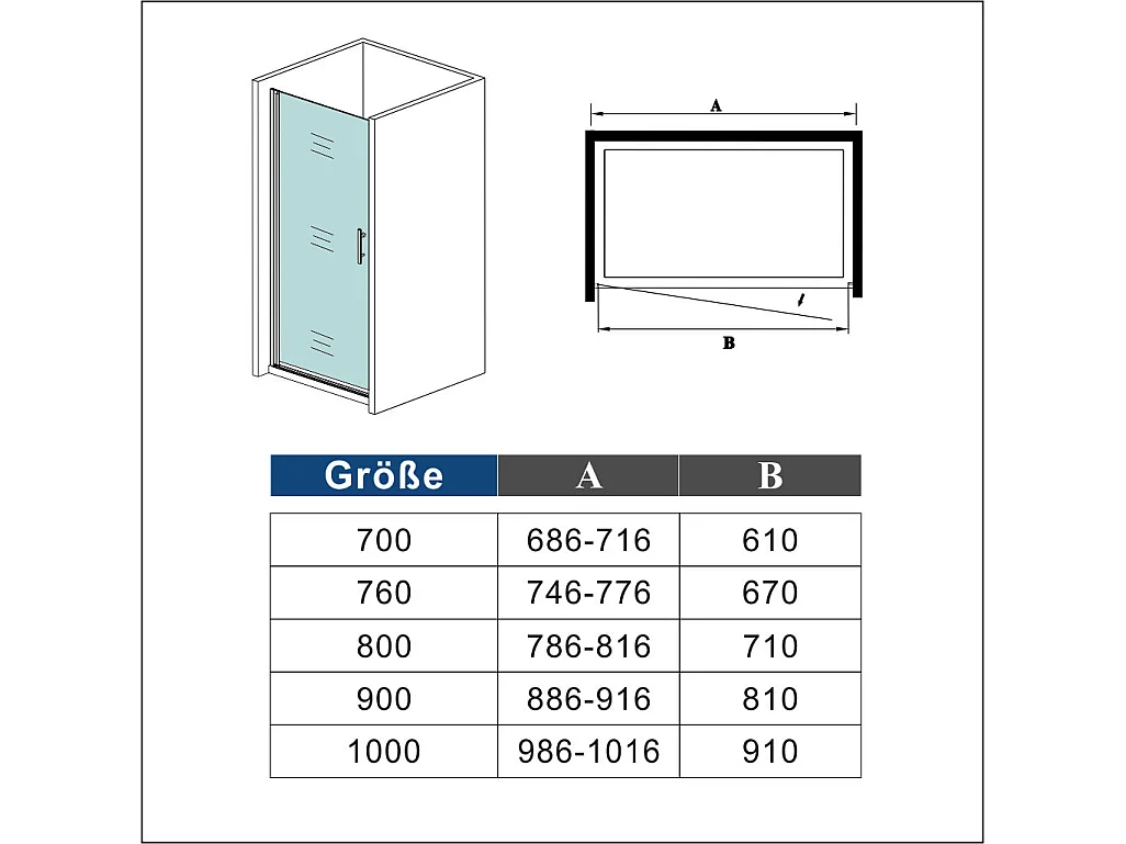 90x185cm Duschtrennwand Drehtür Glastür Nischentür Duschtür Duschkabine weiß matt mit rechtsseitigem Aluminiumprofil