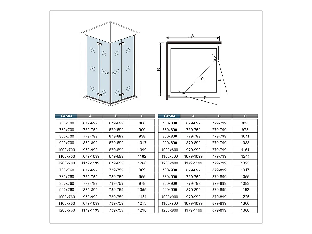 90x195cm 6mm Sicherheitsglas Duschwand Faltwand Duschkabine Duschtür Scharniertür
