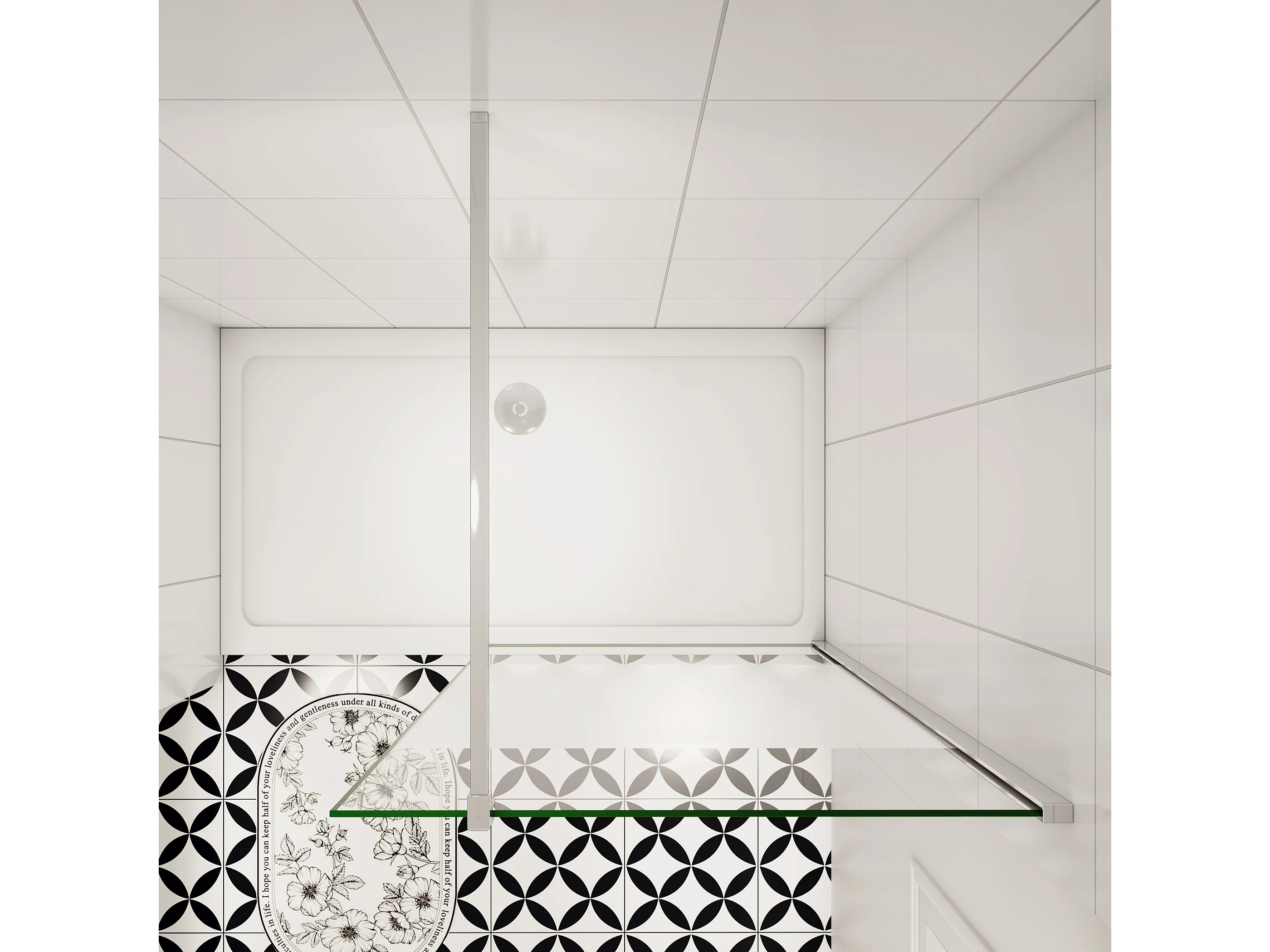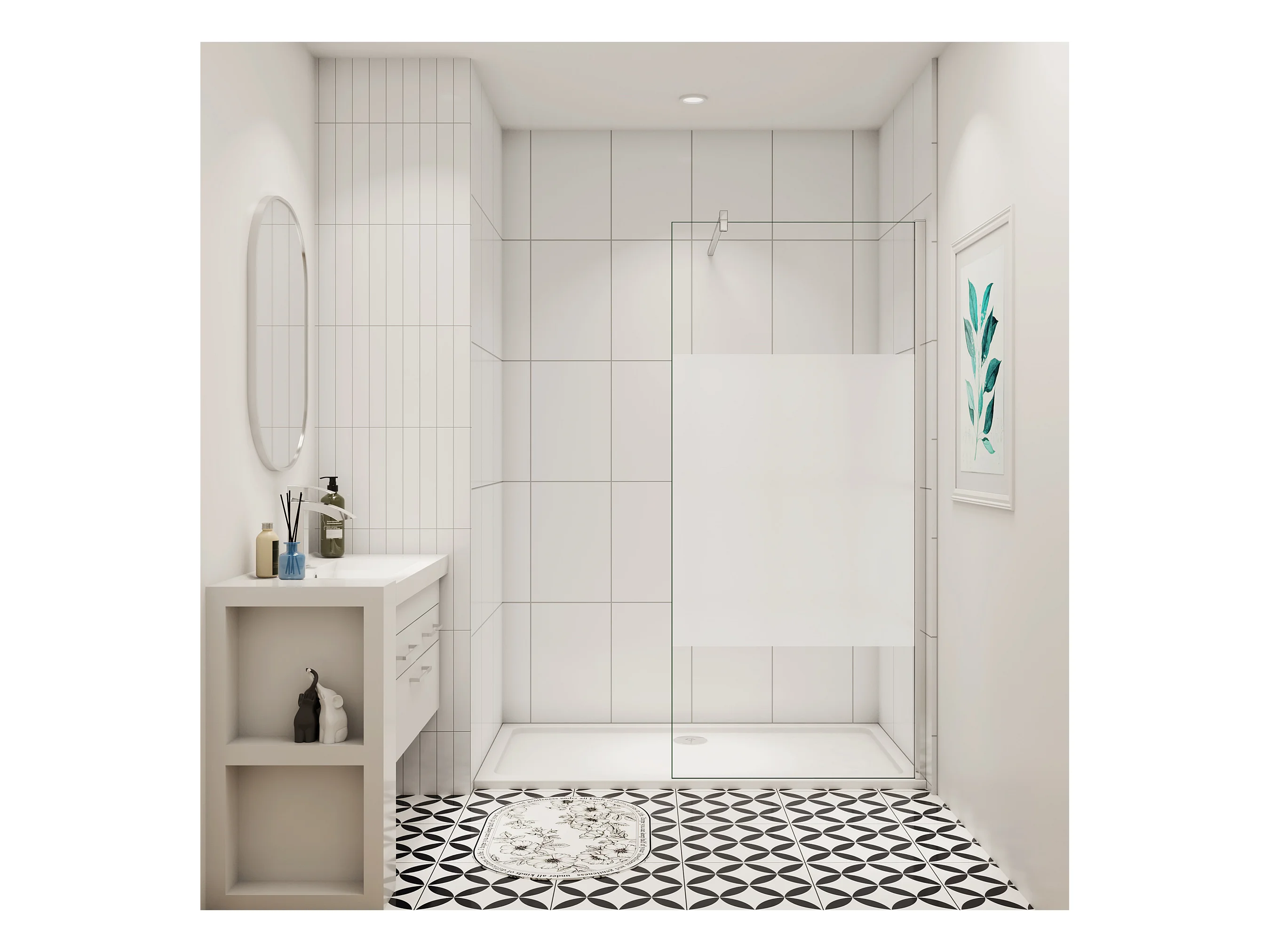 90x200cm Duschabtrennung Walk In 10mm Nano ESG Milchglasstreifen Duschabtrennung + F Form:90cm Stabilisator Höhe 200cm