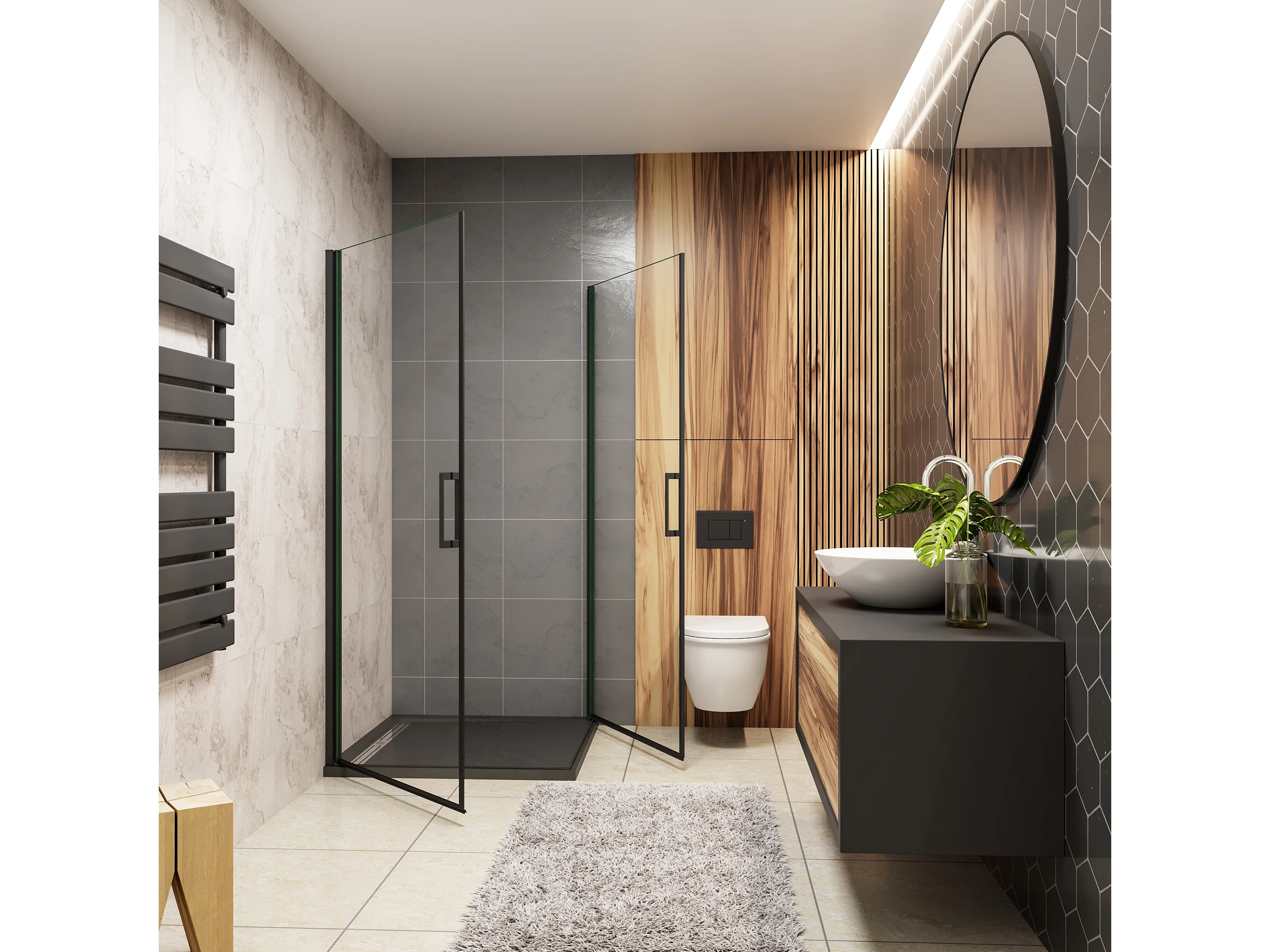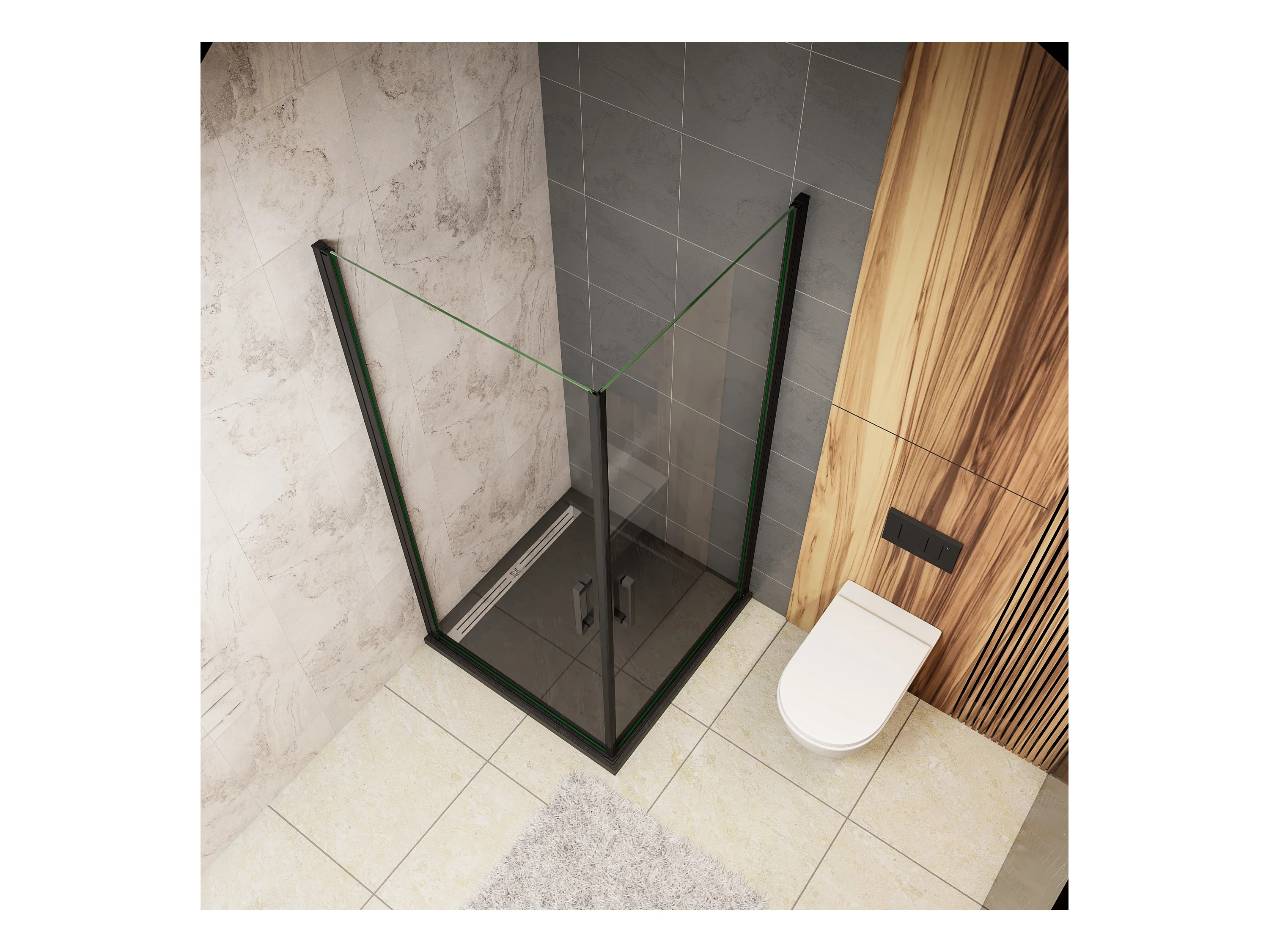 90x80x200cm 8mm Duschtrennwand Drehtür Glastür Duschtür Duschkabine schwarz