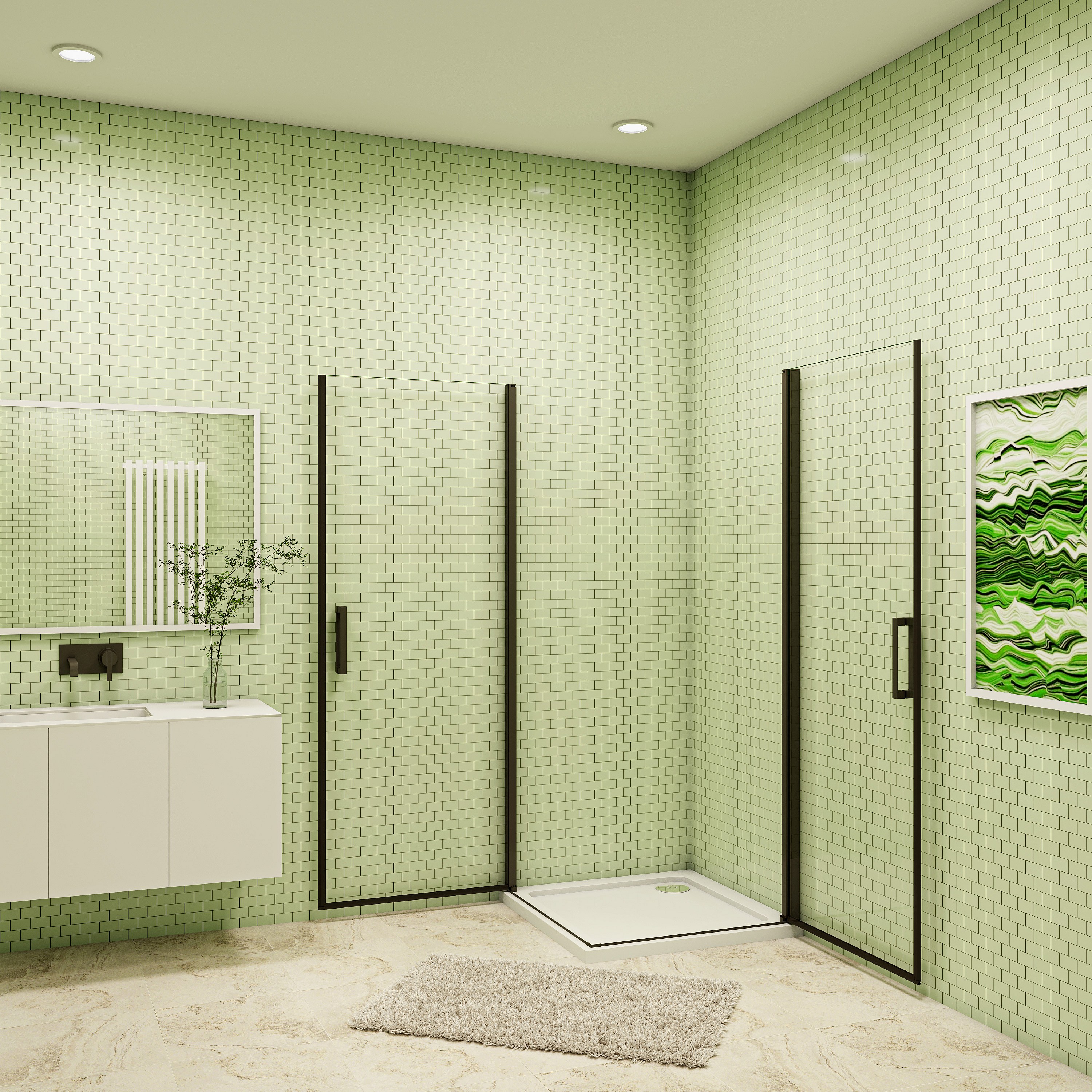 90x80x200cm 8mm Duschtrennwand Drehtür Glastür Duschtür Duschkabine schwarz mit Duschwand