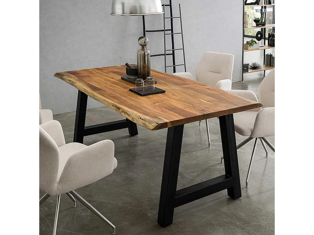 A Gestell Esstisch aus Akazie Massivholz & Metall natürlicher Baumkante