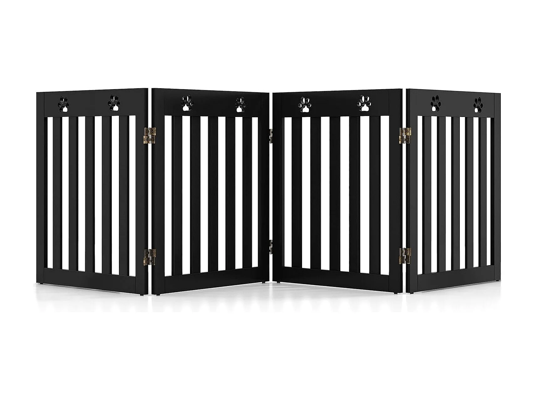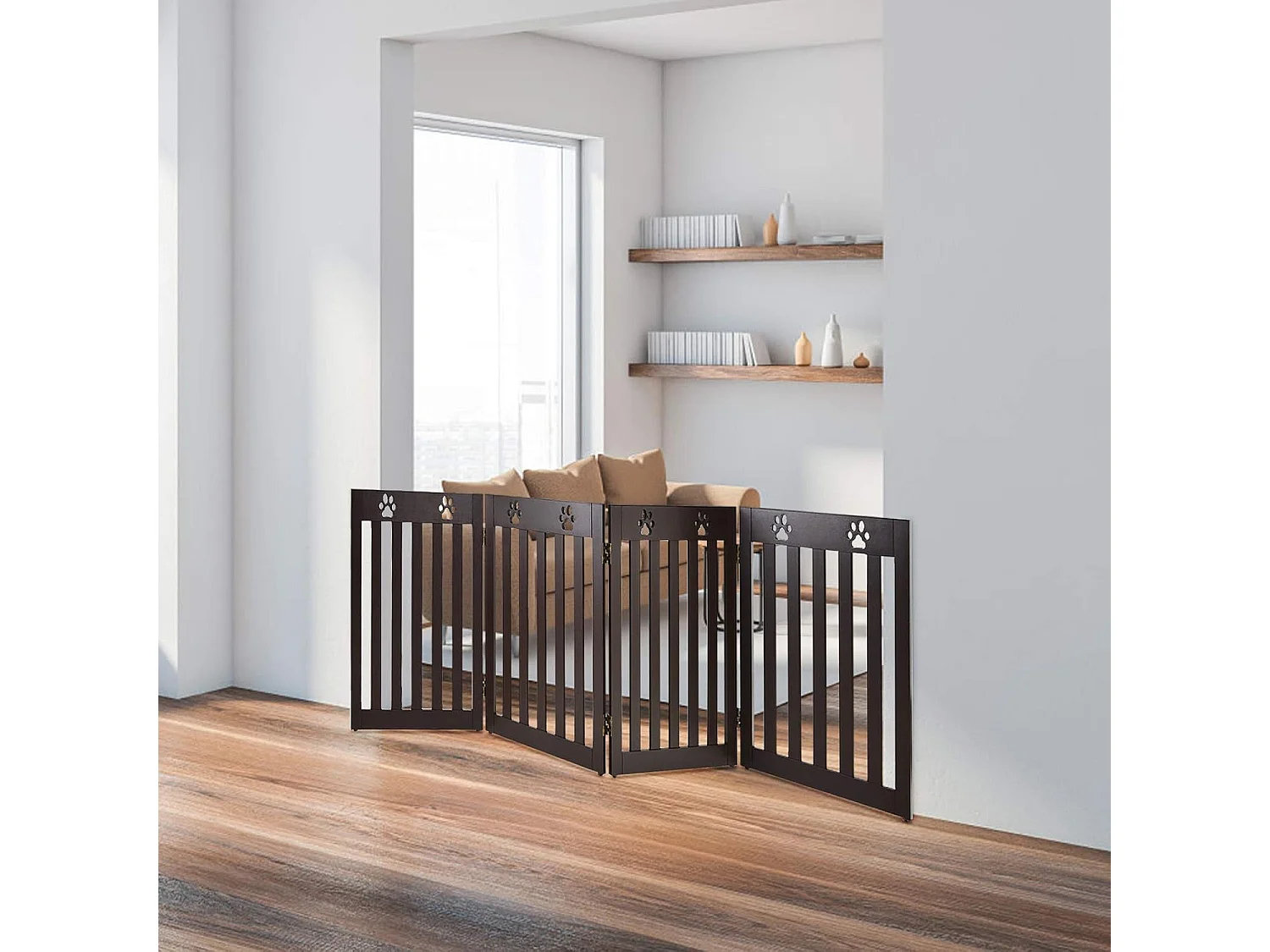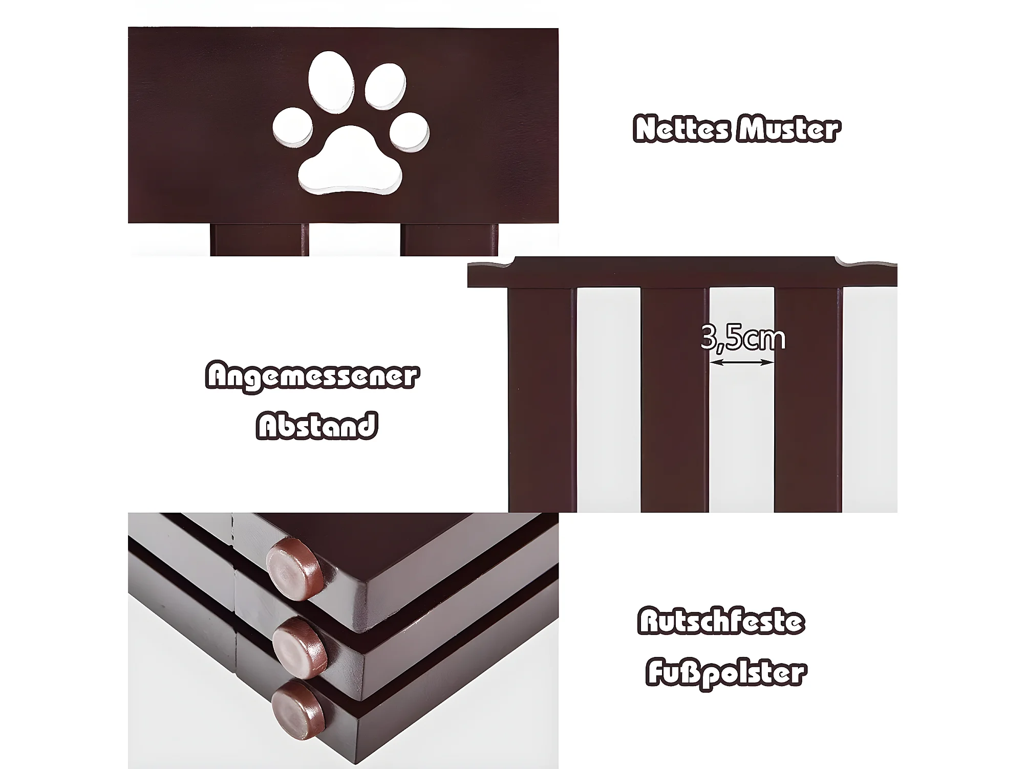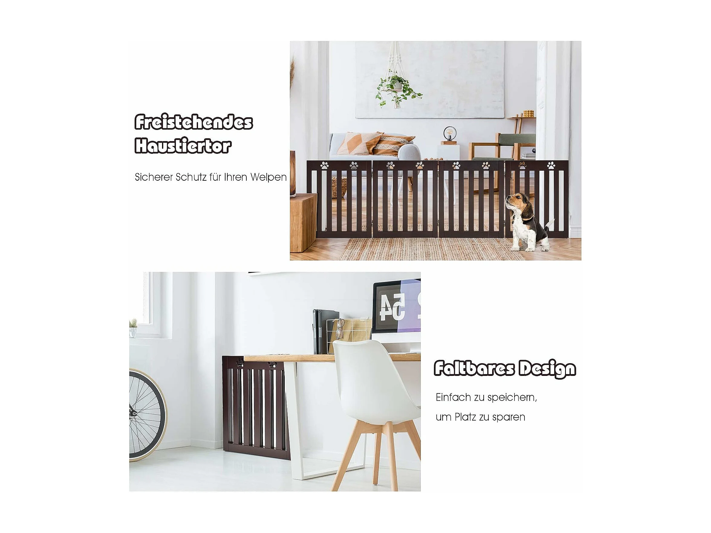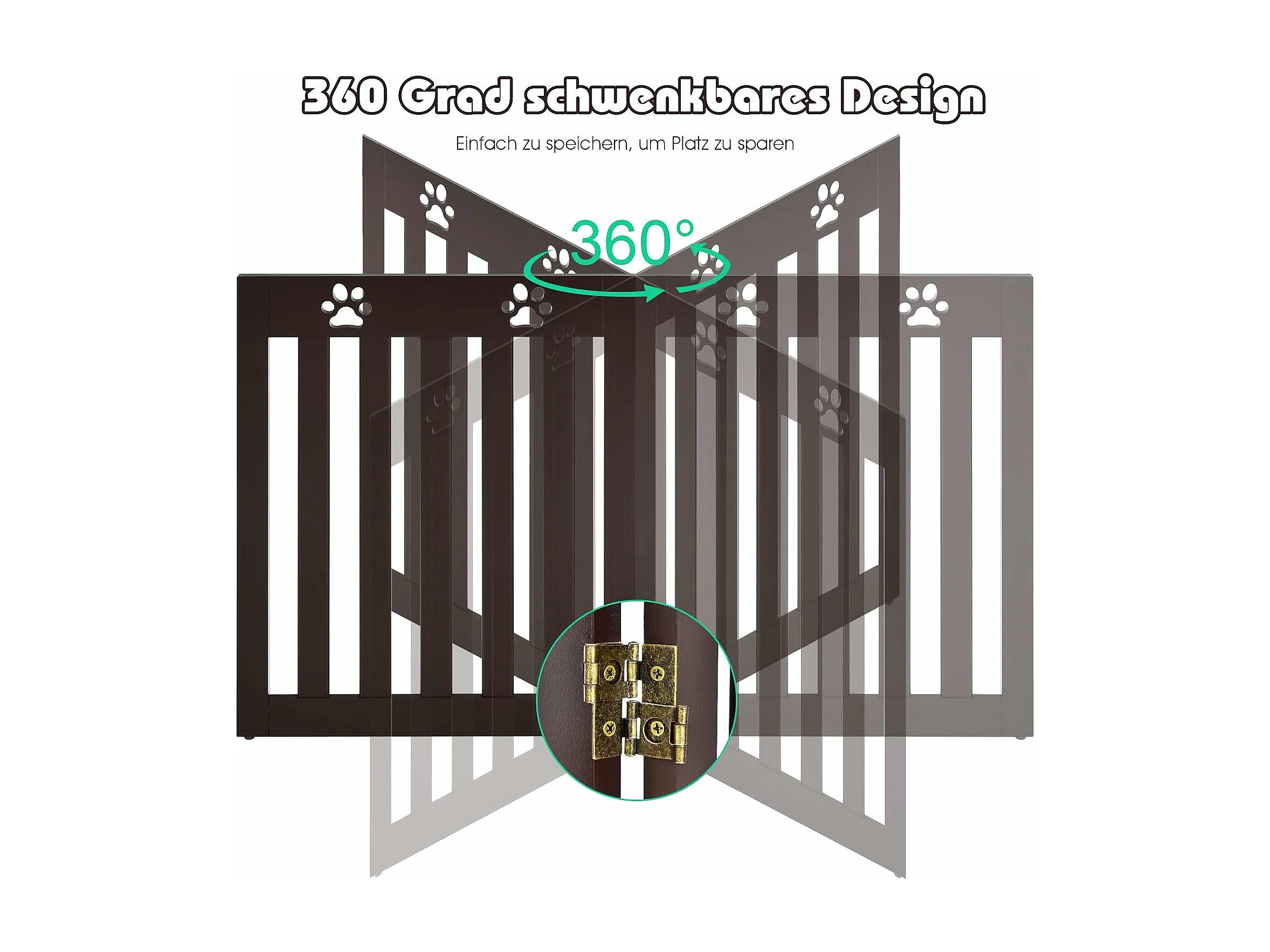 Absperrgitter Hunde, Schutzgitter Holz, Kindergitter klappbar, Treppengitter 60cm Hoch, Hundeabsperrgitter flexibel Türschutzgitter (4 Paneelen, Braun) BE9623