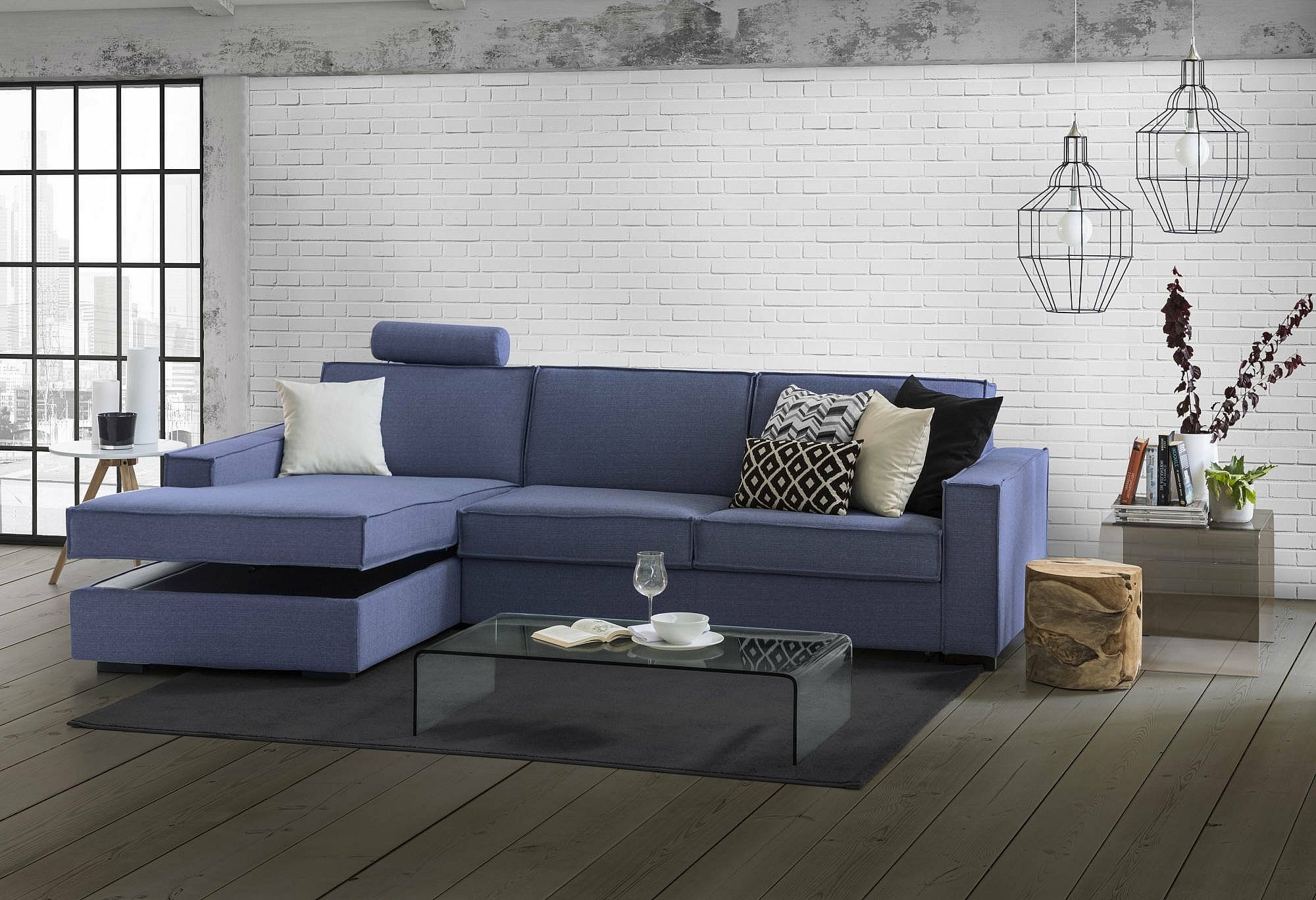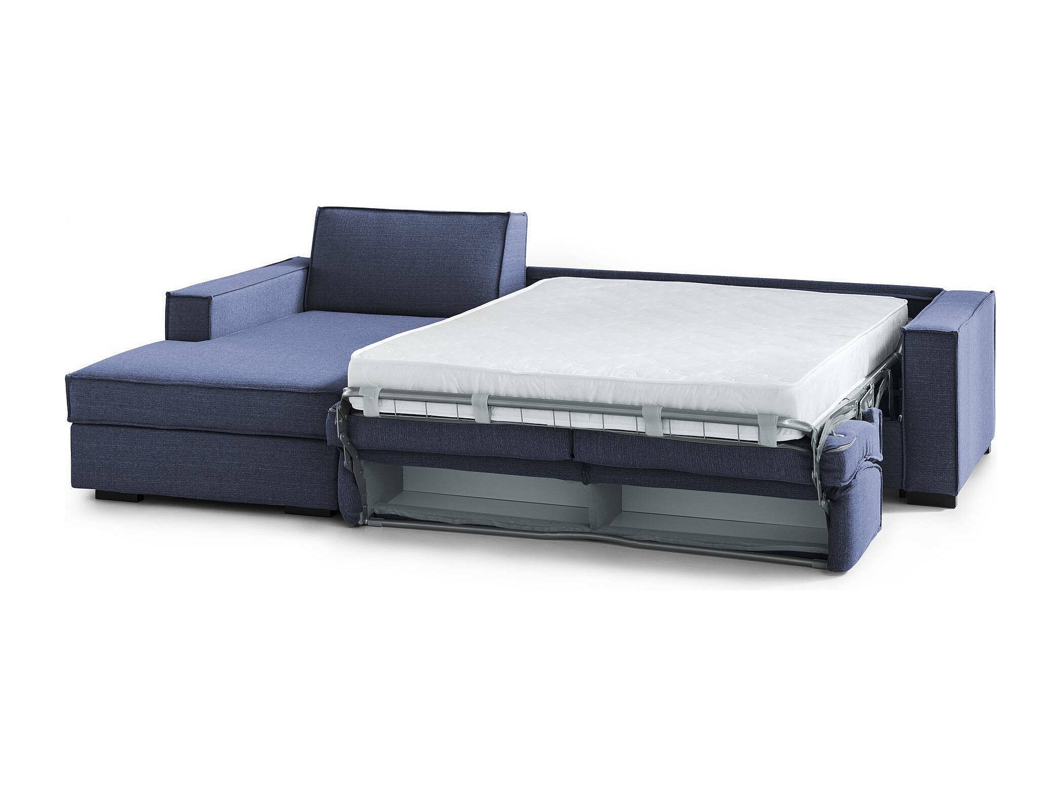 Adelina Schlafsofa, Ecksofa, 100 % Made in Italy, Sofa mit drehbarer Öffnung, linke Stauraumhalbinsel, mit Standardarmlehnen, 280 x 95 x 90 cm, Blau