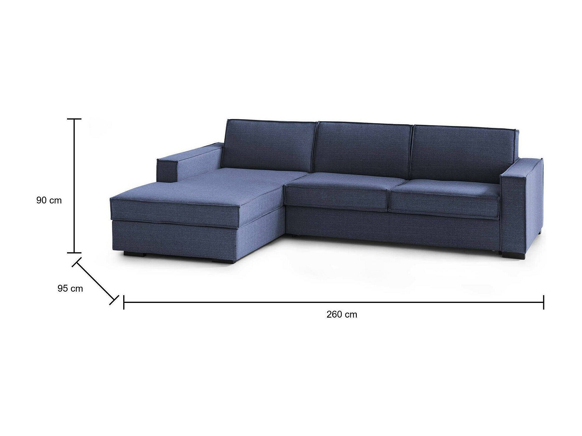 Adima Schlafsofa, Ecksofa, 100 % Made in Italy, Sofa mit drehbarer Öffnung, linke Stauraumhalbinsel, mit schmalen Armlehnen, 260 x 95 x 90 cm, Blau