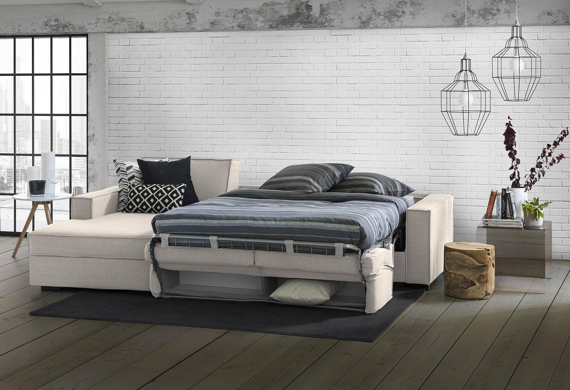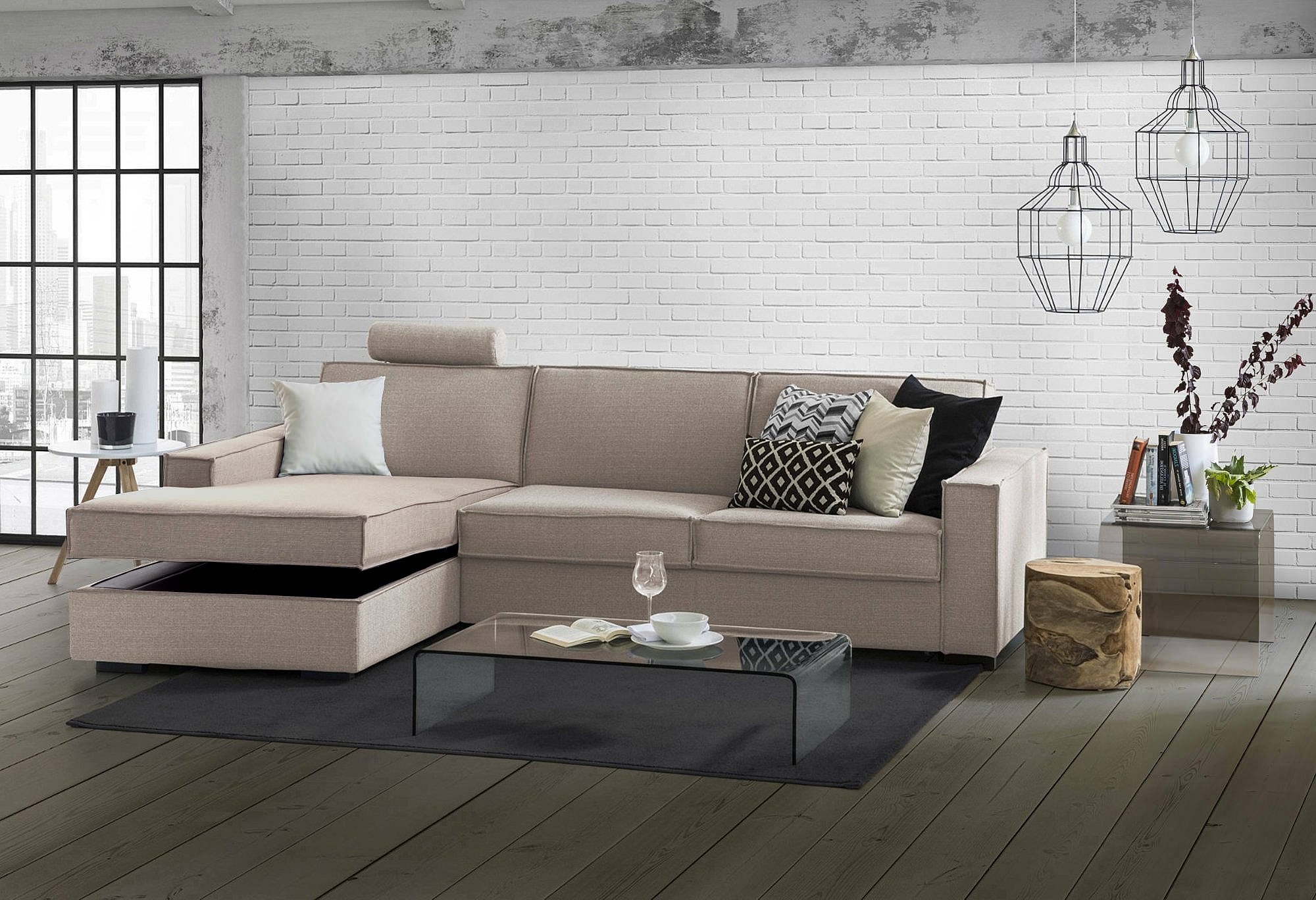 Adima Schlafsofa, Ecksofa, 100 % Made in Italy, Sofa mit drehbarer Öffnung, linke Stauraumhalbinsel, mit schmalen Armlehnen, cm 260 x 95 x 90, Taupe