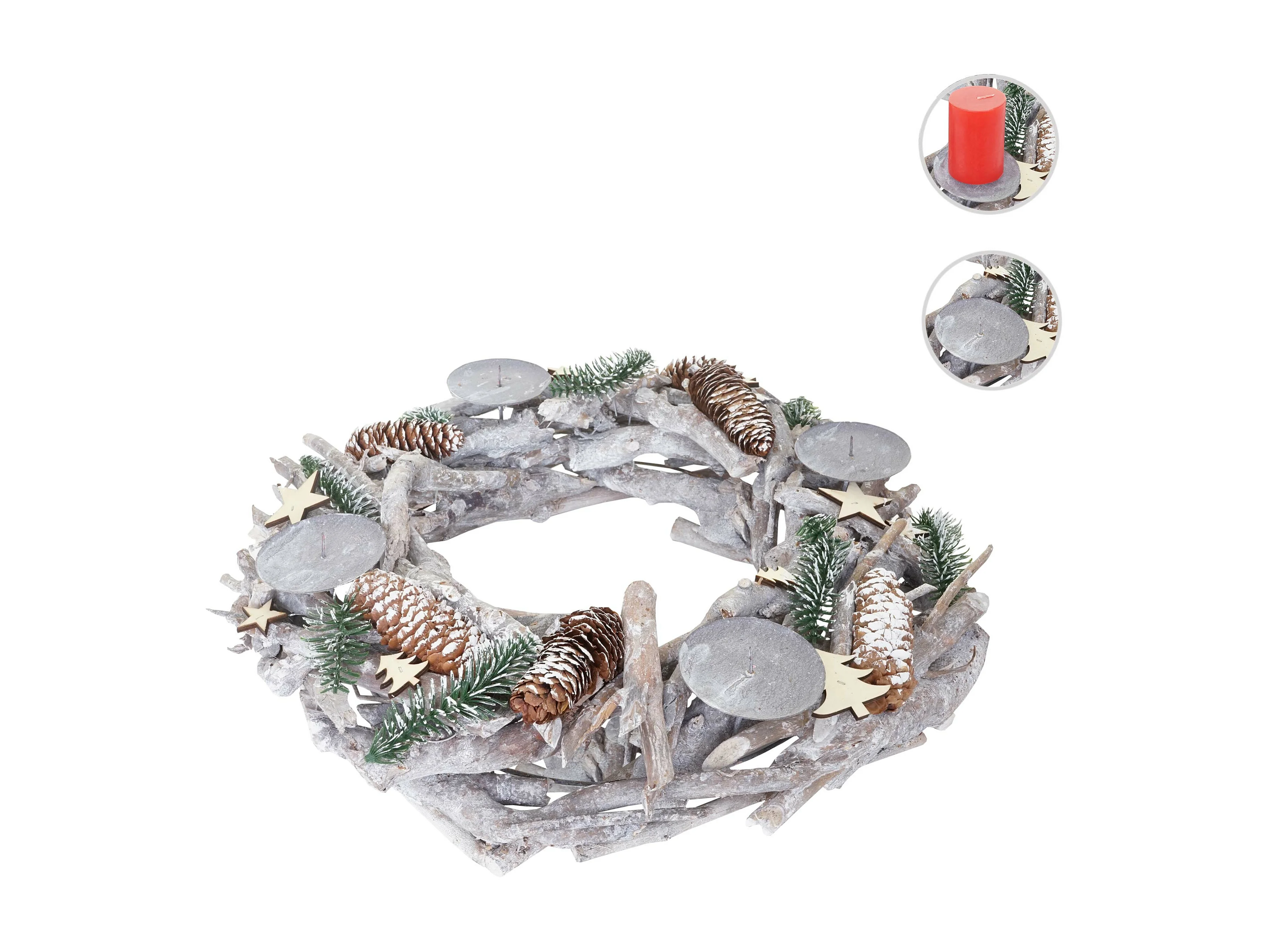 Adventskranz XXL rund Holz ohne Kerzen, Ohne Kerzen