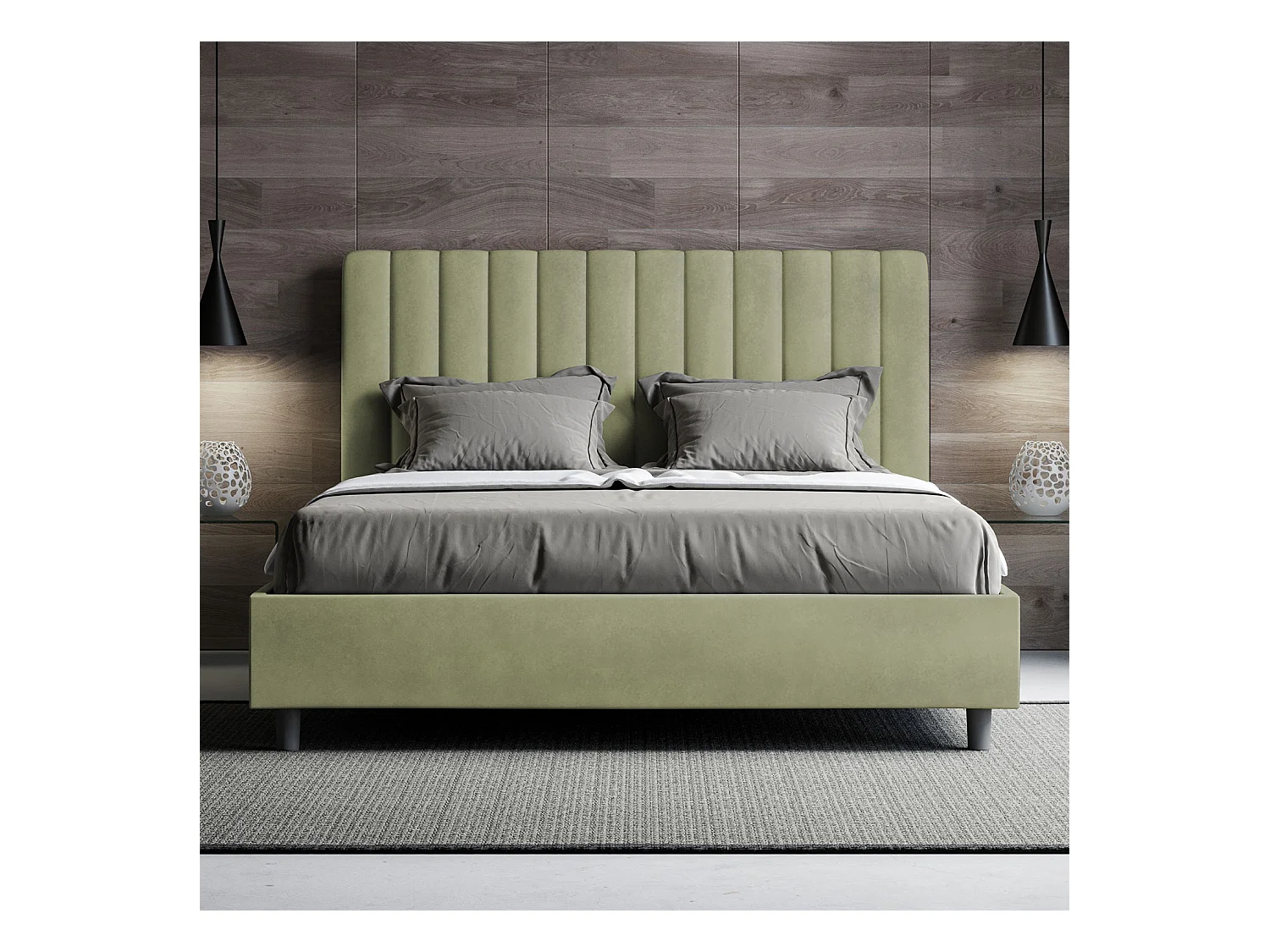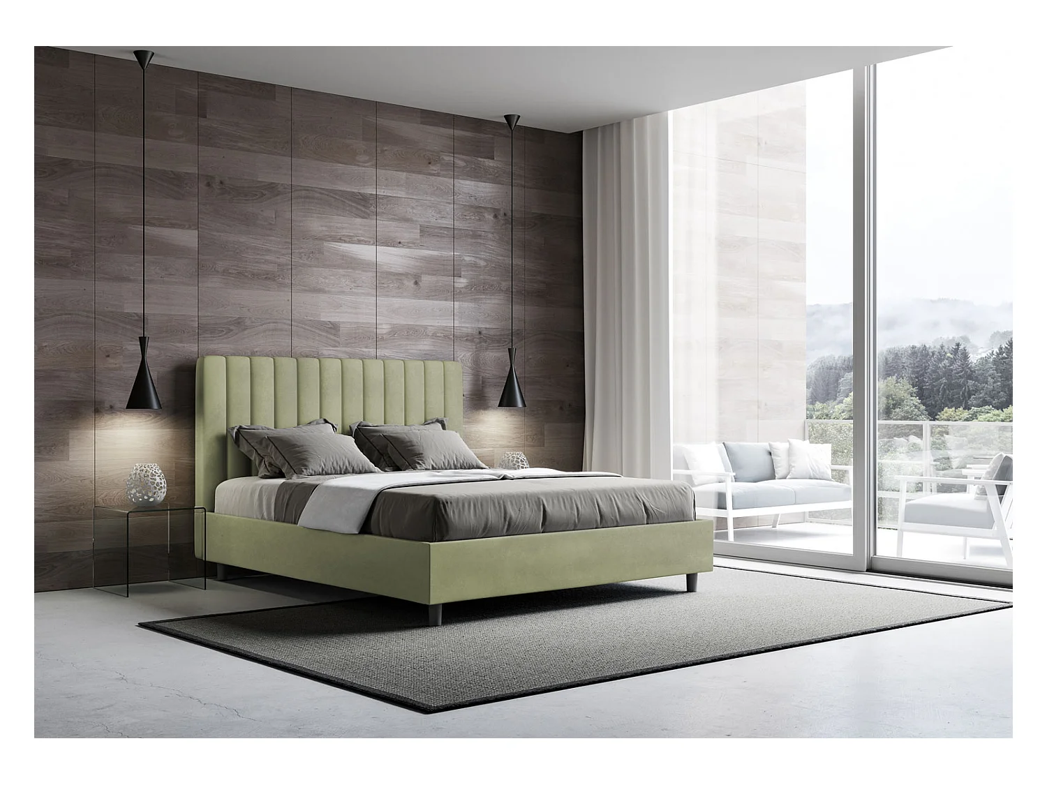 Agueda Green Tea Mikrofaser-Doppelhochbett mit Stauraum, gepolstert, 160 x 190