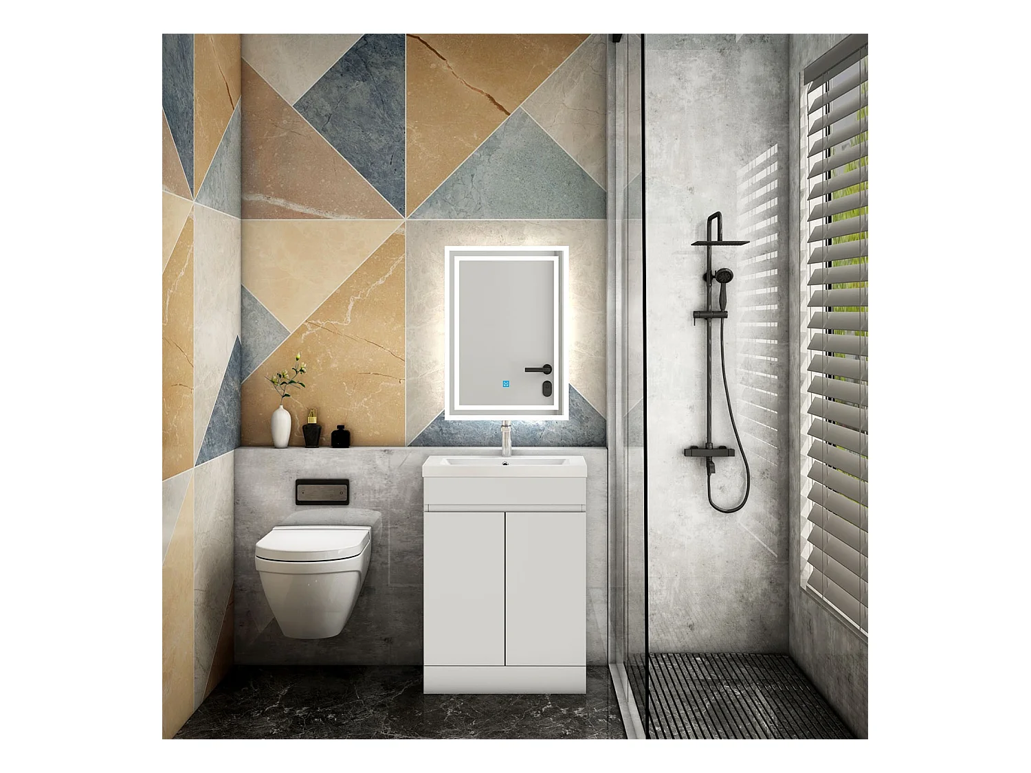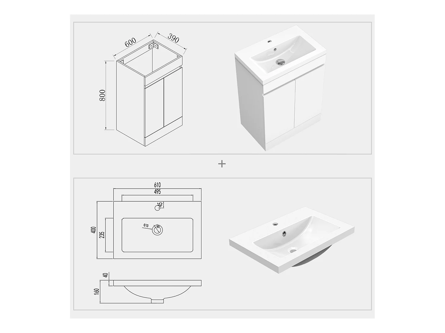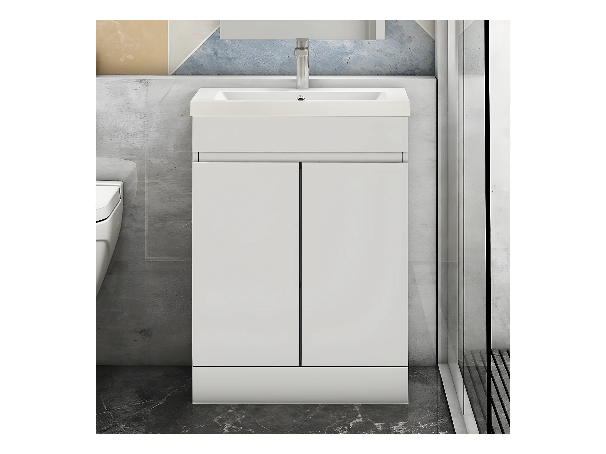 AICA Badezimmermöbel 60 cm Mineralguss waschbecken mit unterschrank -Weiß Matt Standschrank - KANY