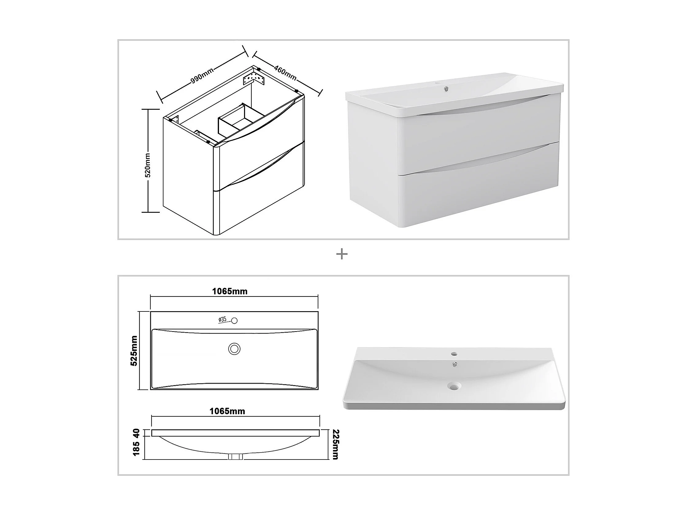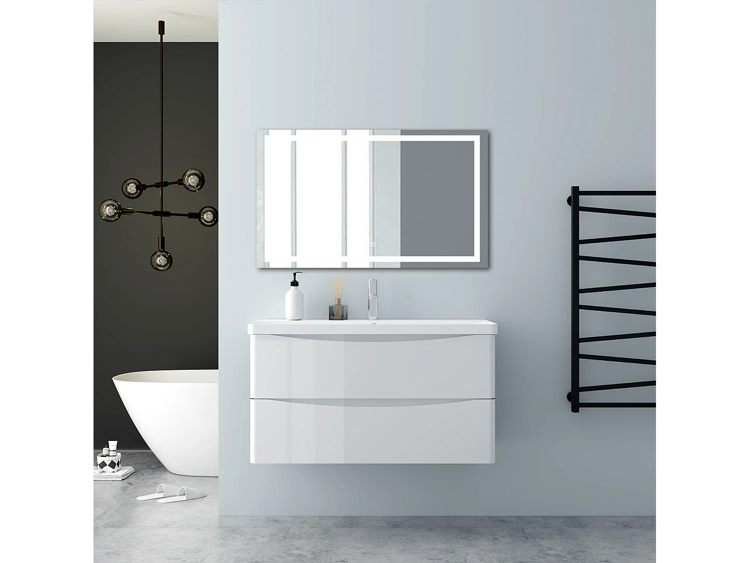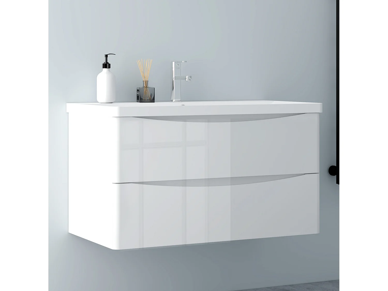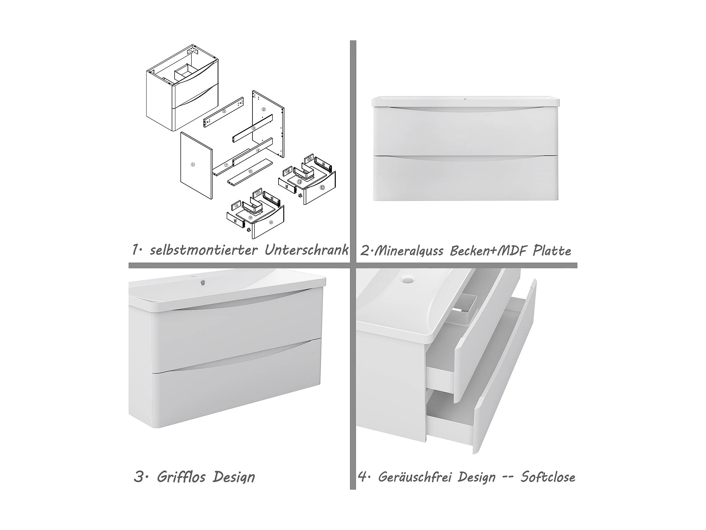 AICA Badezimmerschrank hängend 100cm Mineralguss waschbecken mit Unterschrank - Hochglanz Weiß - SEMAL
