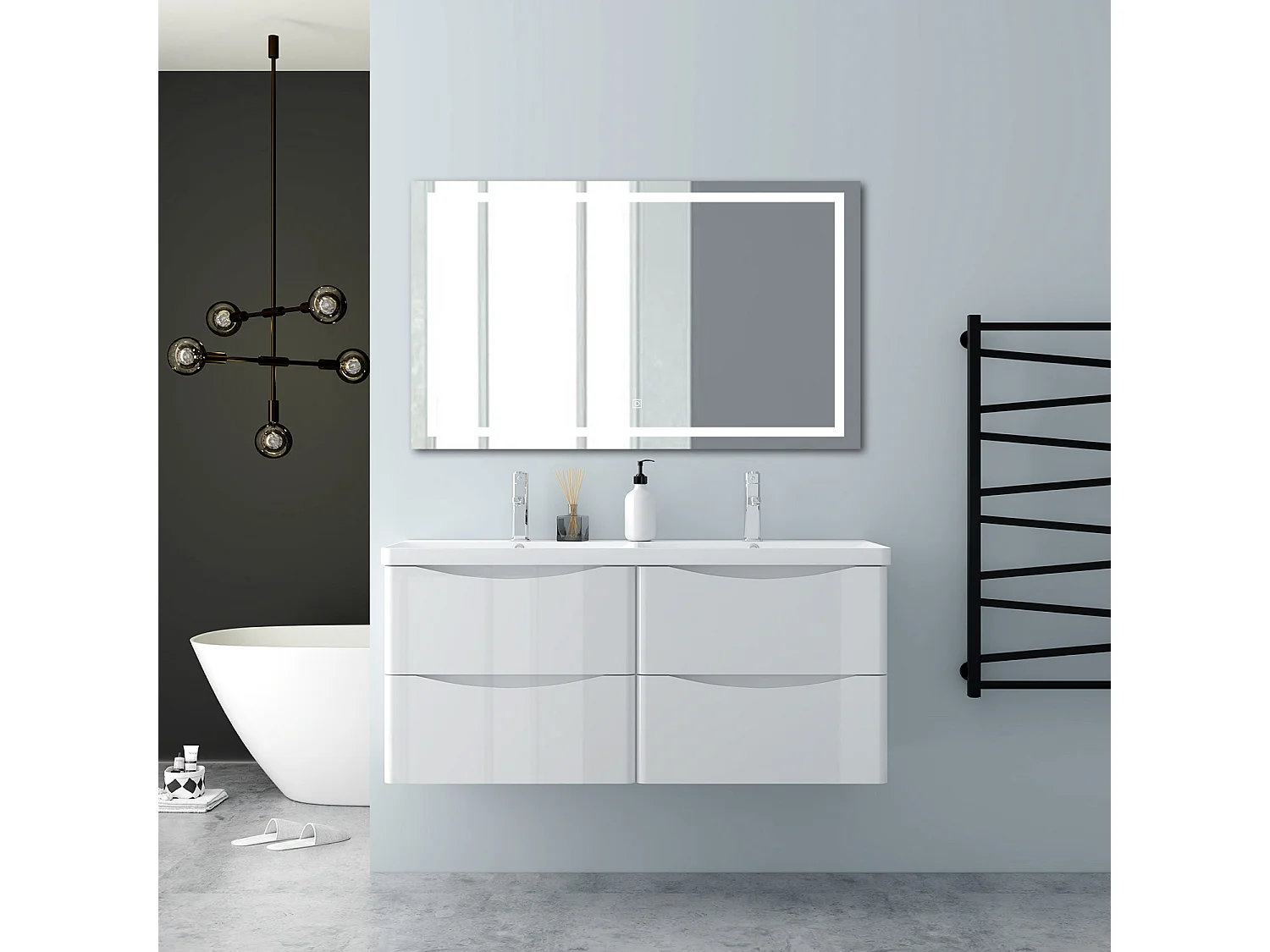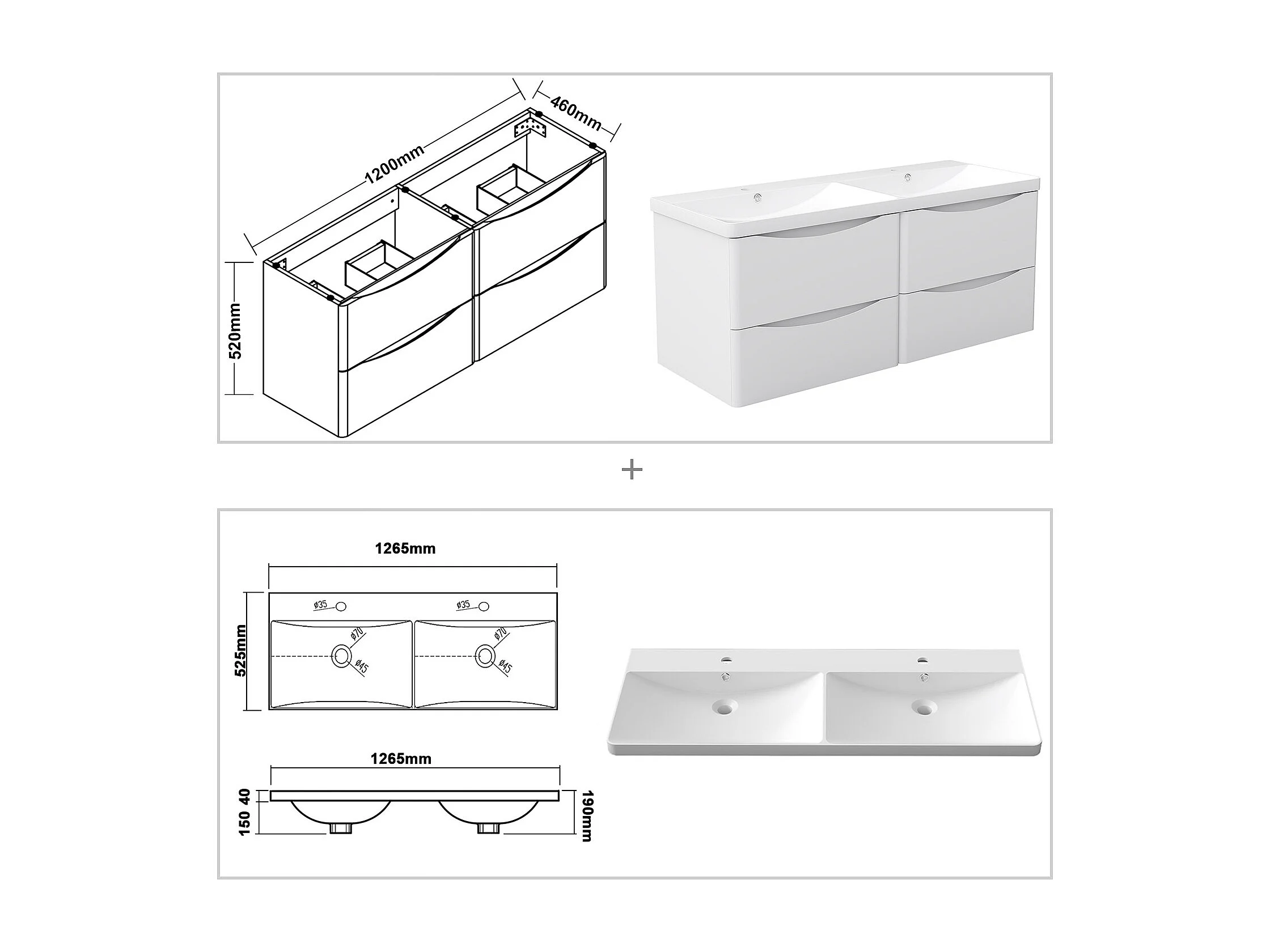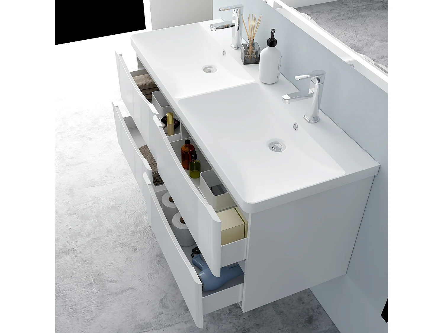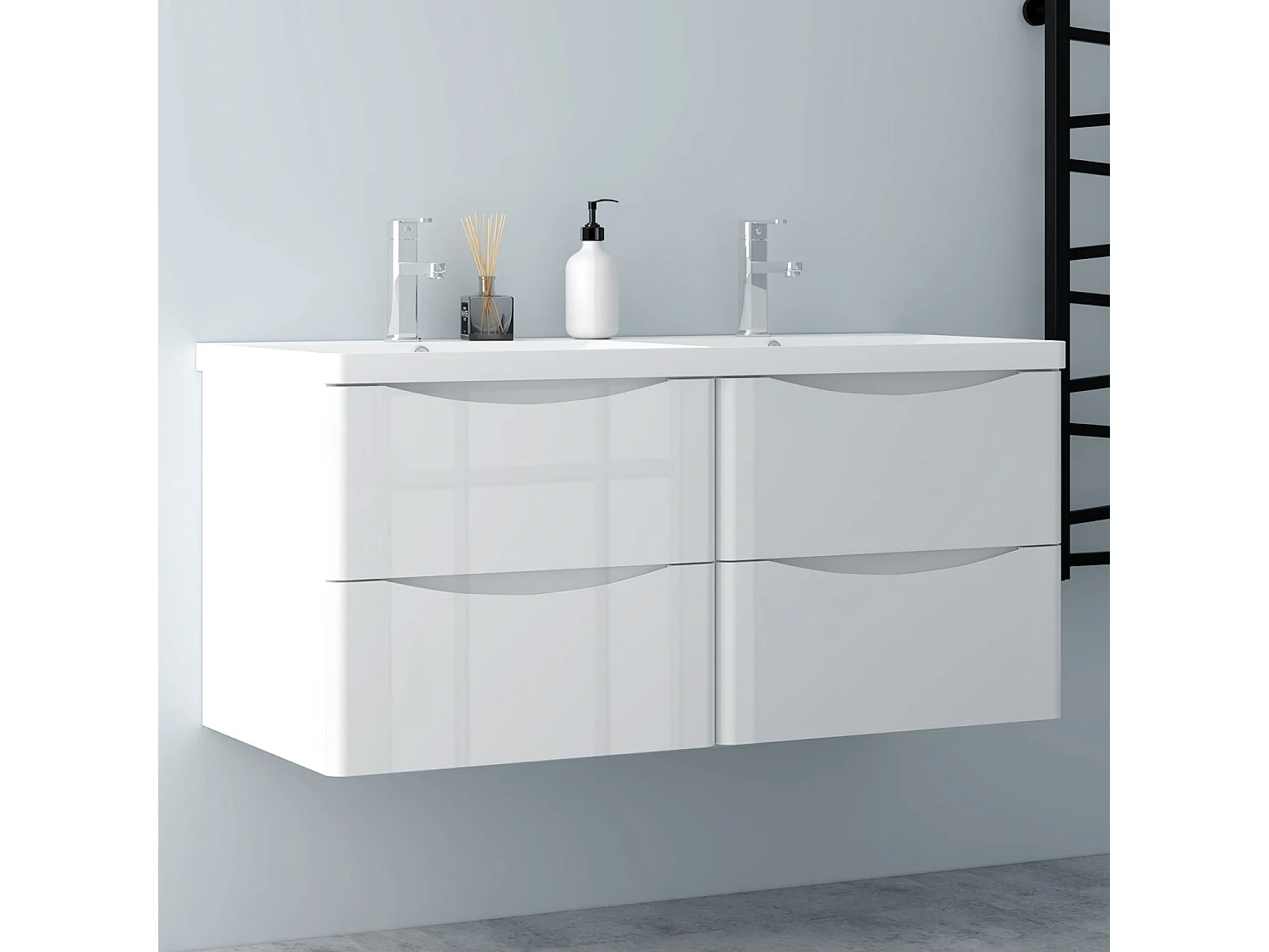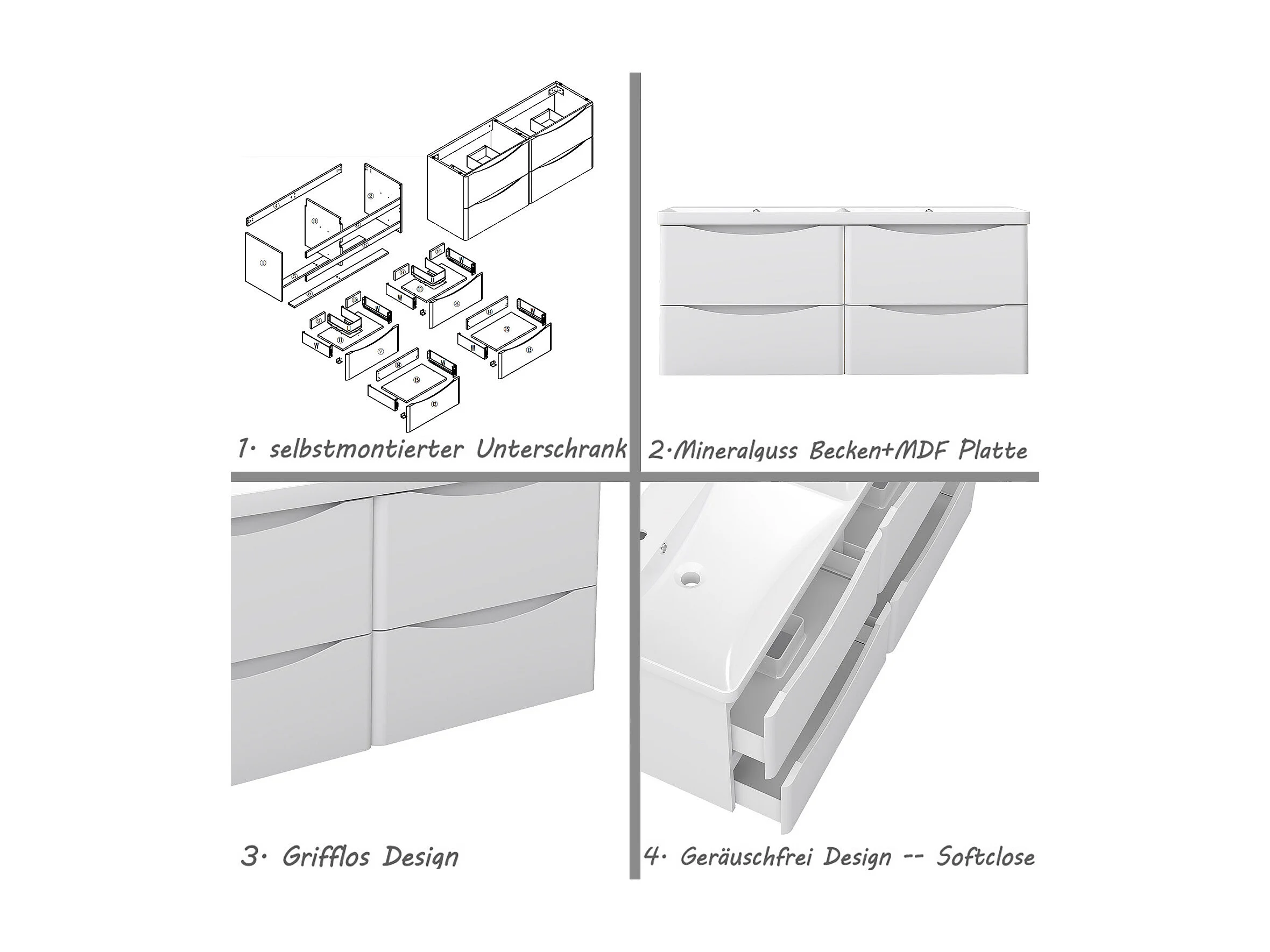 AICA Badezimmerschrank hängend 120cm Mineralguss waschbecken mit Unterschrank - Hochglanz Weiß - SEMAL