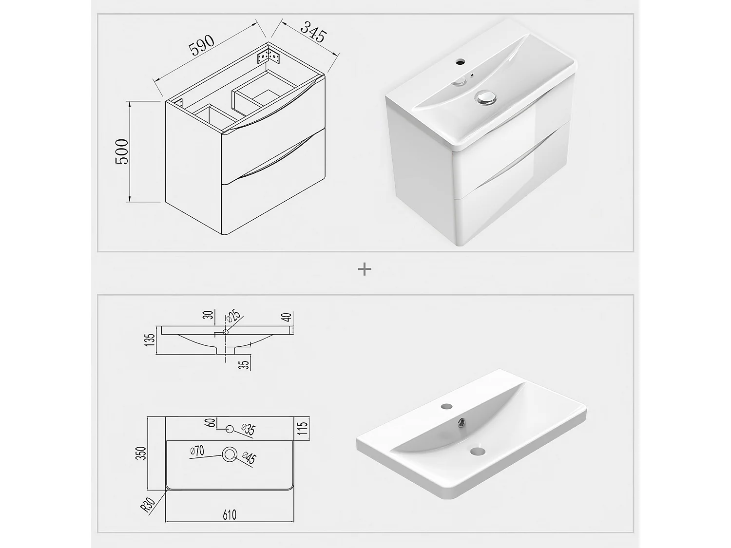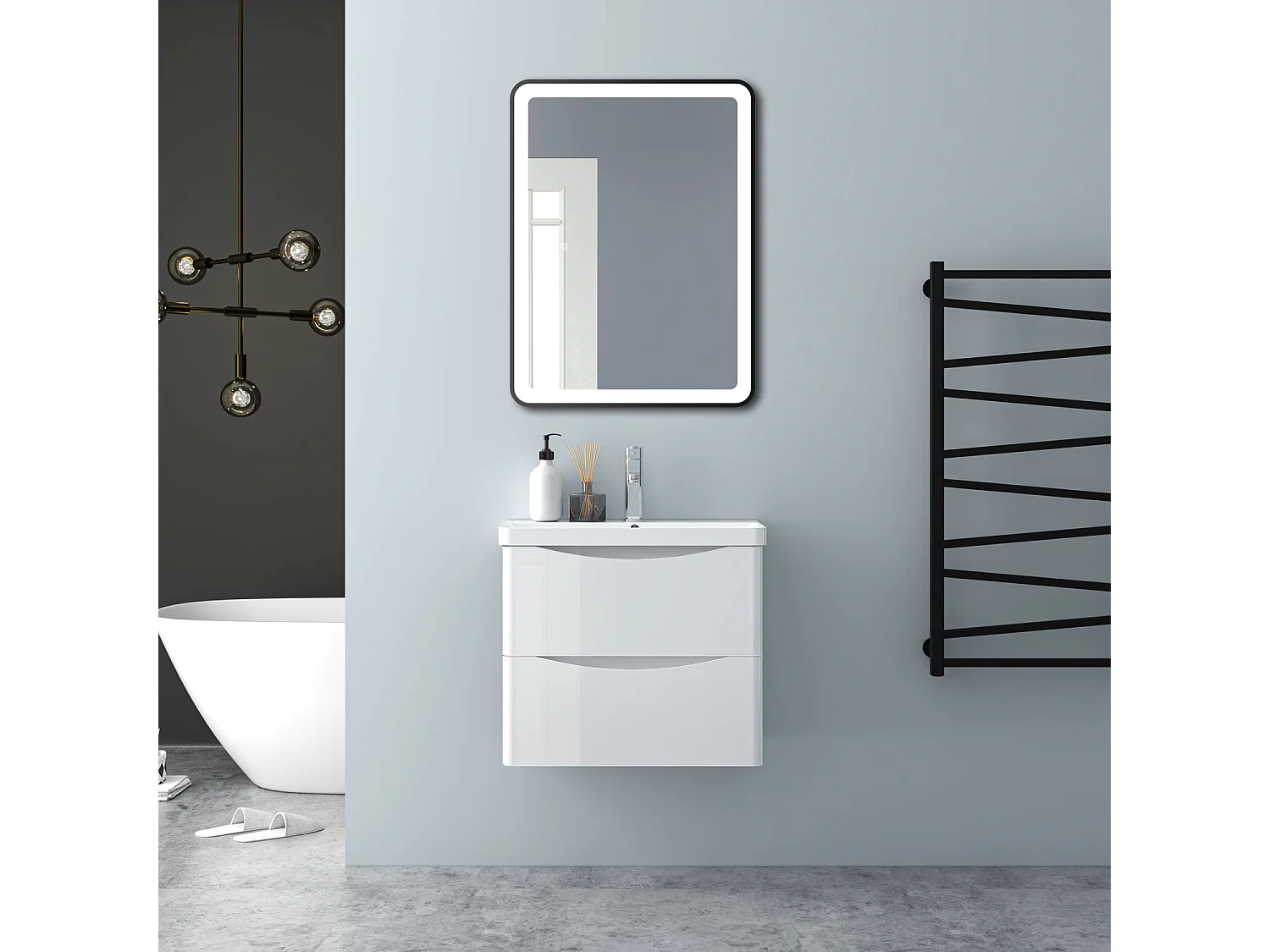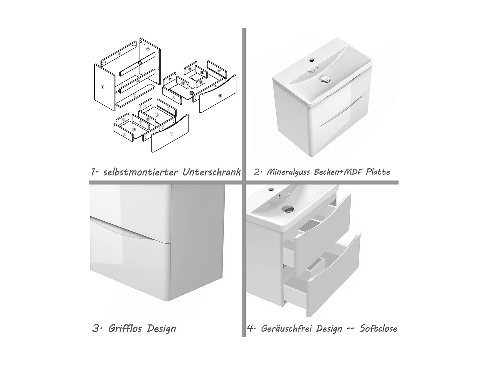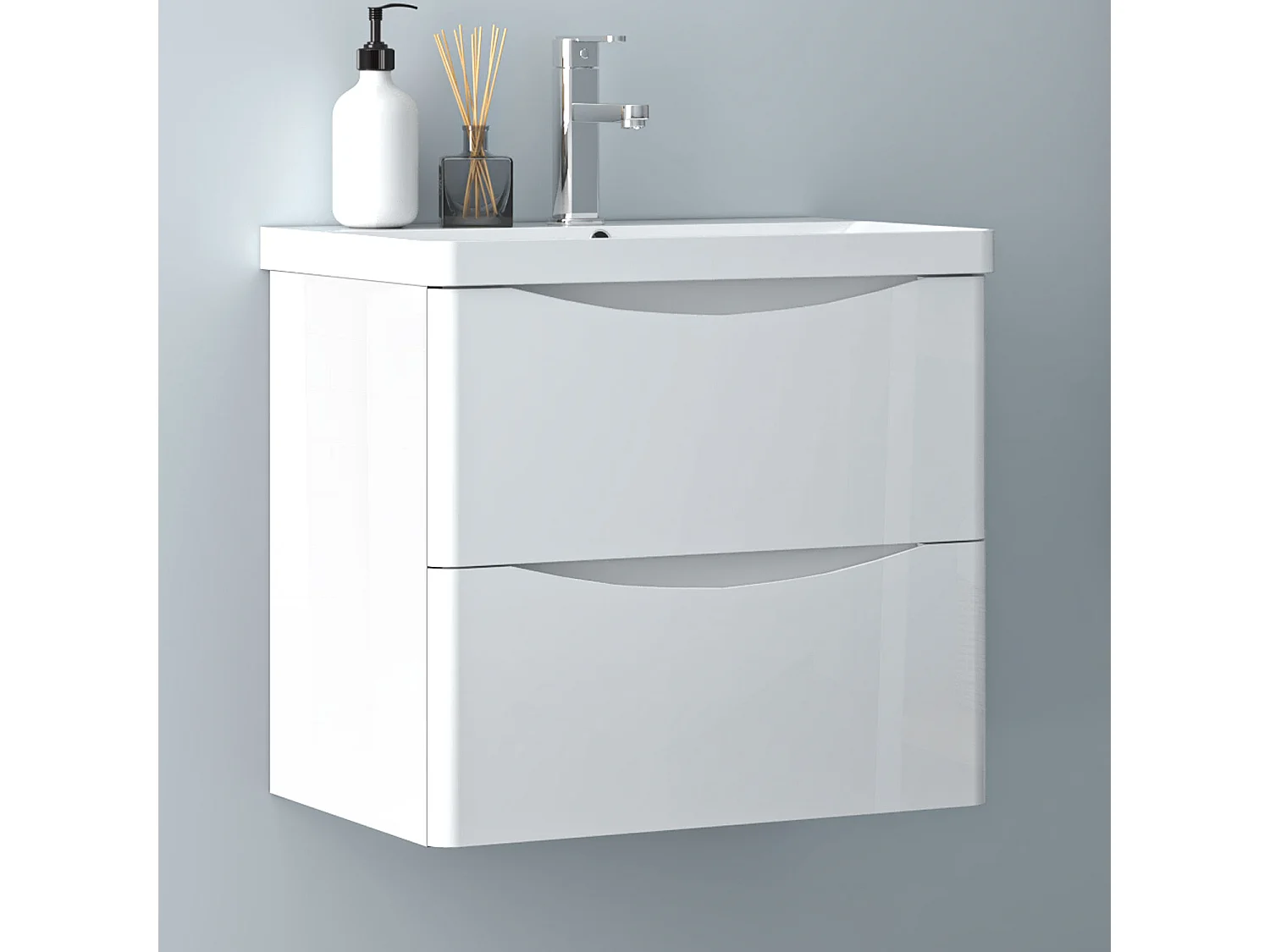 AICA Badezimmerschrank hängend 60cm Mineralguss waschbecken mit Unterschrank - Hochglanz Weiß - SEMAL