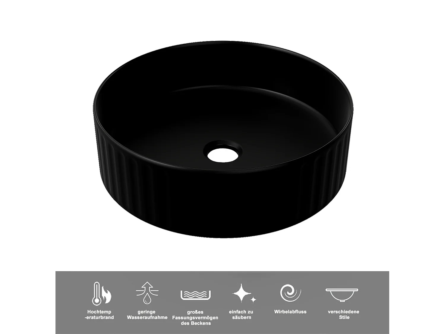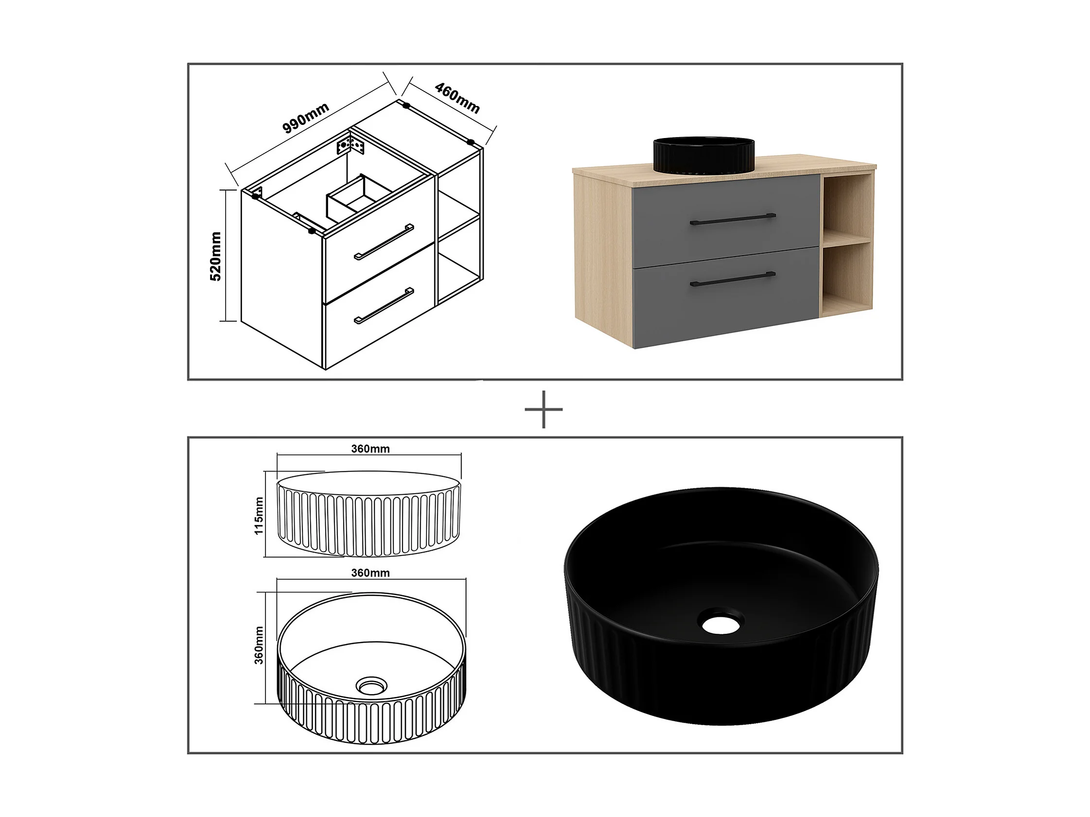 AICA Badezimmerschrank hängend mit gestreiftes Aufsatzwaschbecken - 100cm - Eiche/Dunkelgrau