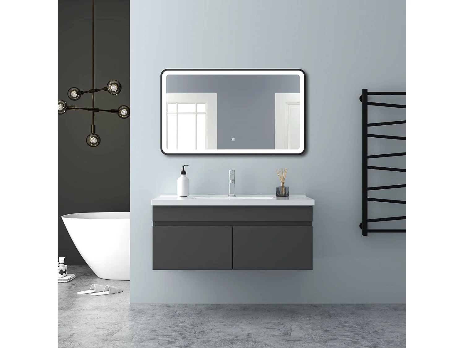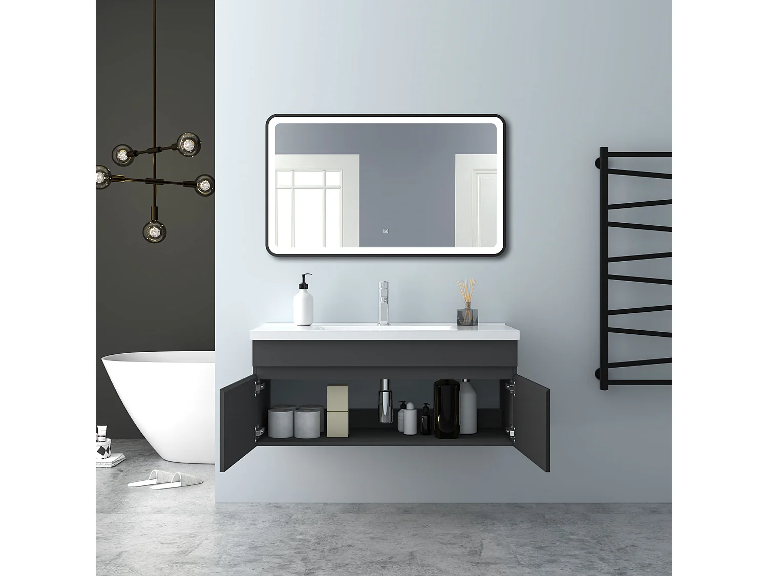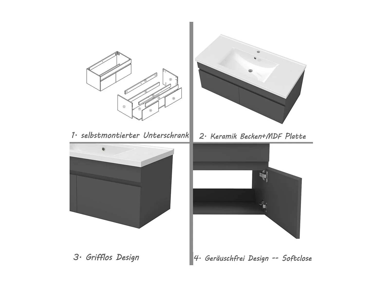 AICA Badezimmerschränke 100cm Keramik Waschtisch mit Unterschrank - Dunkelgrau Matt Hängeschrank - MARO