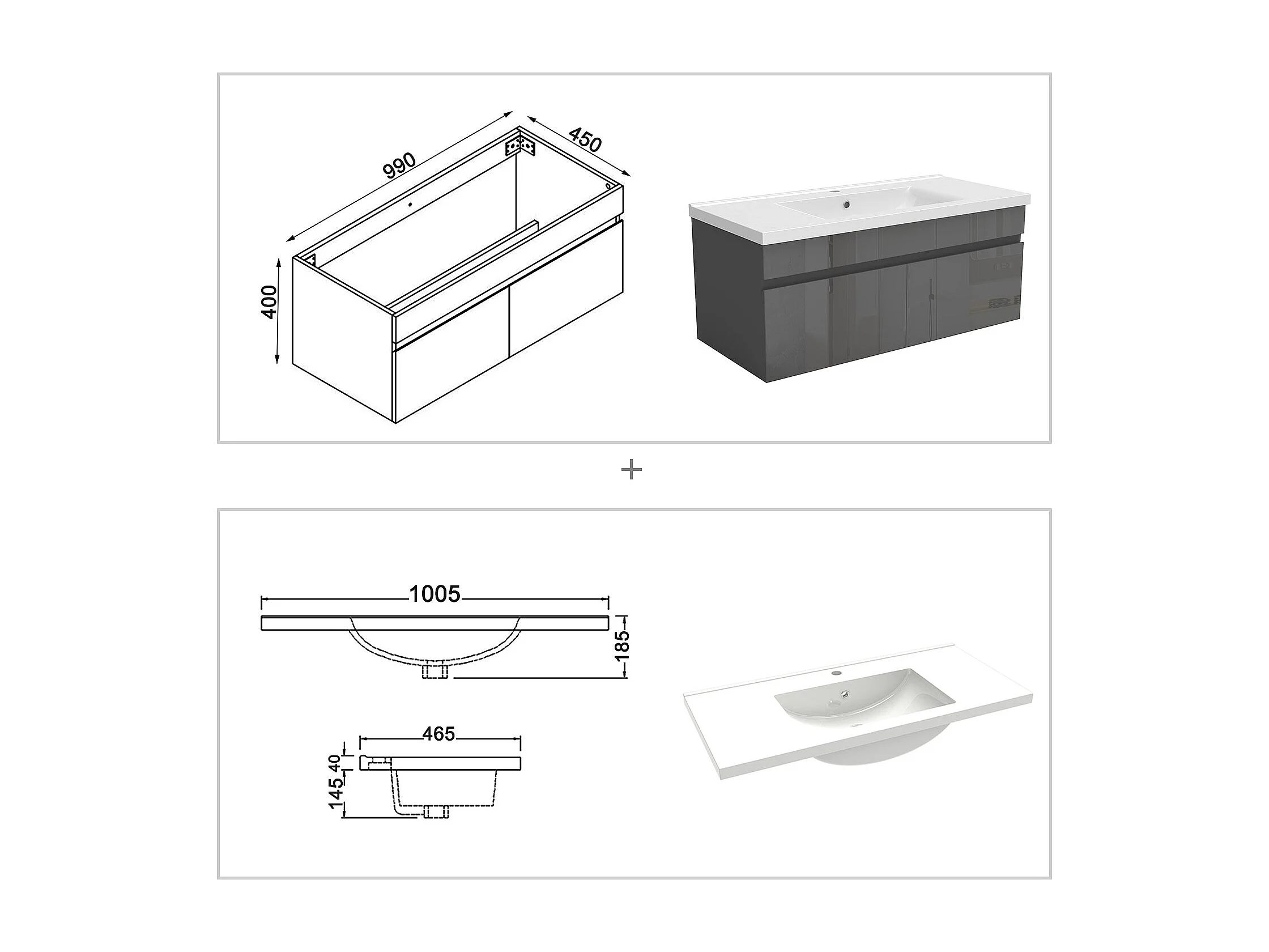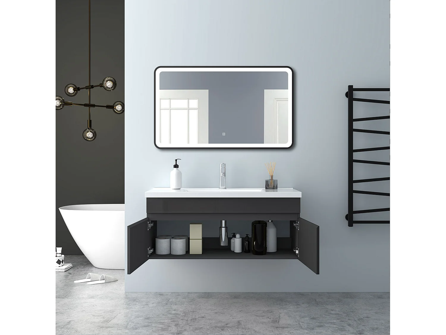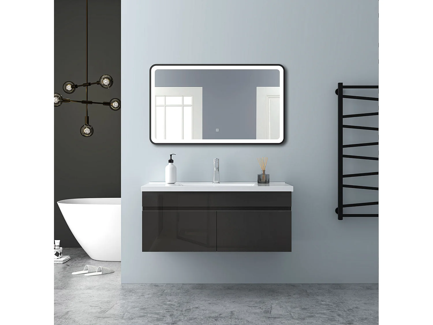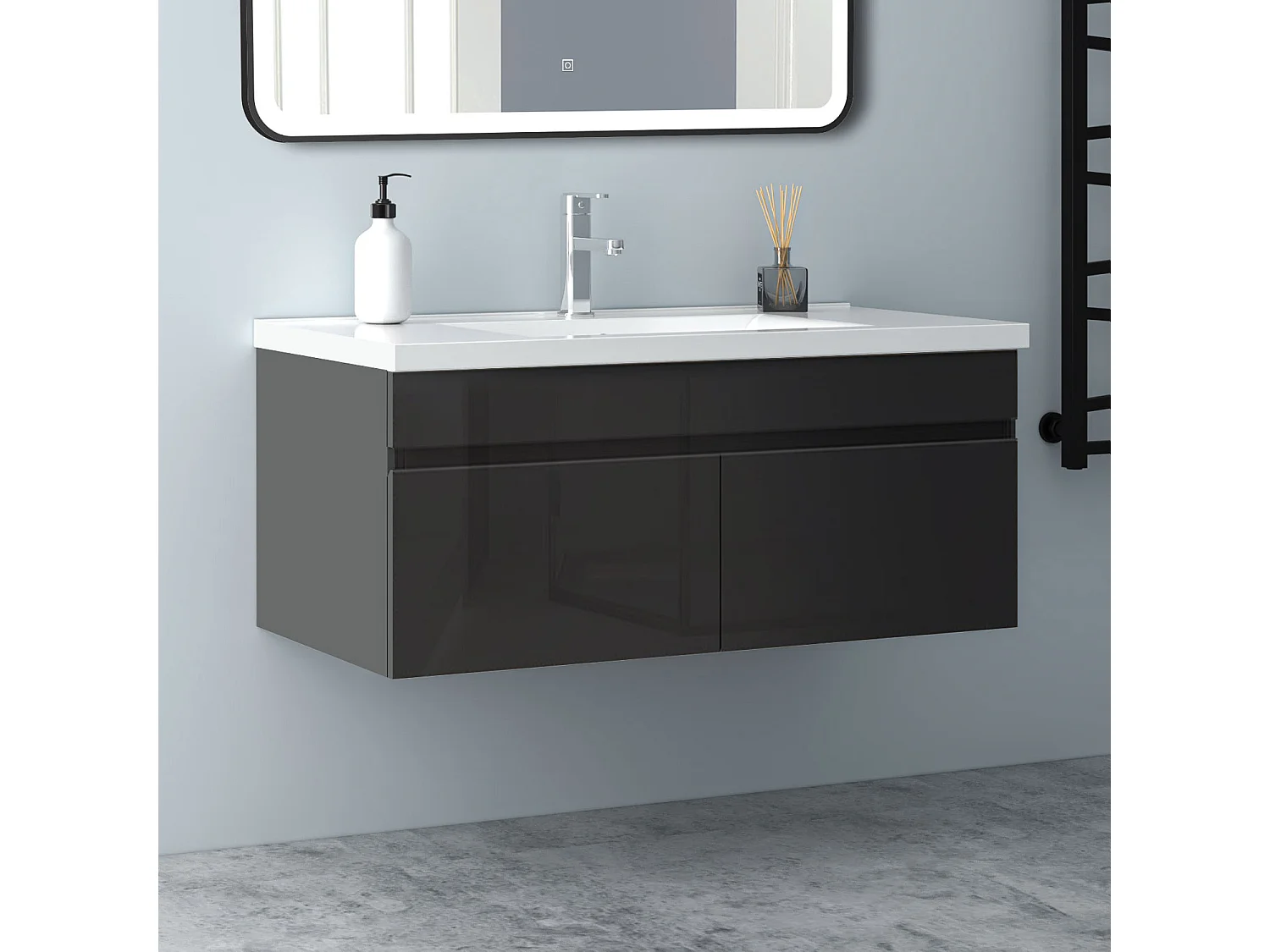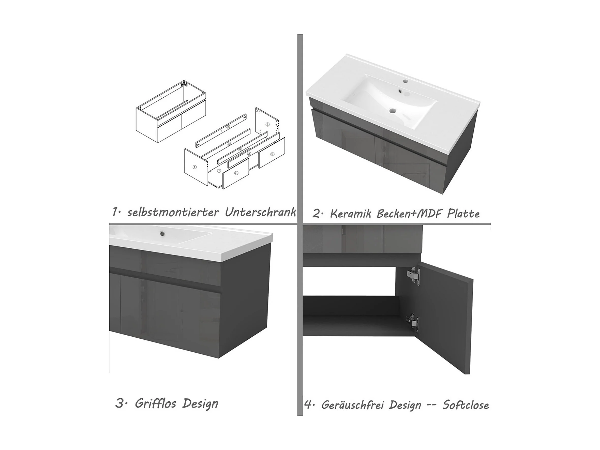 AICA Badezimmerschränke 100cm Keramik Waschtisch mit Unterschrank - Hochglanz Weiß Hängeschrank - MARO