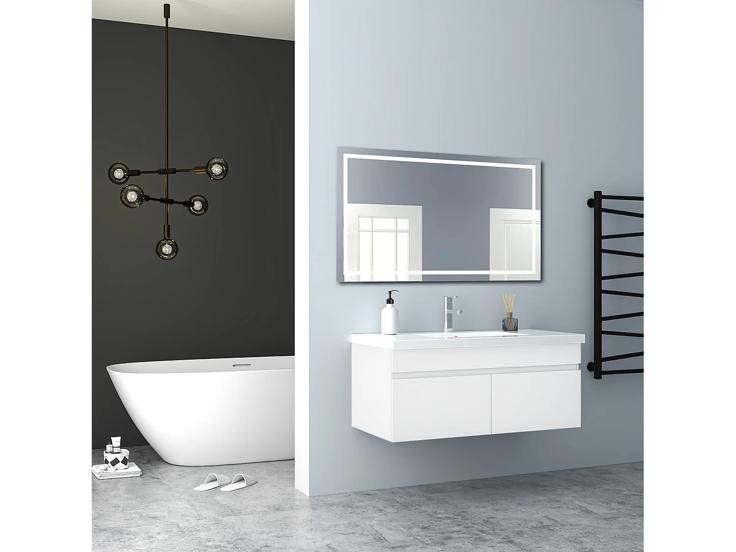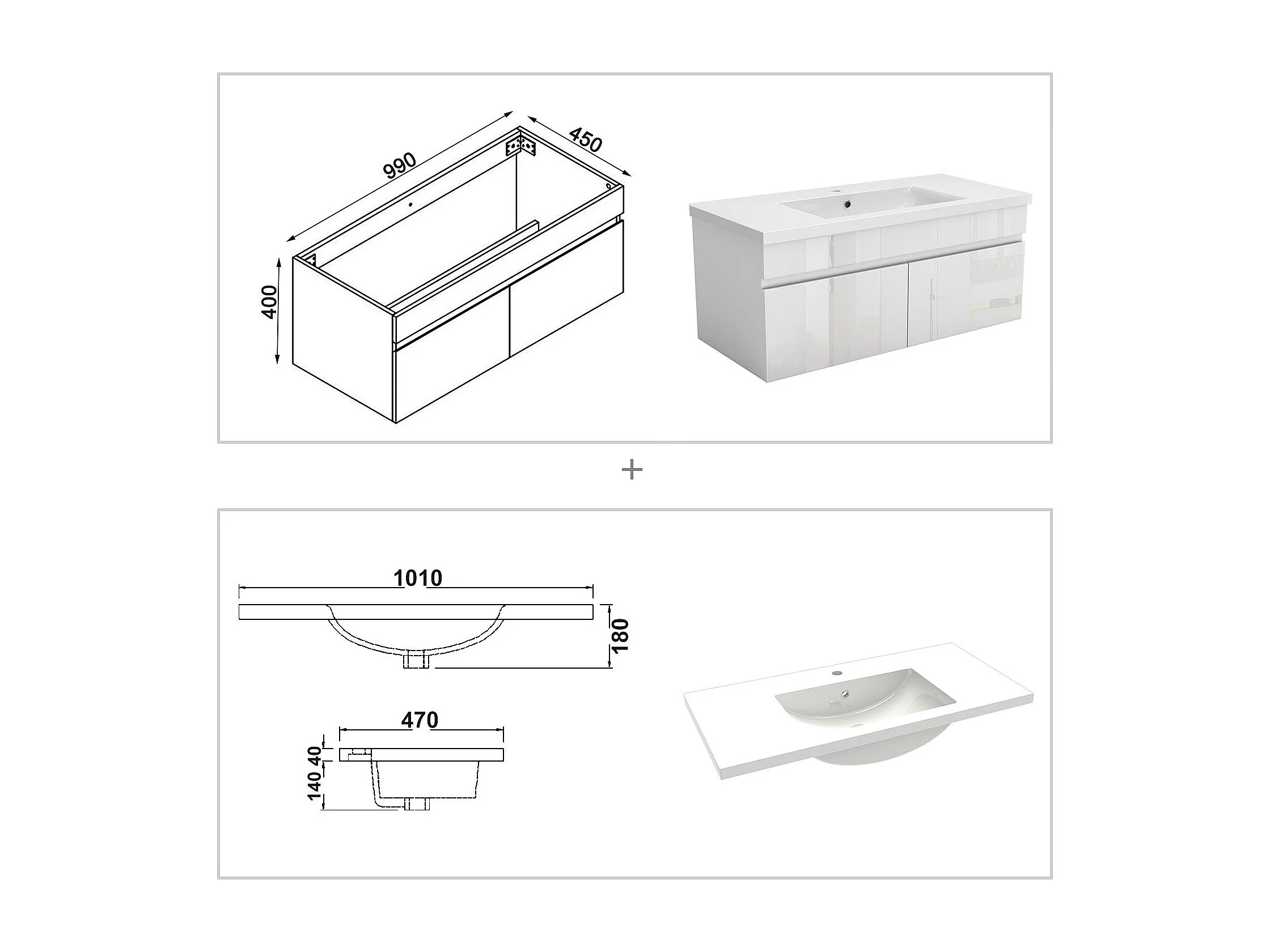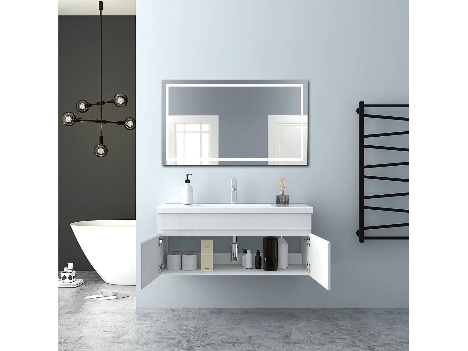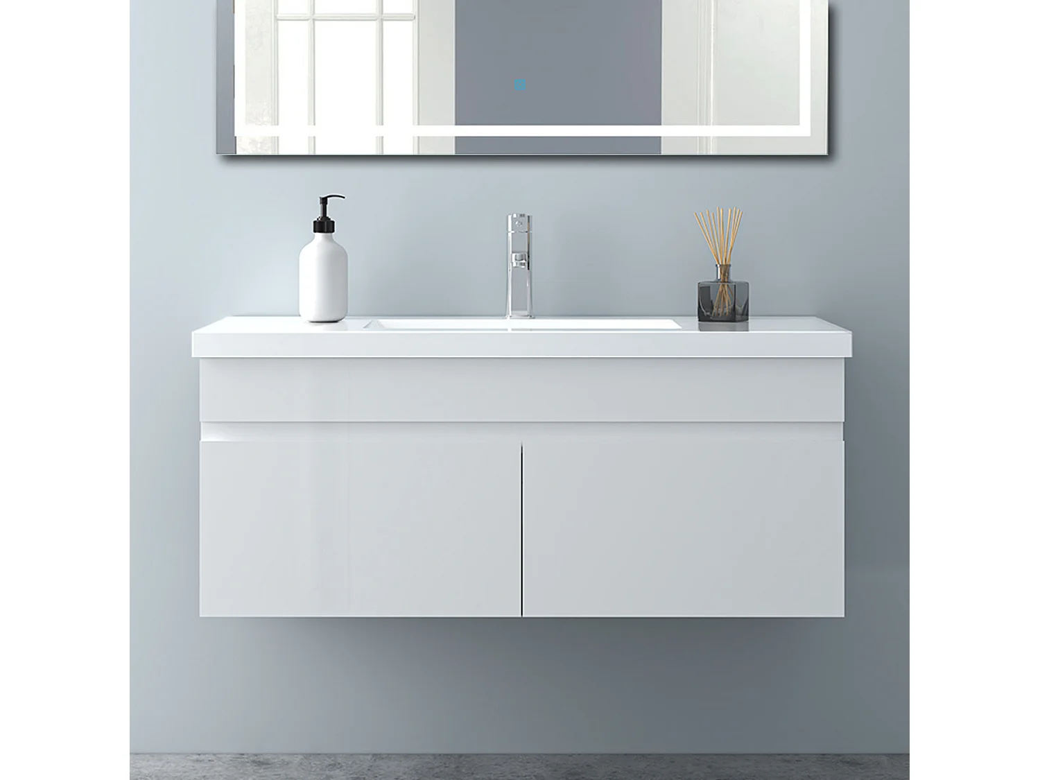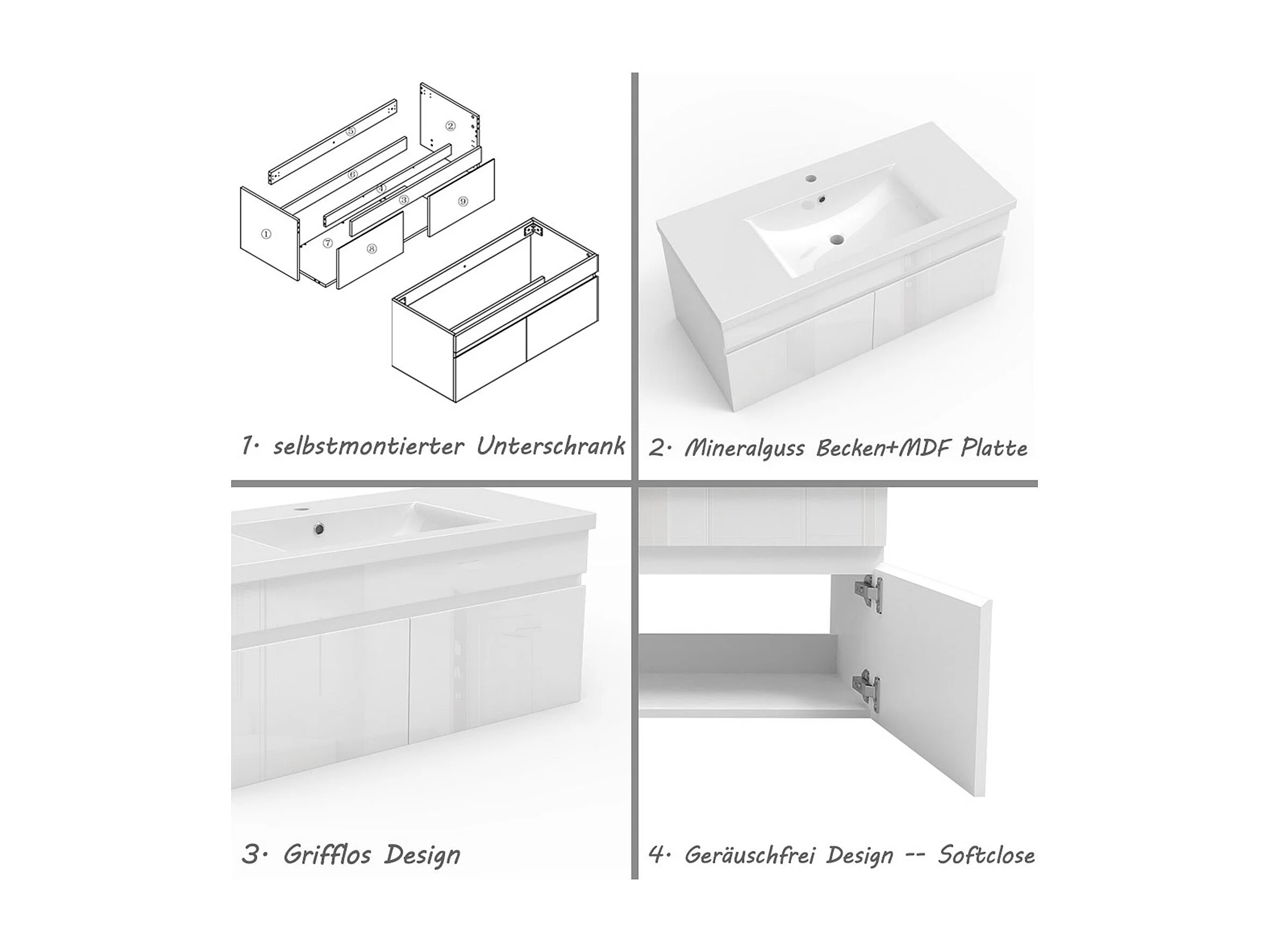 AICA Badezimmerschränke 100cm Mineralguss Waschtisch mit Unterschrank - Hochglanz Weiß Hängeschrank - MARO