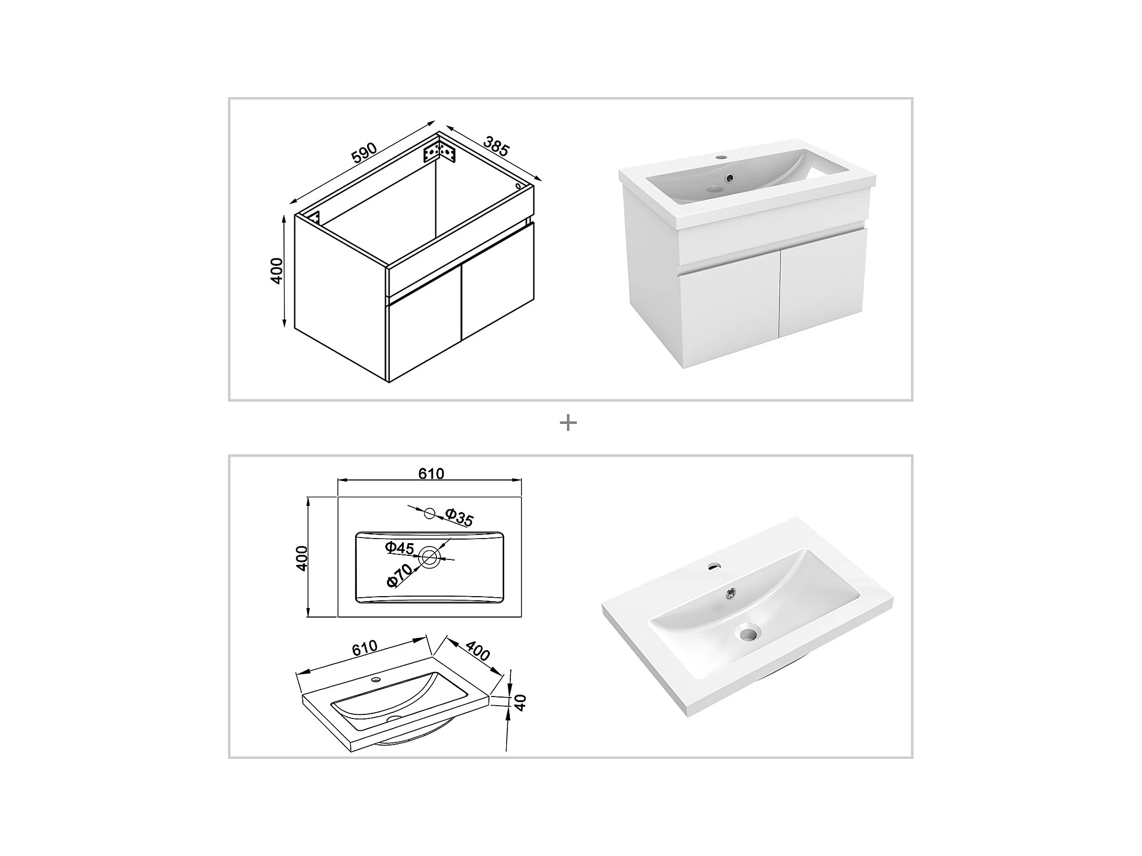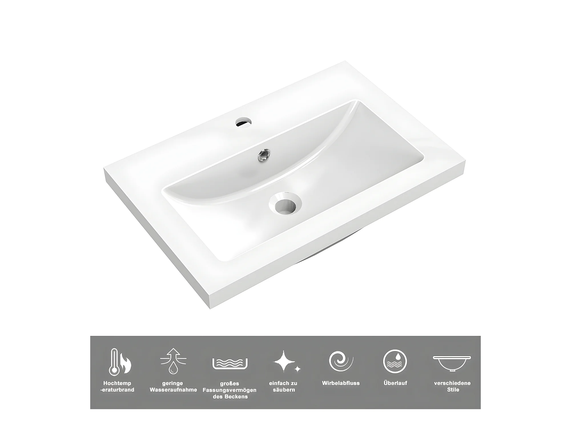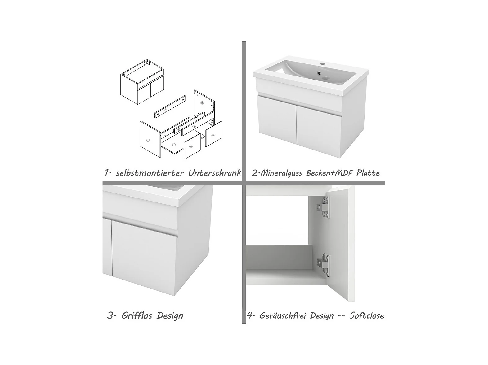 AICA Badezimmerschränke 60cm Mineralguss Waschtisch mit Unterschrank - Weiß Matt Hängeschrank - MARO