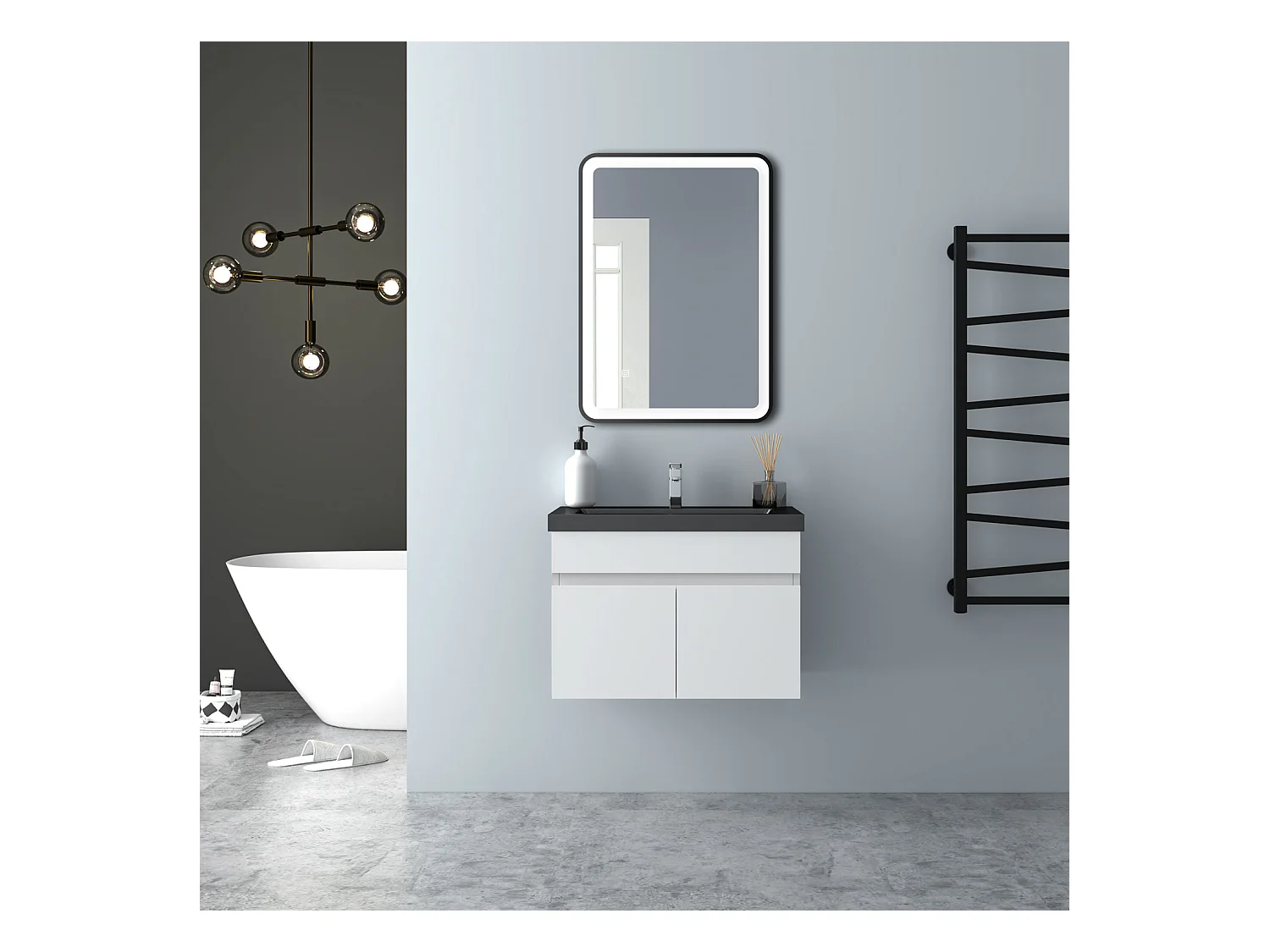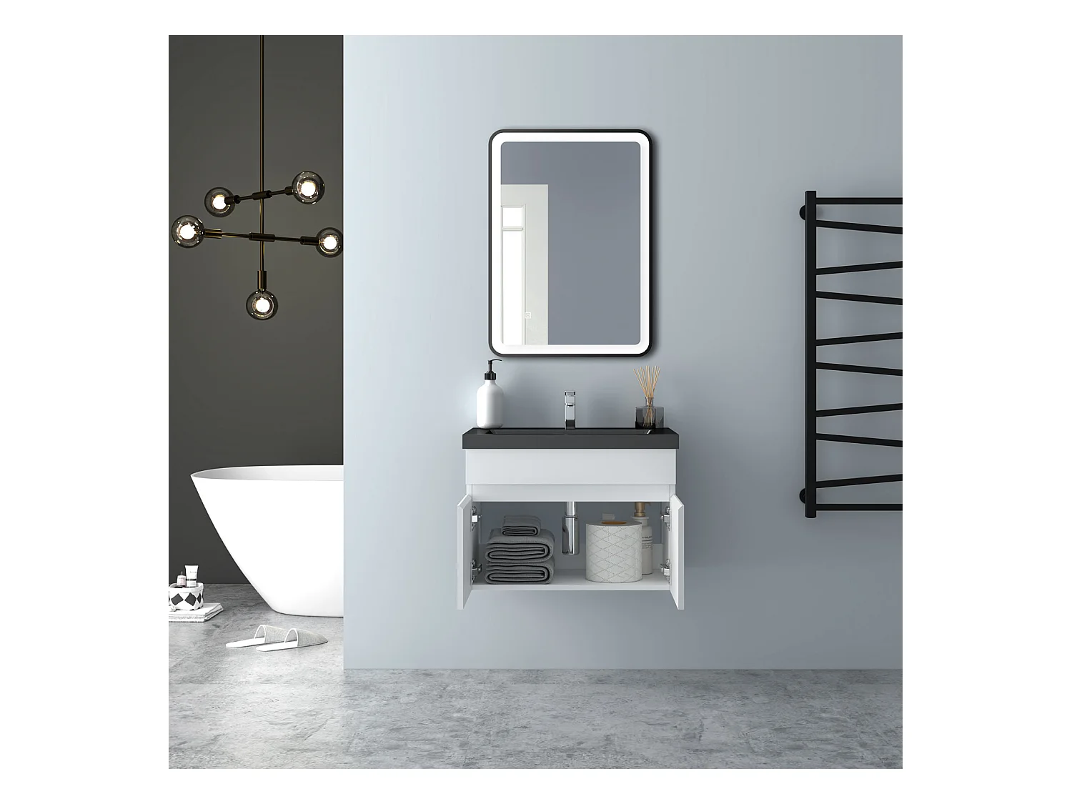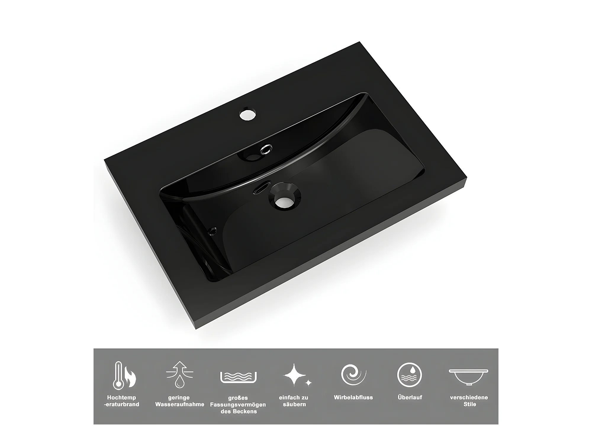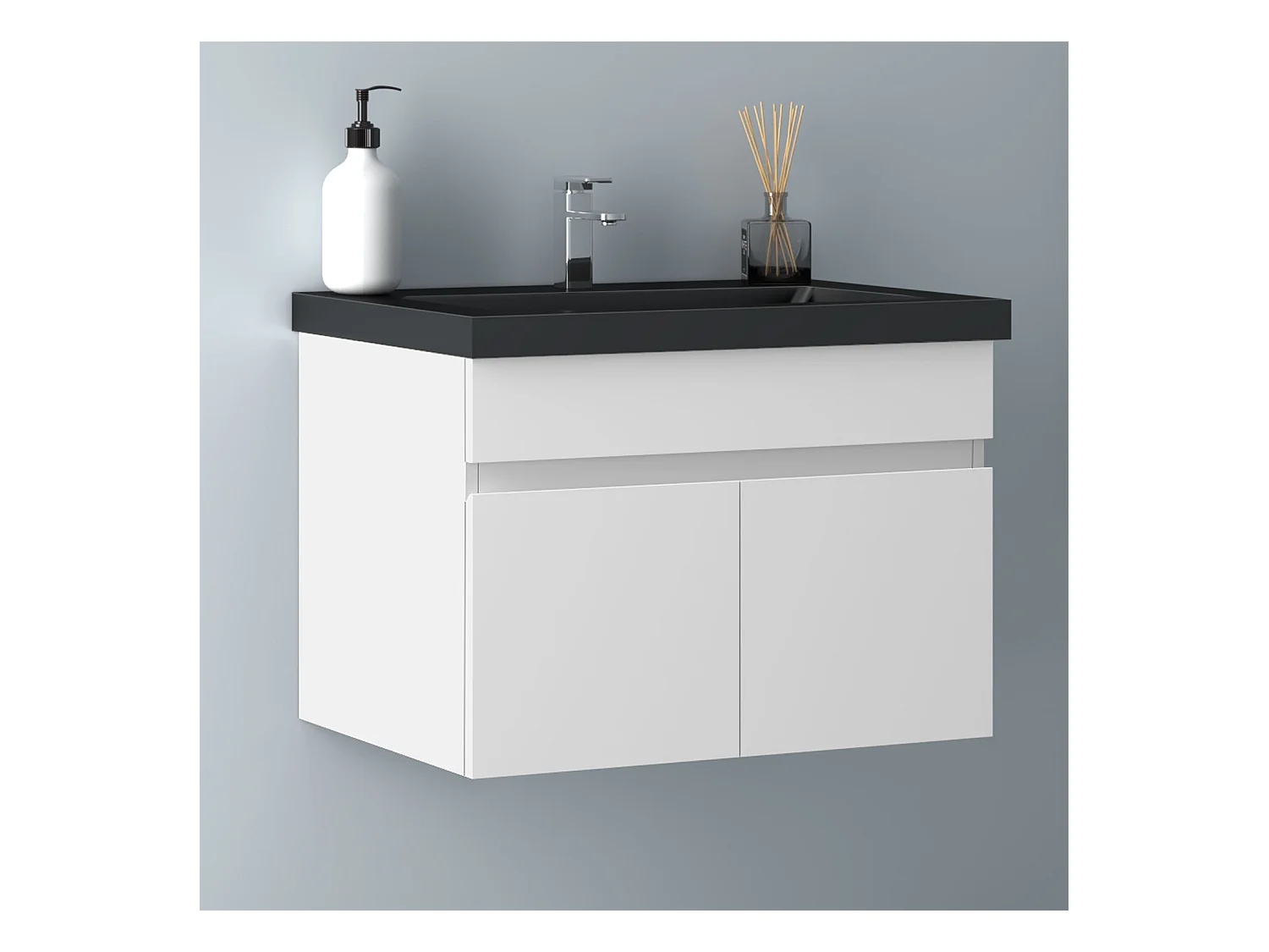 AICA Badezimmerschränke 60cm Schwarz Mineralguss Waschtisch mit Unterschrank - Weiß Matt Hängeschrank - MARO