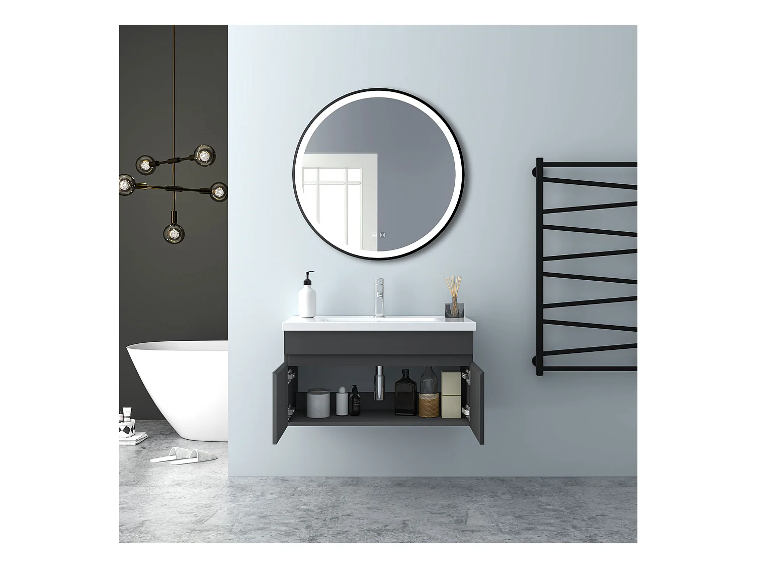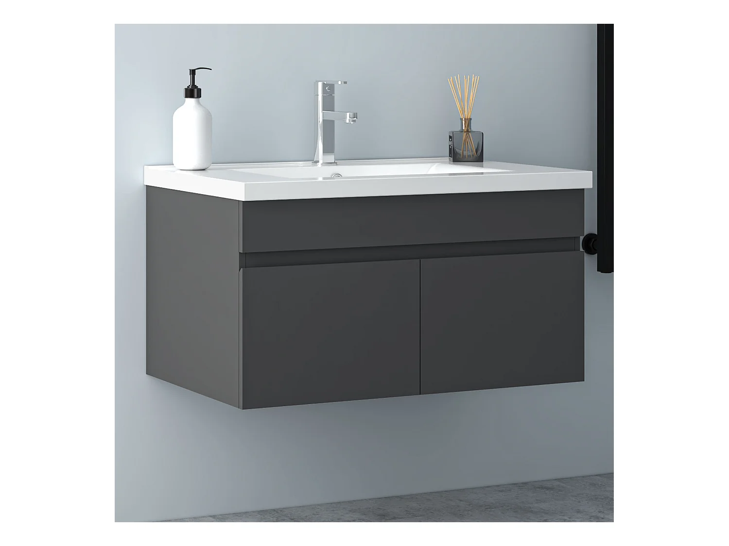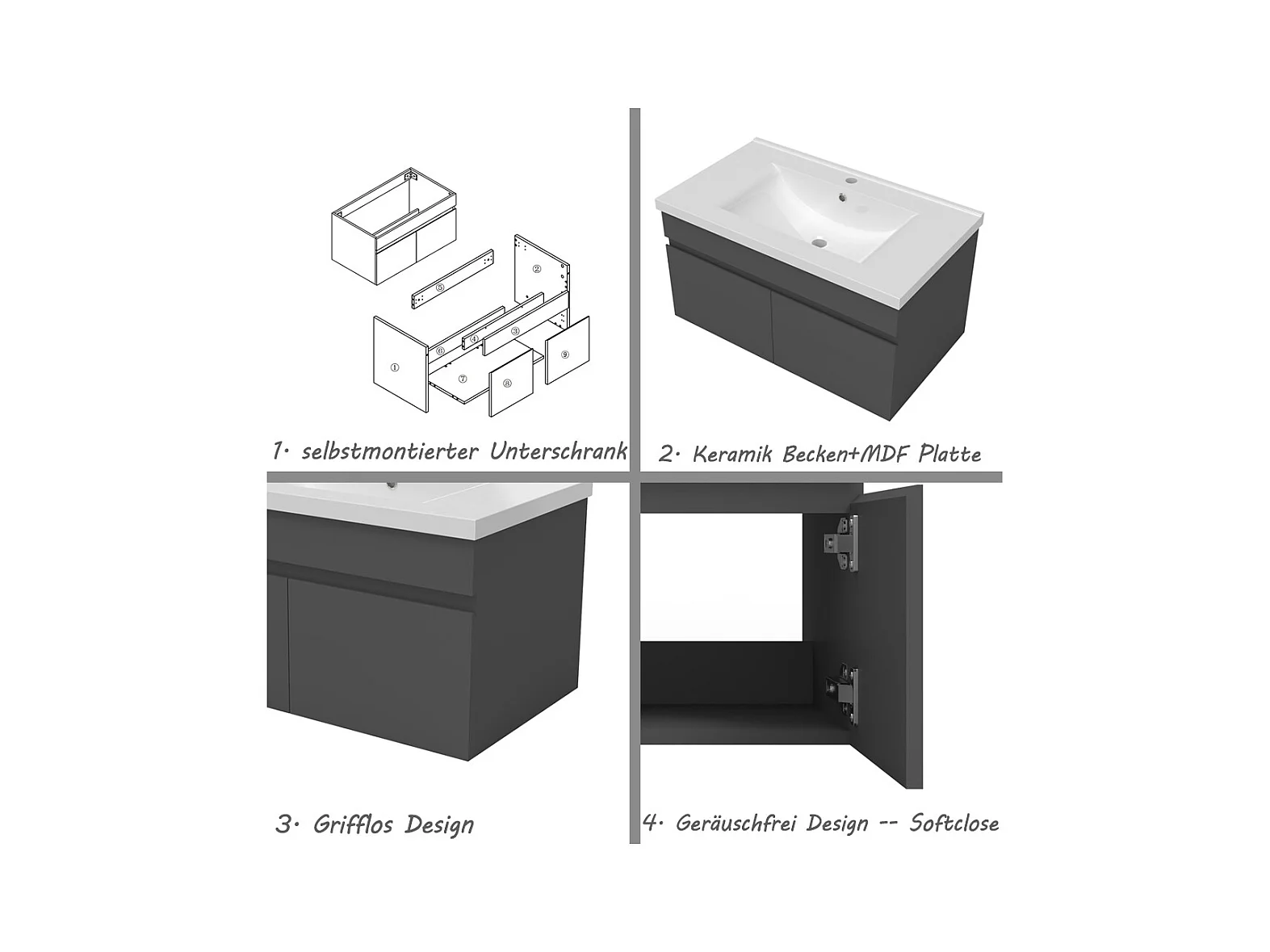 AICA Badezimmerschränke 80cm Keramik Waschtisch mit Unterschrank - Dunkelgrau Matt Hängeschrank - MARO