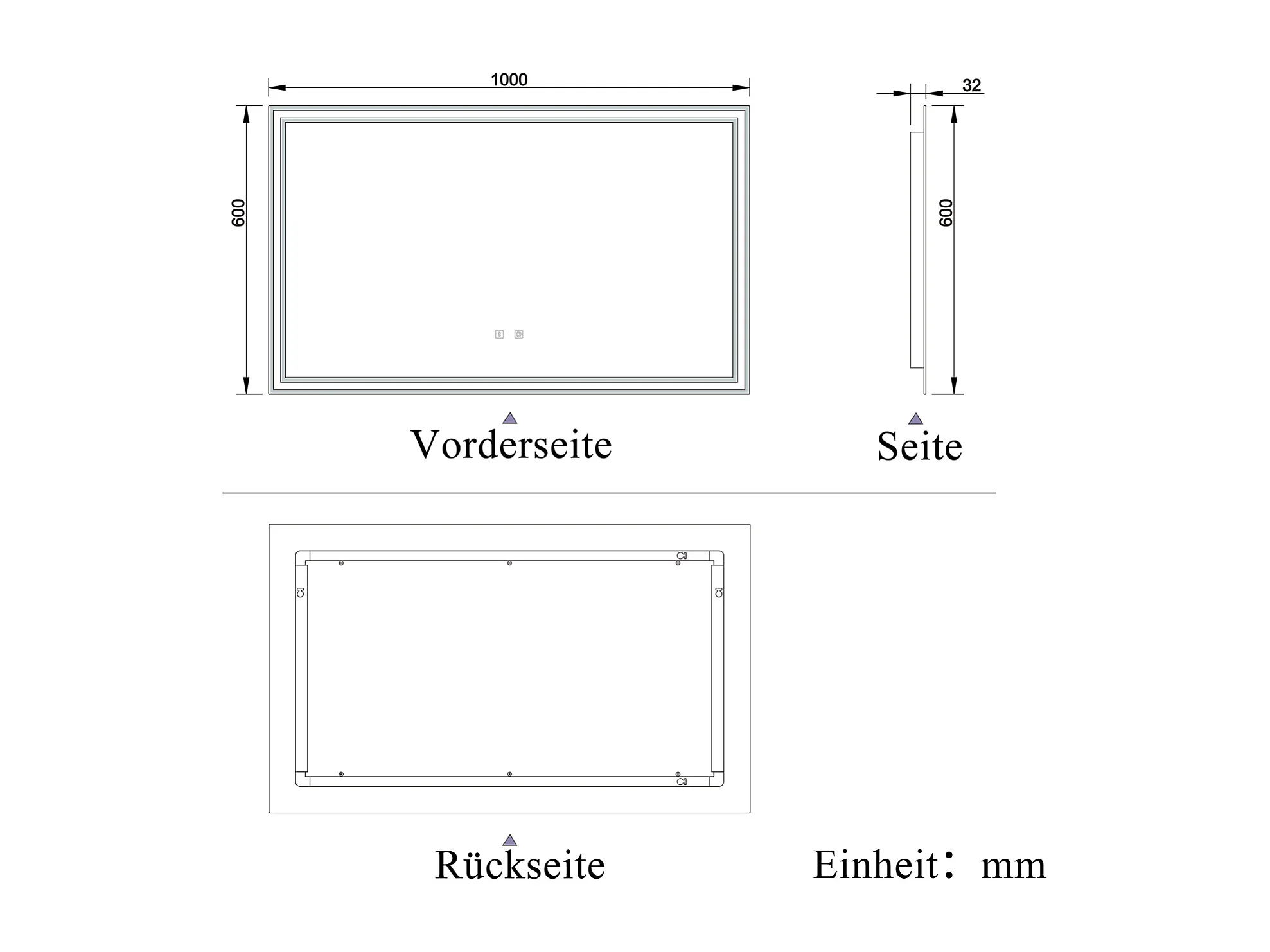 AICA Badezimmerspiegel mit LED-Beleuchtung 100x60cm Bluetooth 3 Lichtfarbe+Dimmbar Beschlagfrei Memory-Funktion