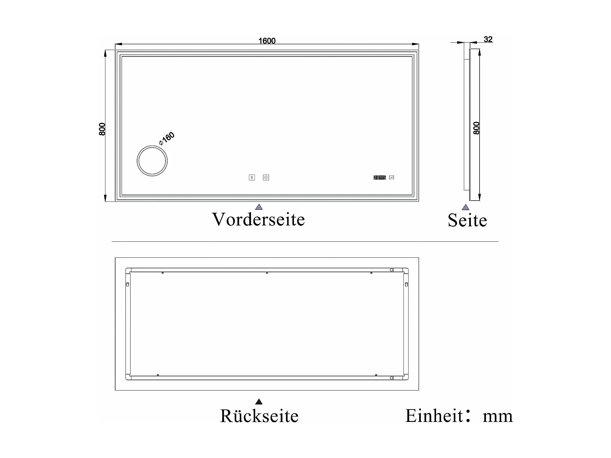 AICA Badezimmerspiegel mit LED-Beleuchtung 160x80cm Bluetooth Uhr Kosmetikspiegel 3 Lichtfarbe+Dimmbar Beschlagfrei Memory-Funktion