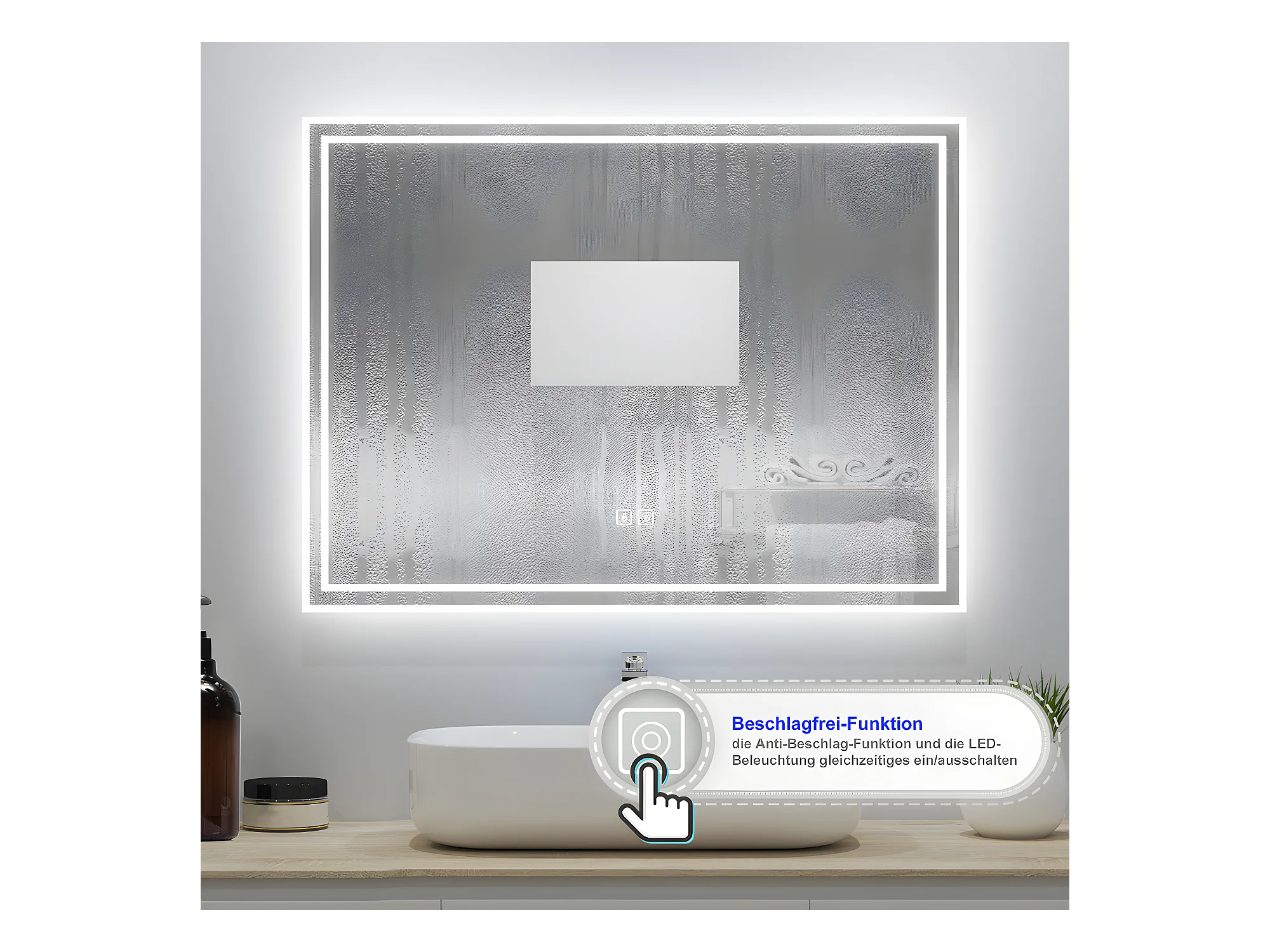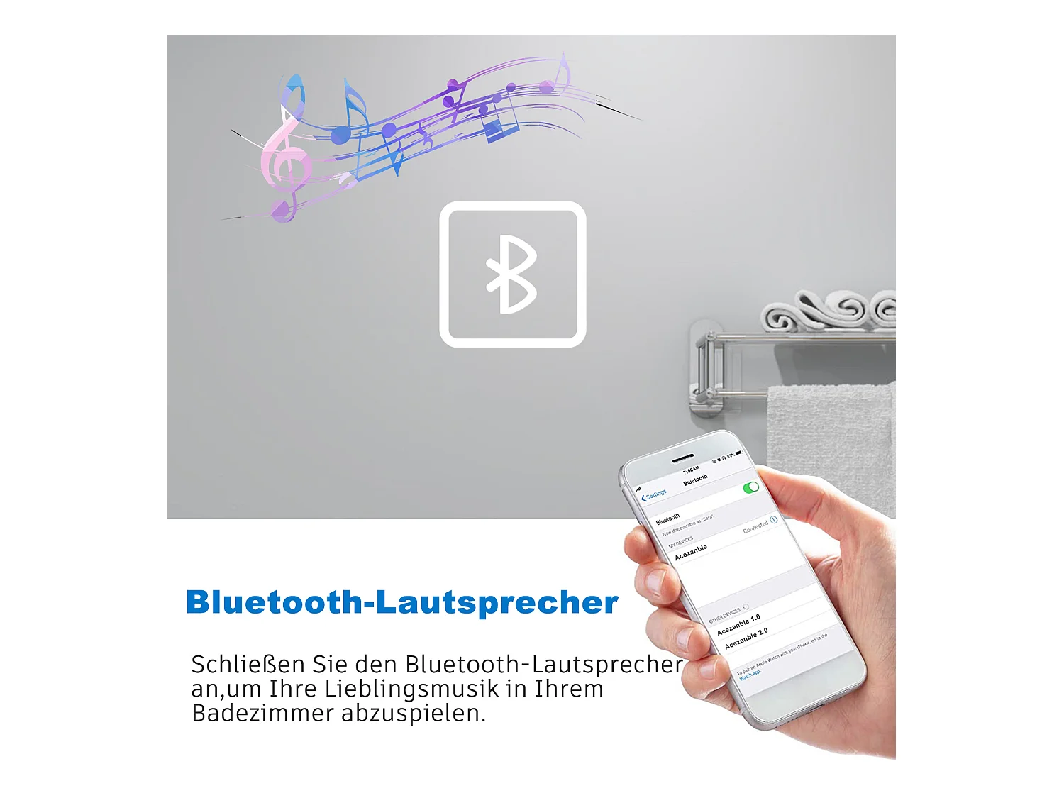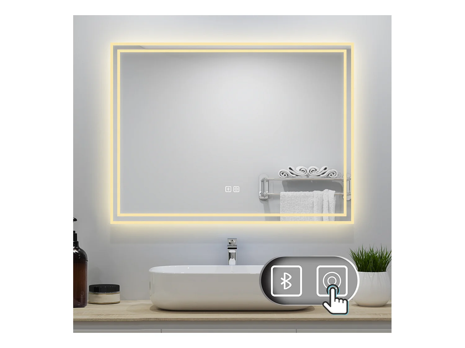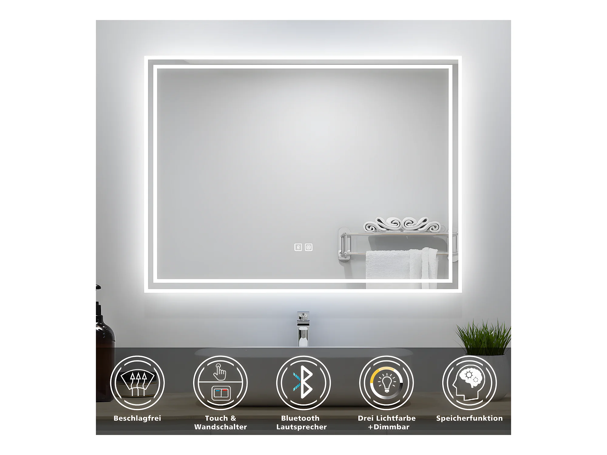 AICA Badezimmerspiegel mit LED-Beleuchtung 70x50cm Bluetooth 3 Lichtfarbe+Dimmbar Beschlagfrei Memory-Funktion