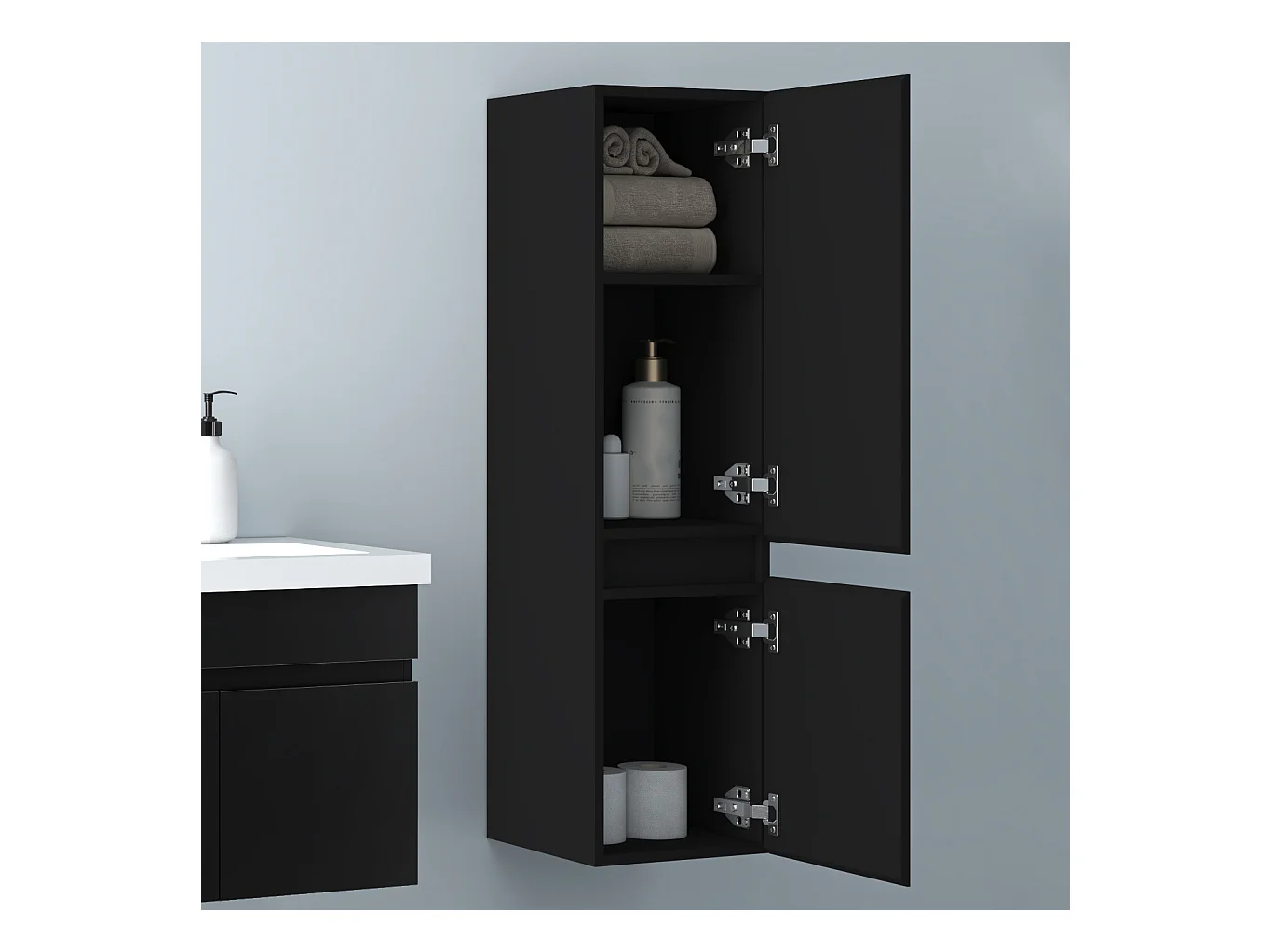 AICA Badhochschrank hängend - 2 Türen - 30 x 30 x 110 cm - Hochglanz Schwarz