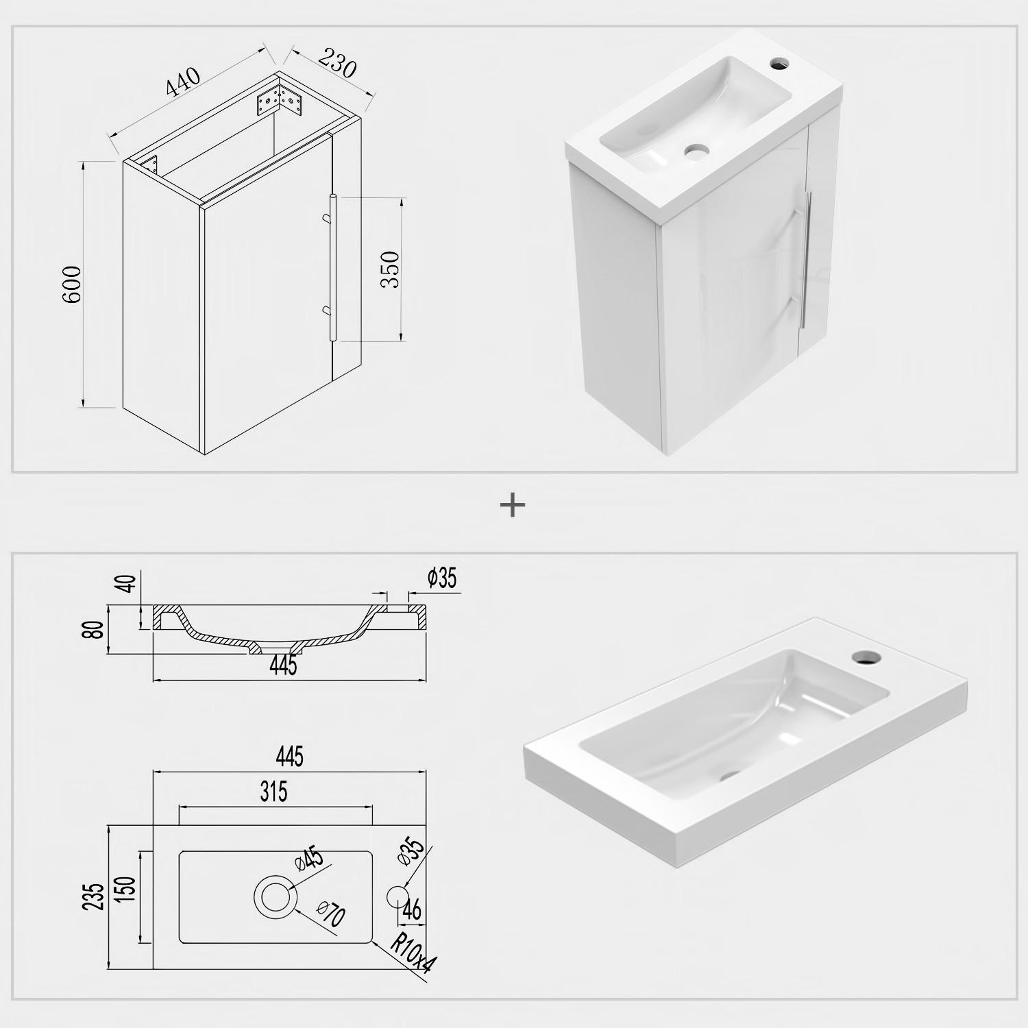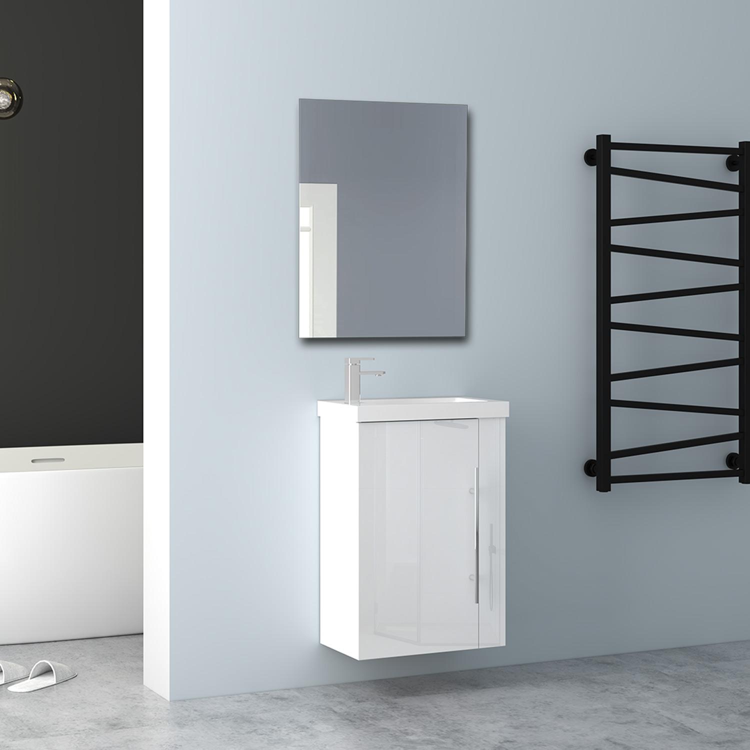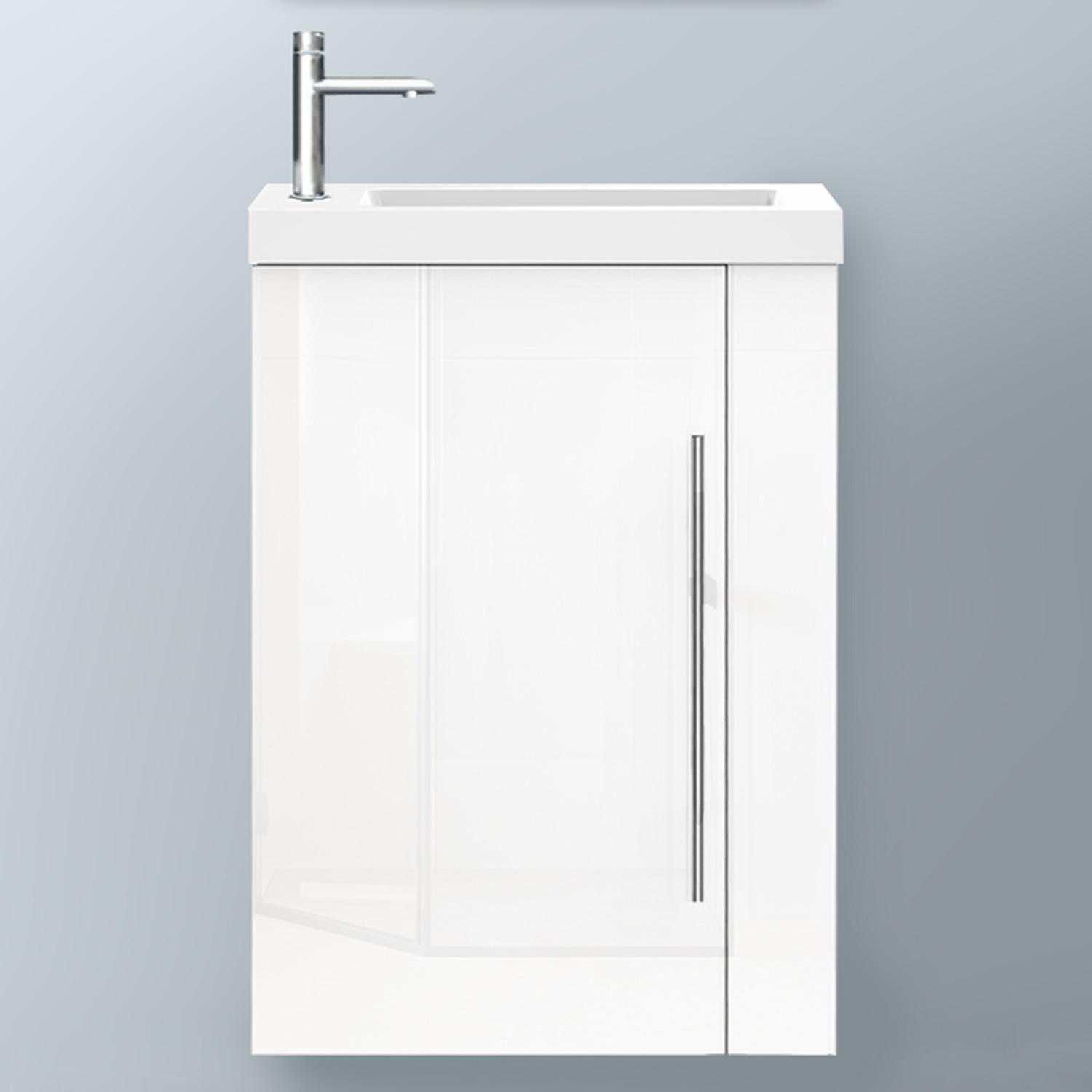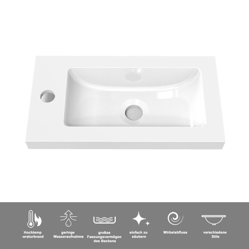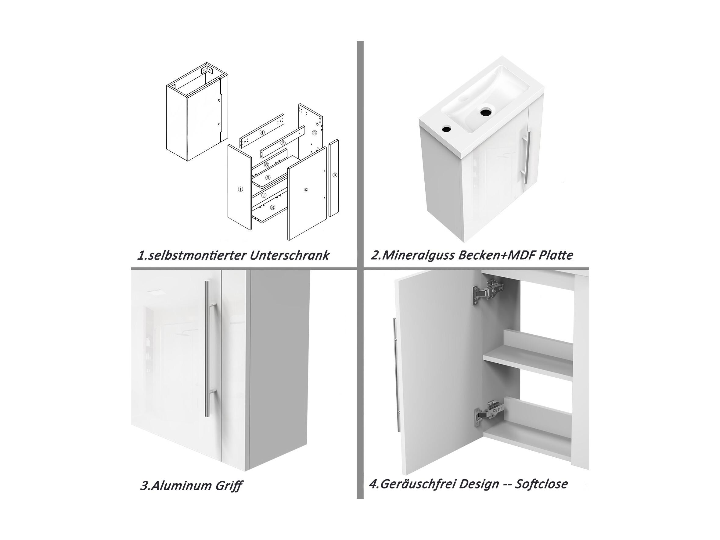 AICA Badmöbel 45cm Mineralguss Waschtisch mit Unterschrank - Hochglanz Weiß Hängeschrank