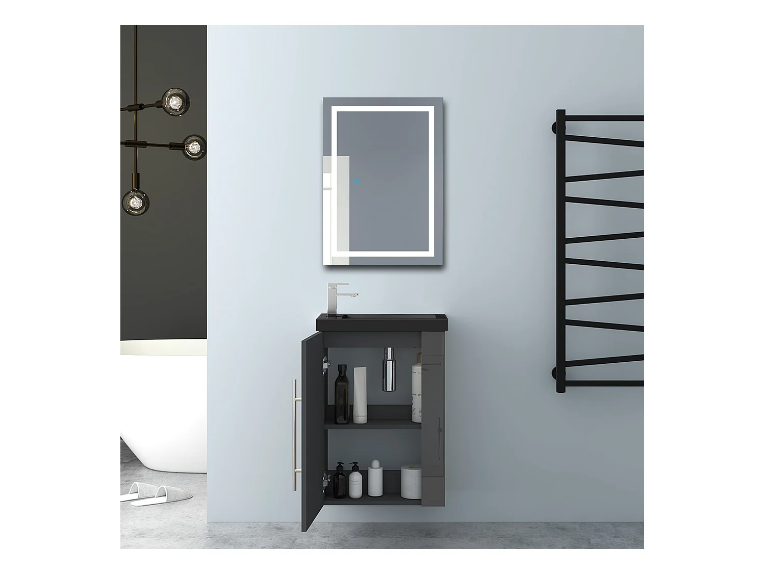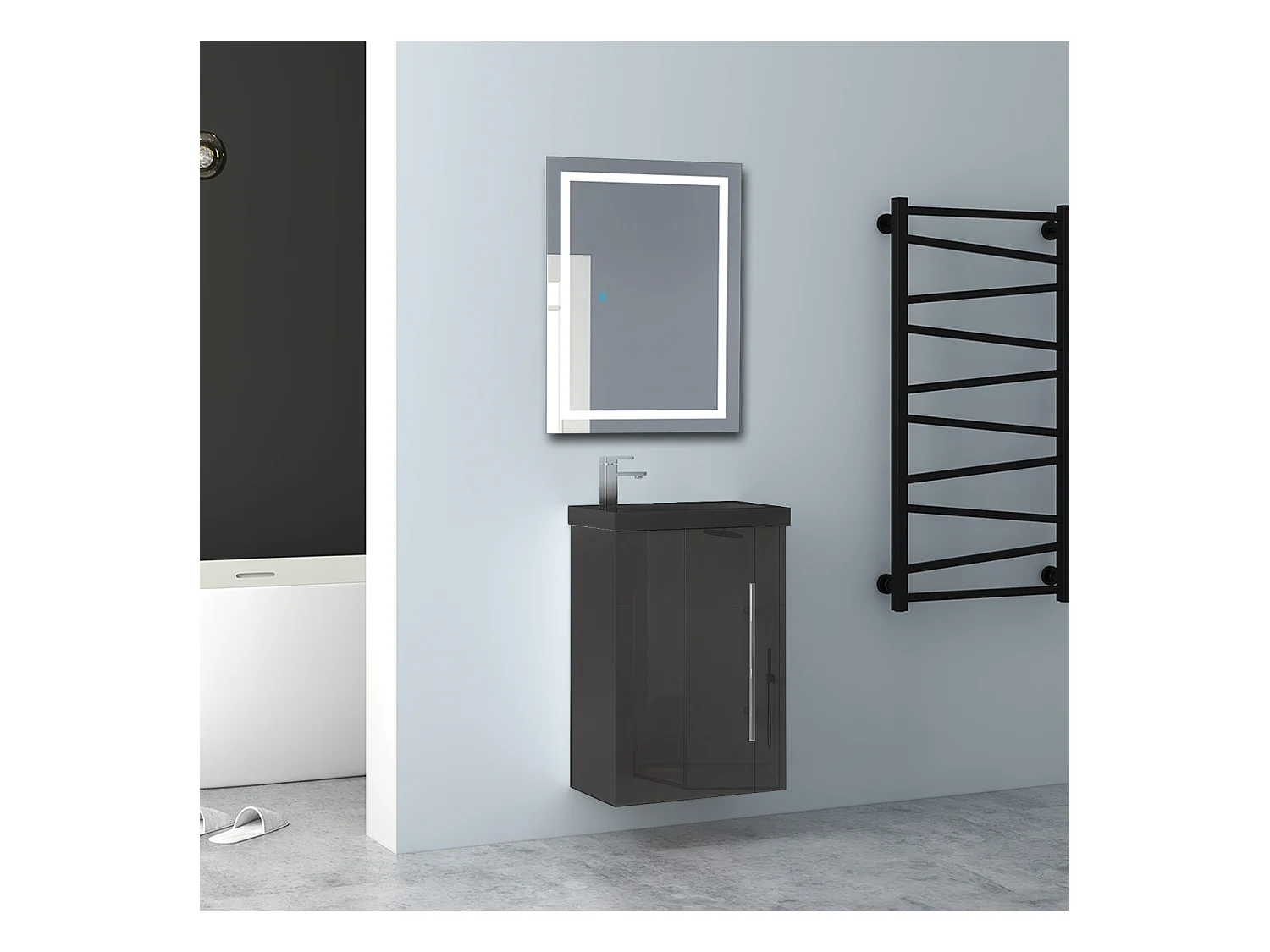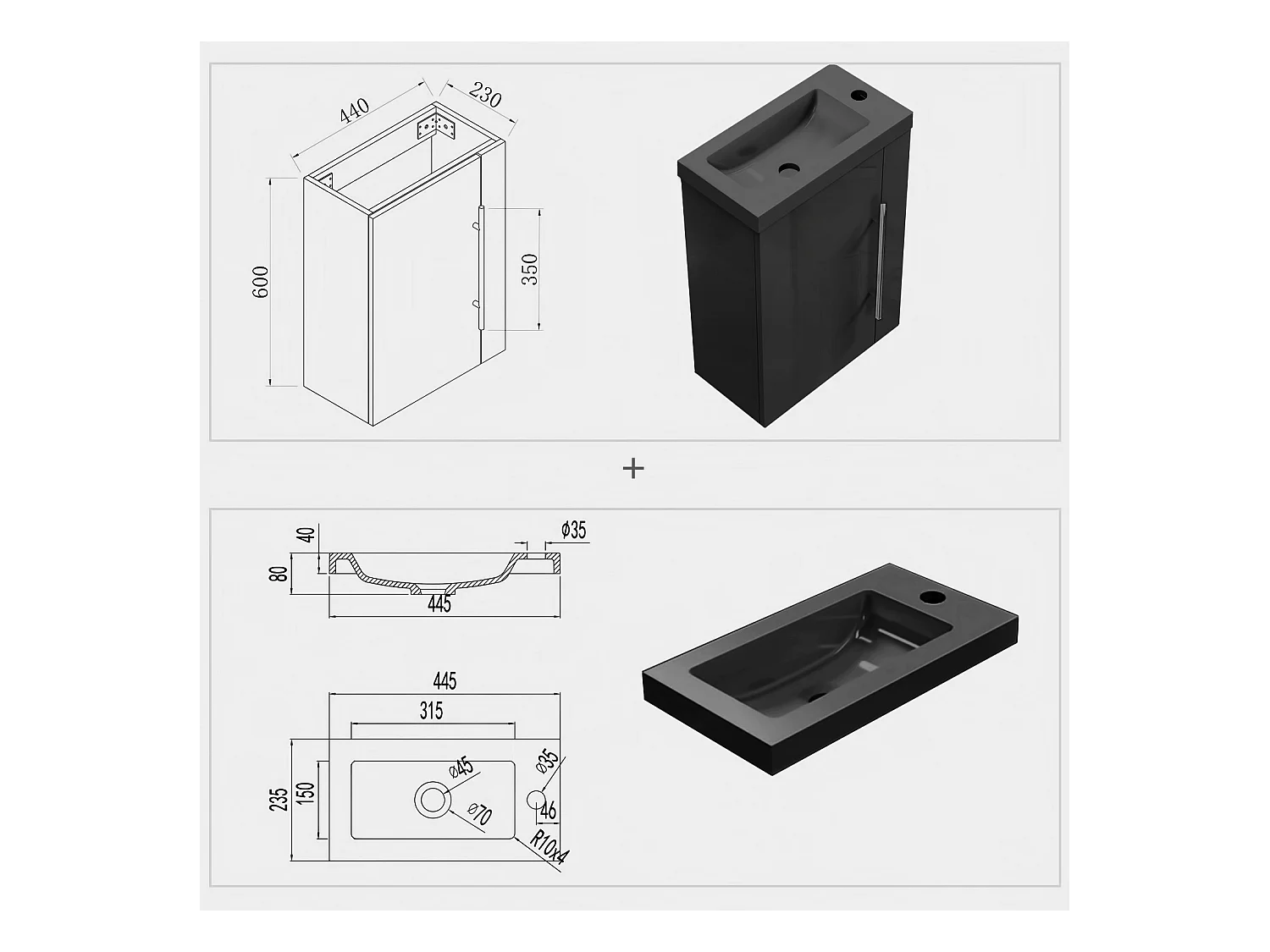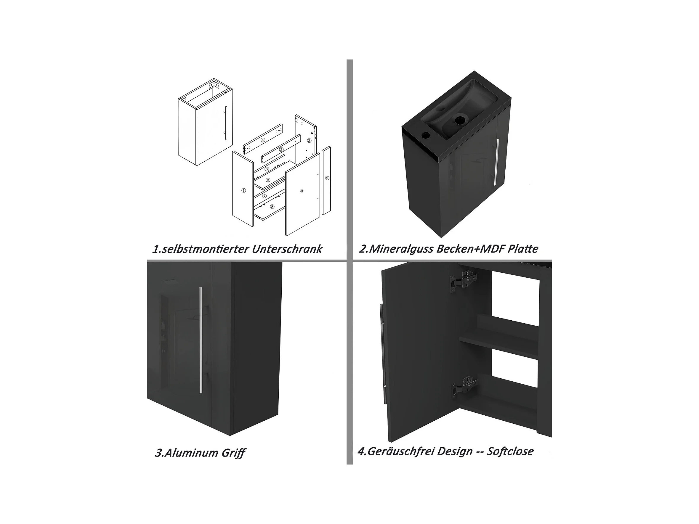 AICA Badmöbel 45cm Schwarz Waschtisch mit Unterschrank - Hochglanz Schwarz Hängeschrank