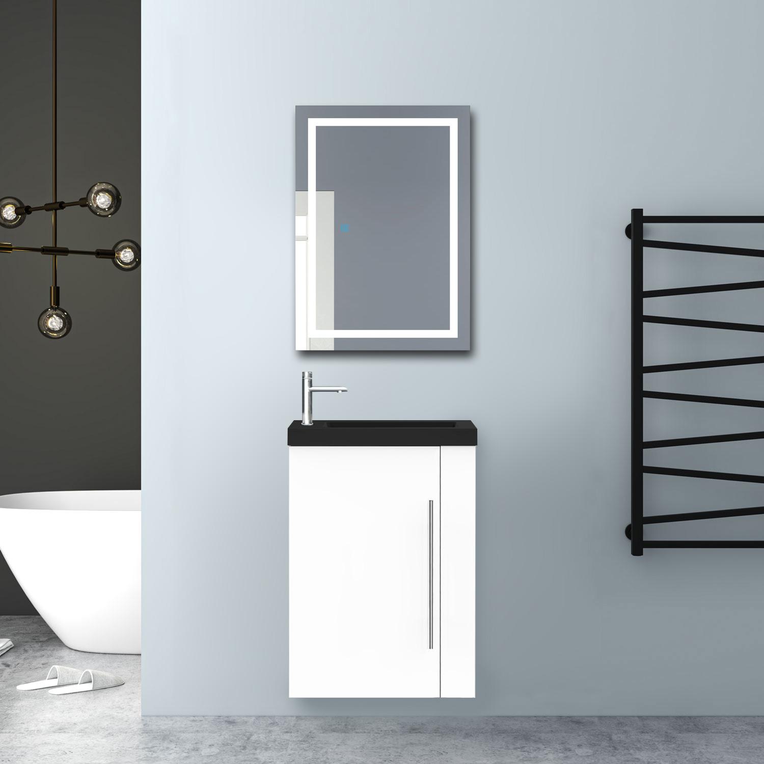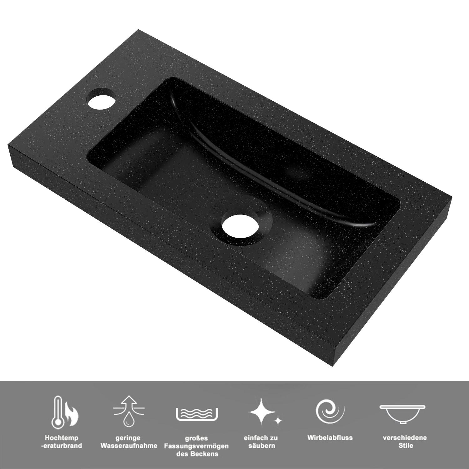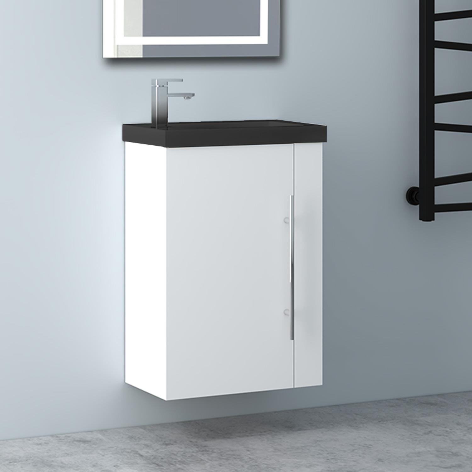 AICA Badmöbel 45cm Schwarz Waschtisch mit Unterschrank - Matt Weiß Hängeschrank