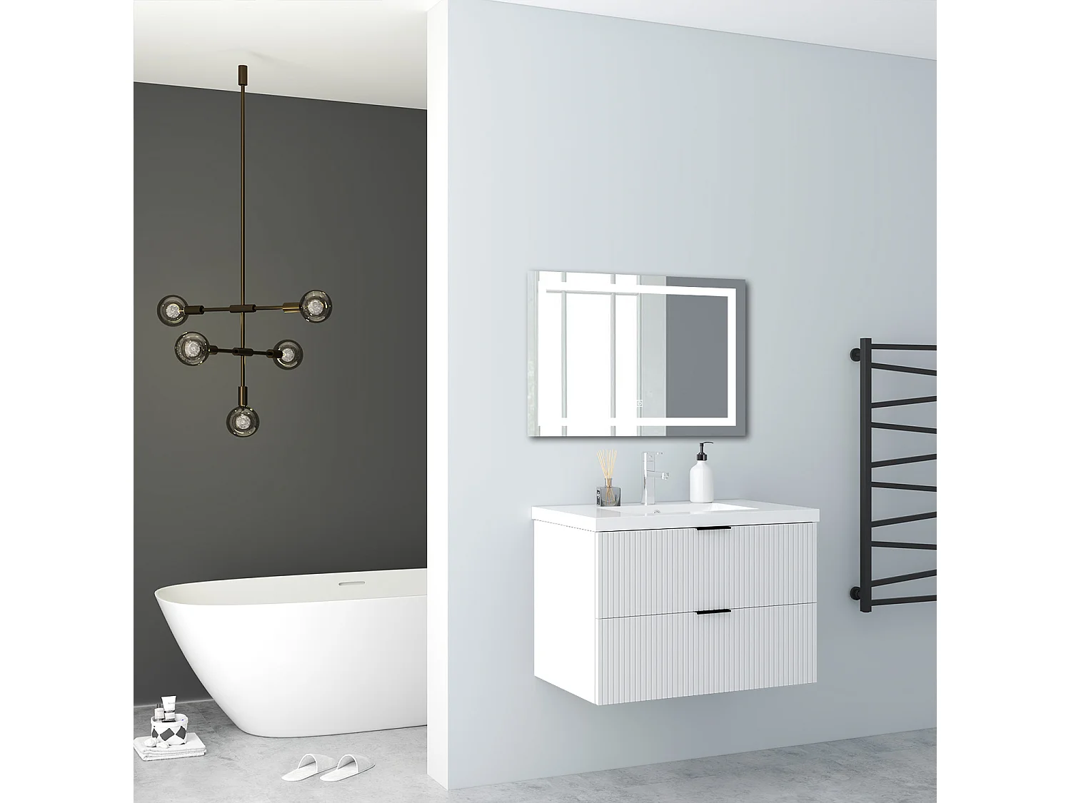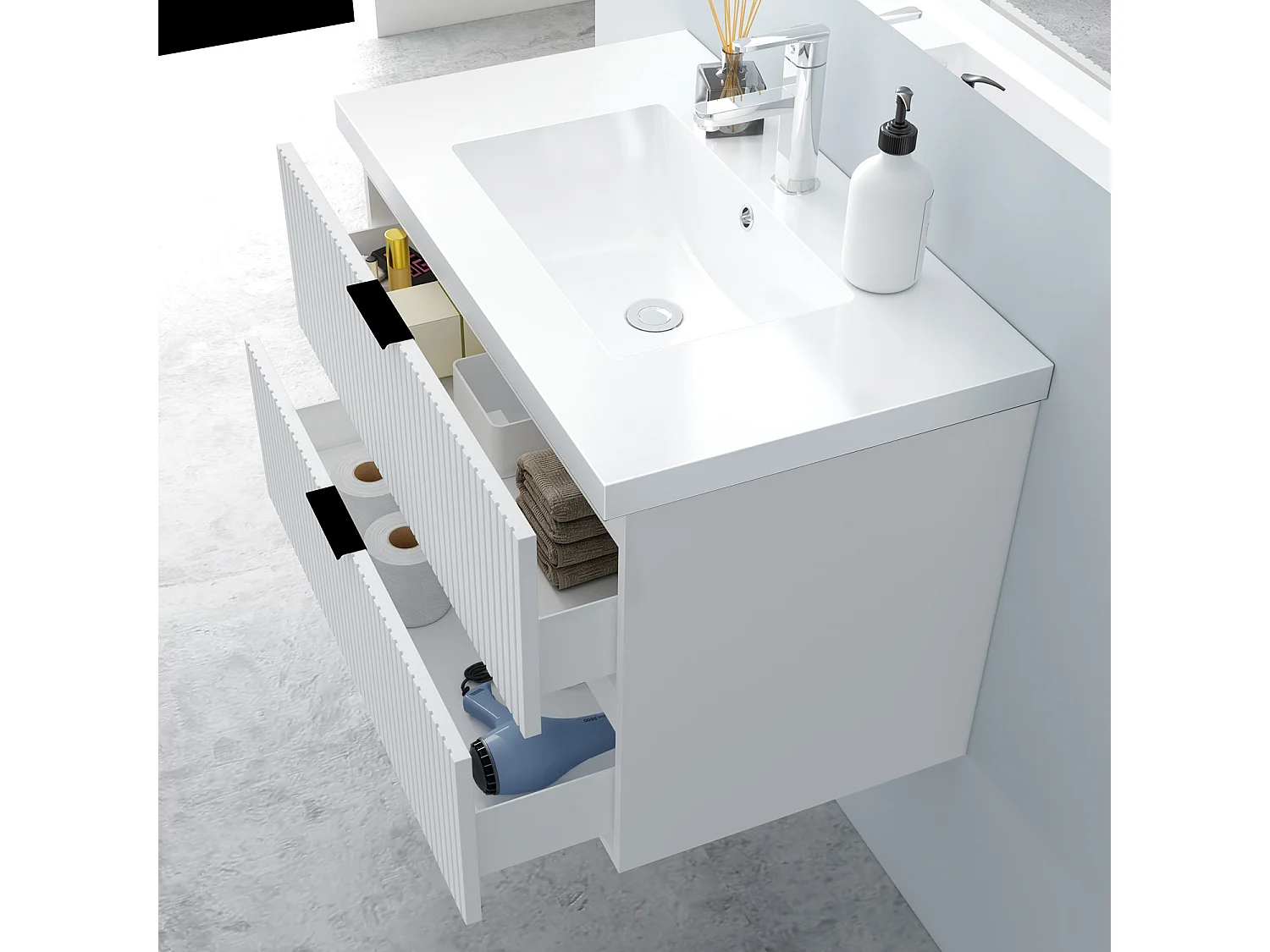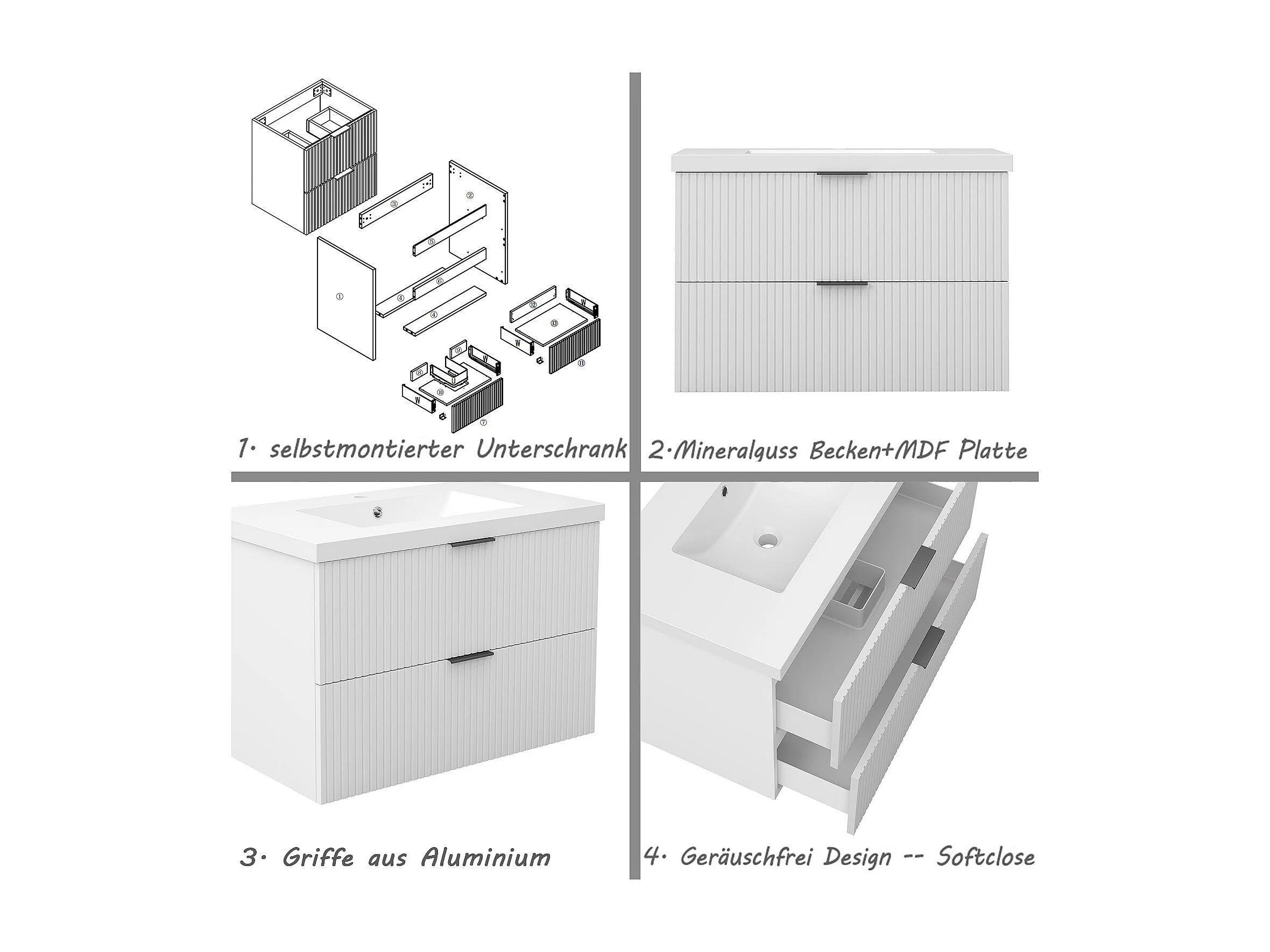 AICA Badmöbel 80cm Mineralguss Waschtisch Waschtisch mit Unterschrank hängend - Streifenoptik - Matt Weiß