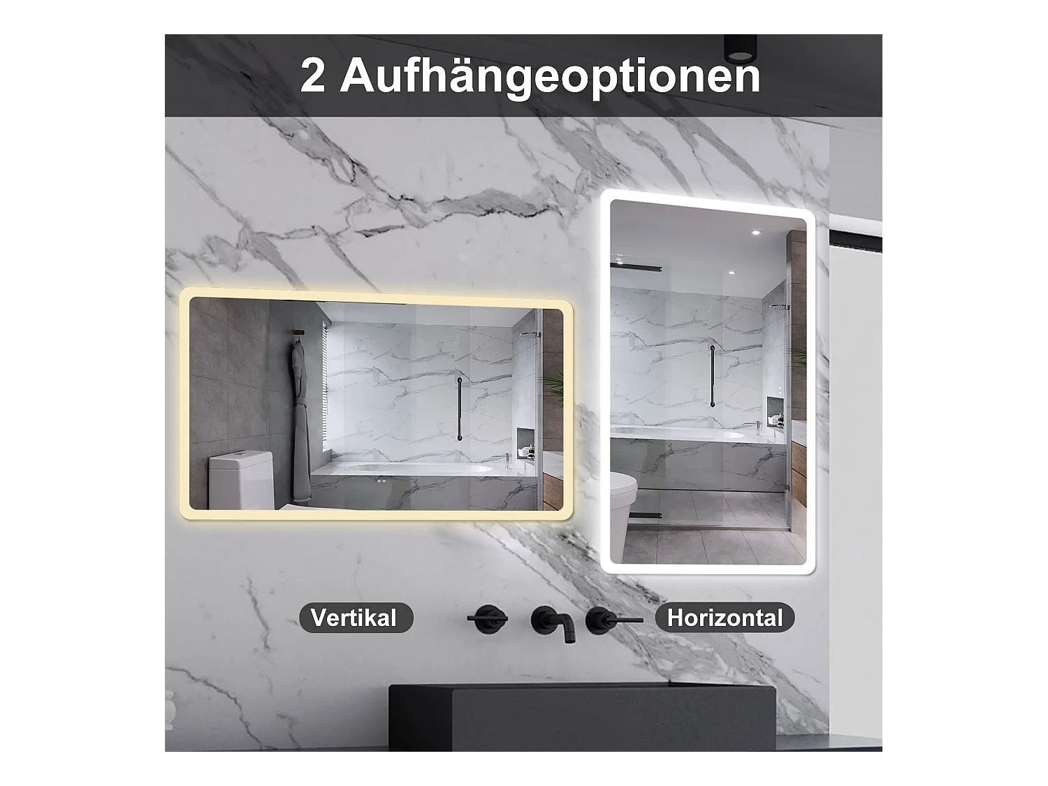 AICA Badspiegel mit Beleuchtung 120x70cm Sensor-Schalter Beschlagfrei 3 Lichtfarbe+Dimmbar Memory-Funktion