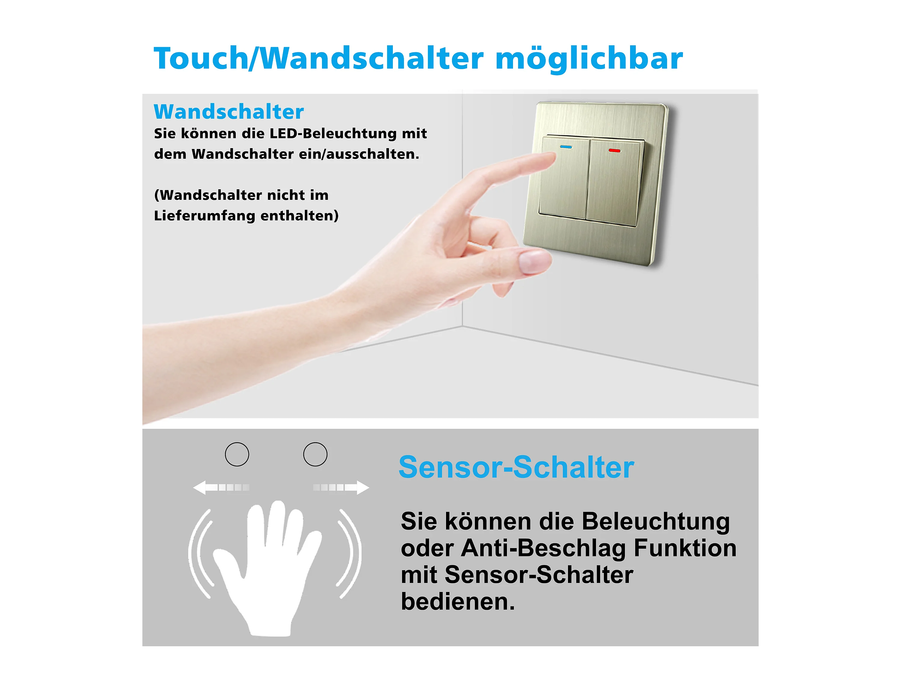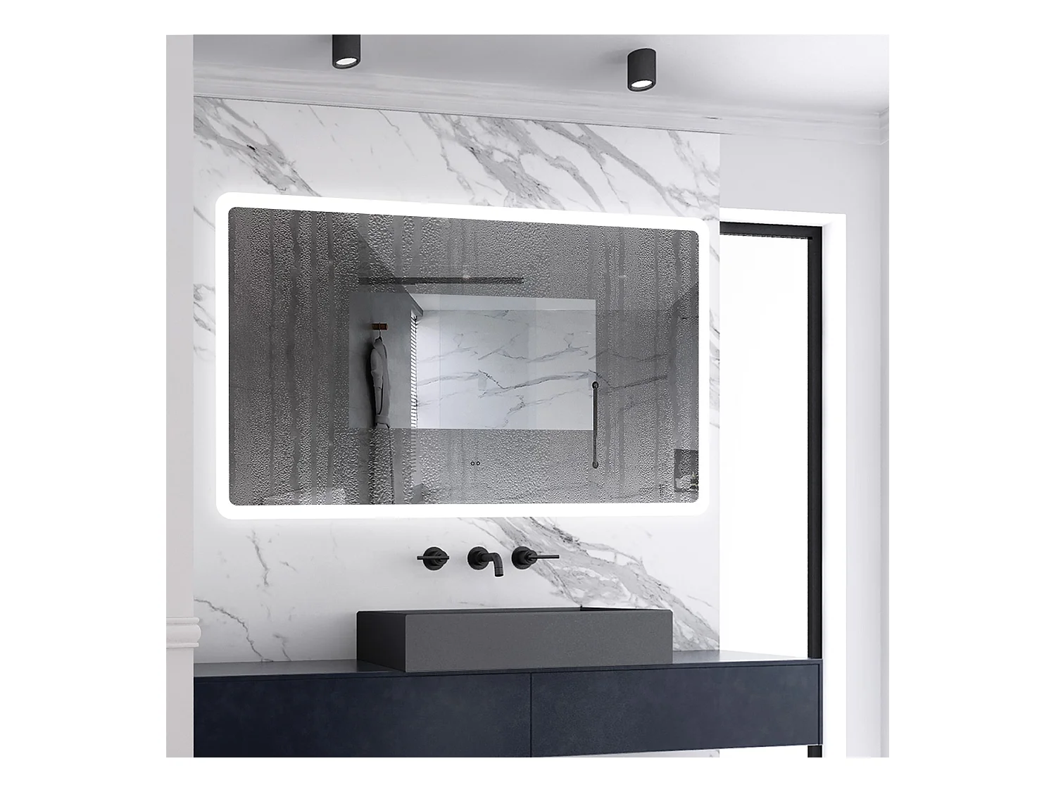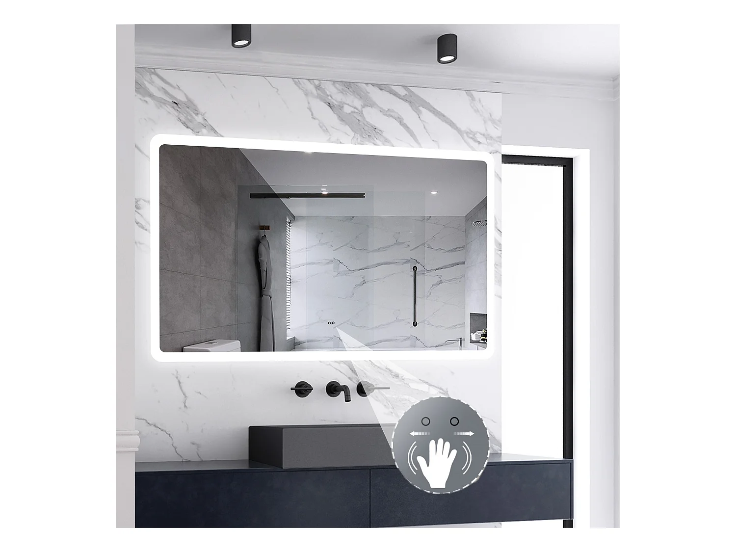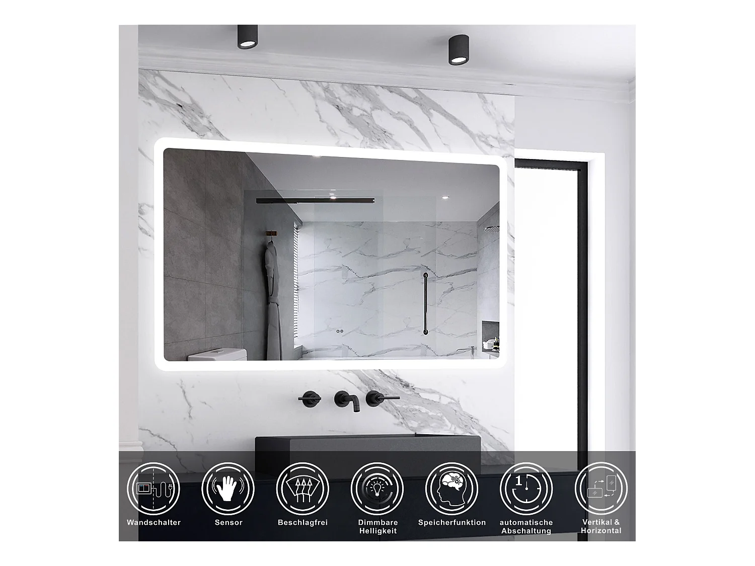AICA Badspiegel mit Beleuchtung 140x80cm Sensor-Schalter Beschlagfrei Kaltweiß dimmbar Memory-Funktion