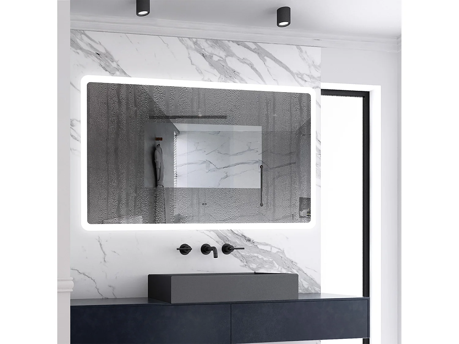 AICA Badspiegel mit Beleuchtung 160x80cm Sensor-Schalter Beschlagfrei 3 Lichtfarbe+Dimmbar Memory-Funktion