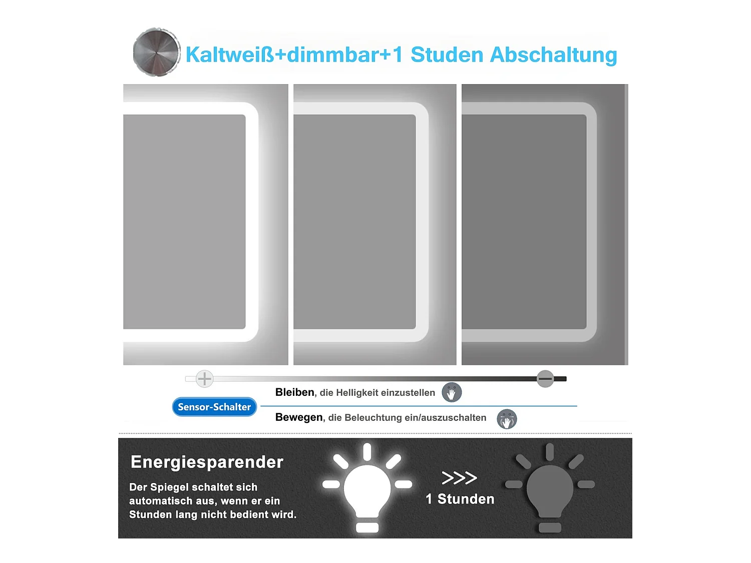 AICA Badspiegel mit Beleuchtung 160x80cm Sensor-Schalter Beschlagfrei Kaltweiß dimmbar Memory-Funktion LED Wandspiegel IP44
