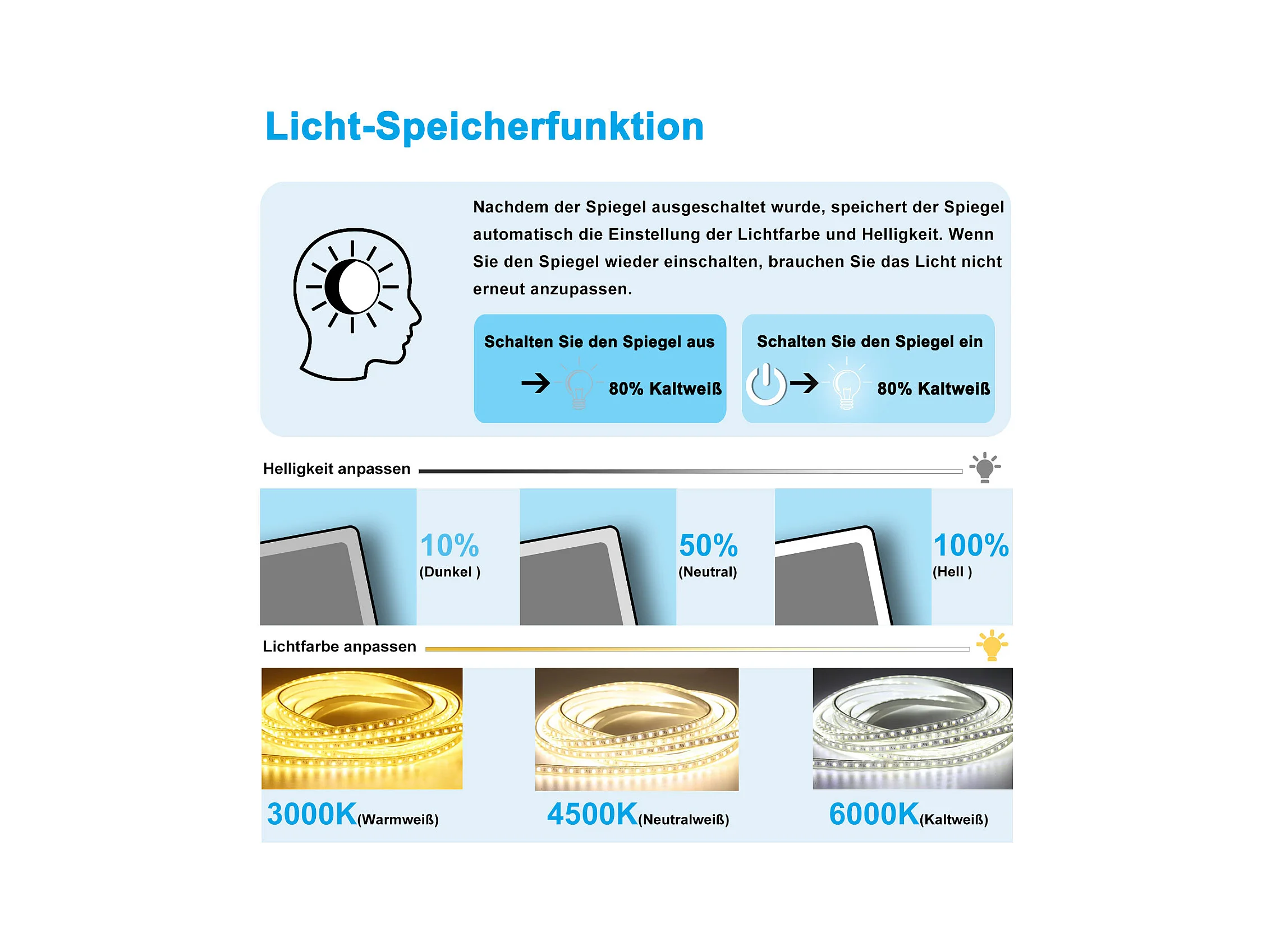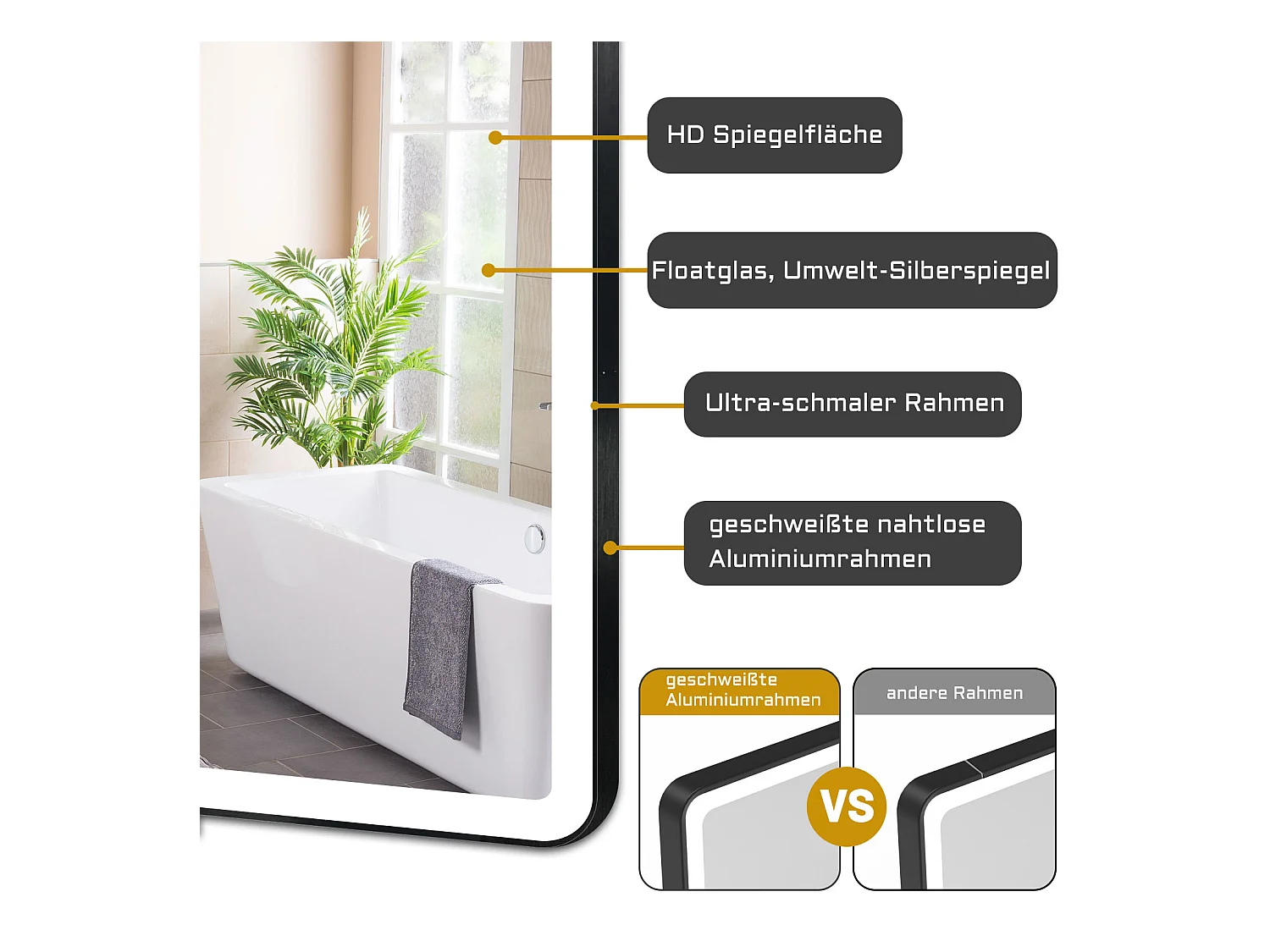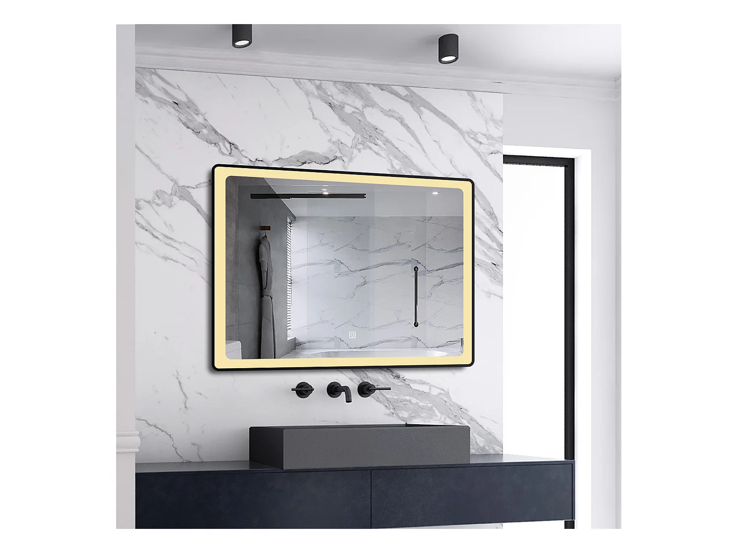 AICA Badspiegel mit LED-Beleuchtung 100x60cm Beschlagfrei 3 Lichtfarbe 3000K-6000K+Dimmbar Schwarz Rahmen