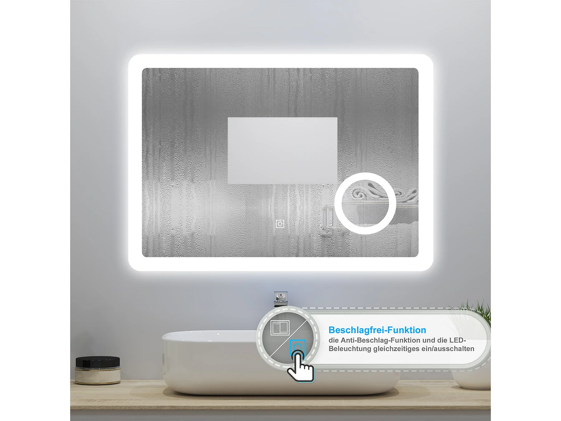AICA Badspiegel mit LED-Beleuchtung 100x60cm Kosmetikspiegel Beschlagfrei 3 Lichtfarbe+Dimmbar Memory-Funktion
