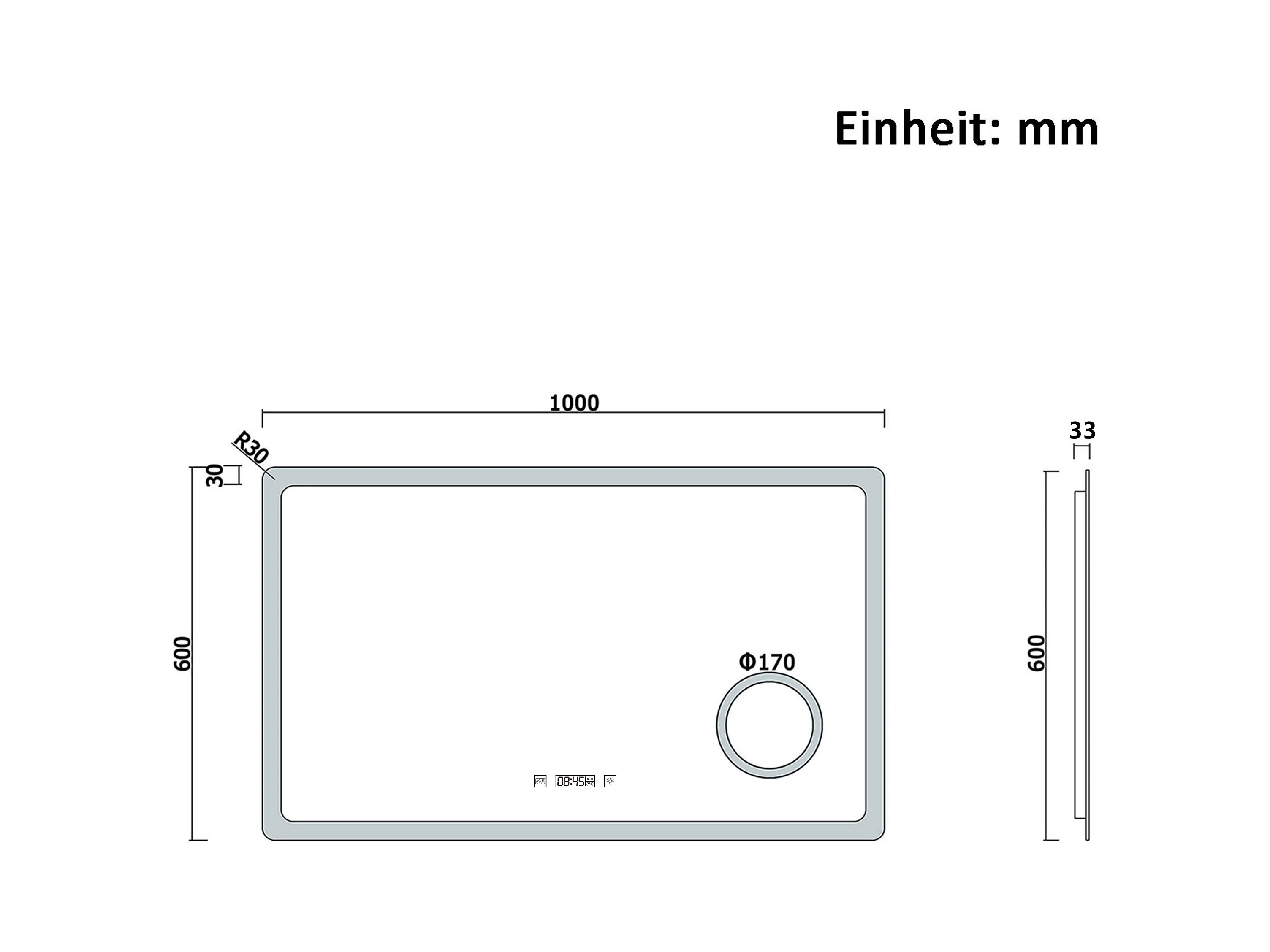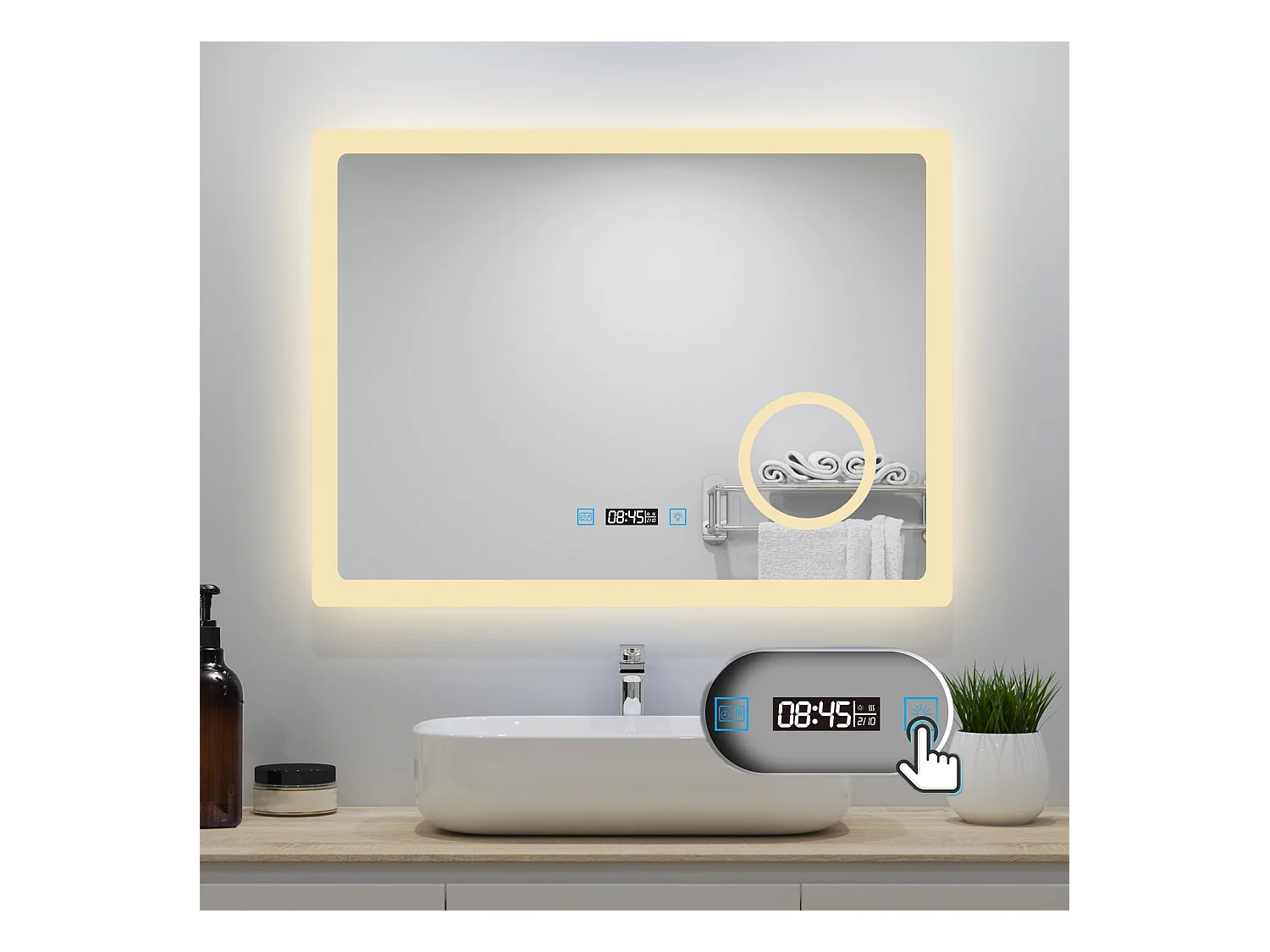 AICA Badspiegel mit LED-Beleuchtung 100x60cm Uhr Kosmetikspiegel Beschlagfrei 3 Lichtfarbe+Dimmbar Memory-Funktion