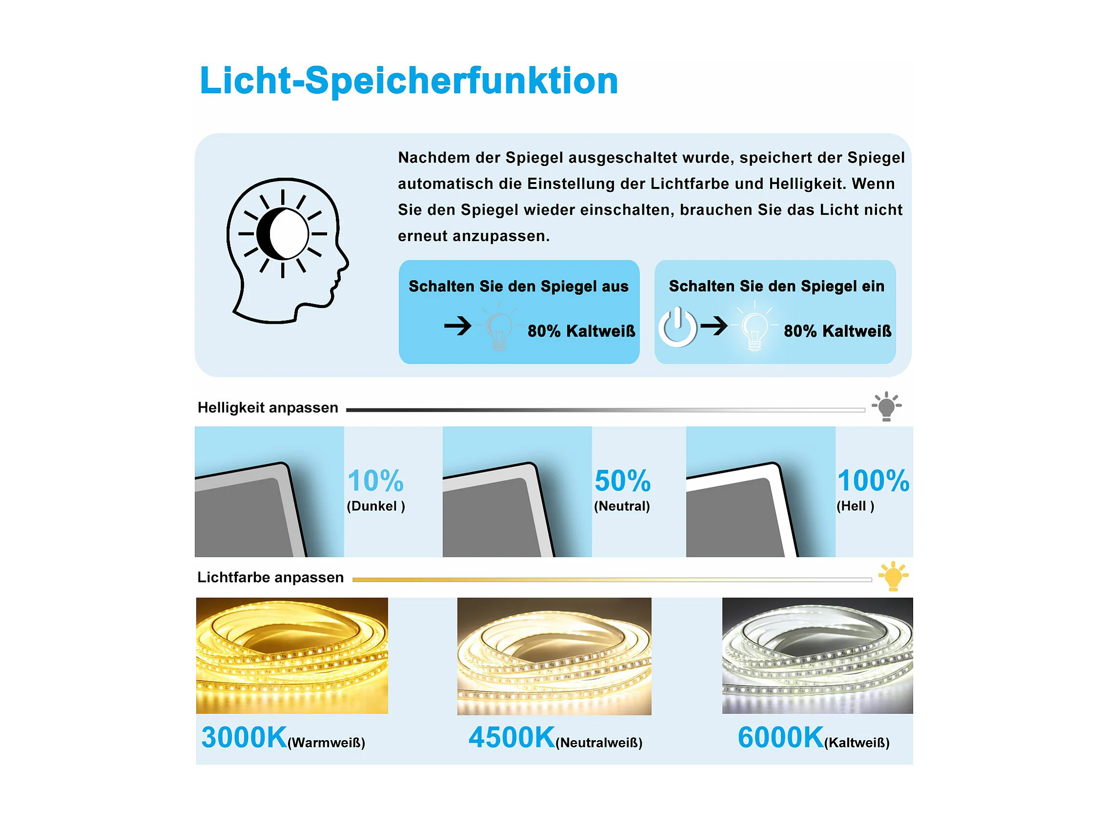 AICA Badspiegel mit LED-Beleuchtung 120x70cm Beschlagfrei 3 Lichtfarbe 3000K-6000K+Dimmbar Schwarz Rahmen