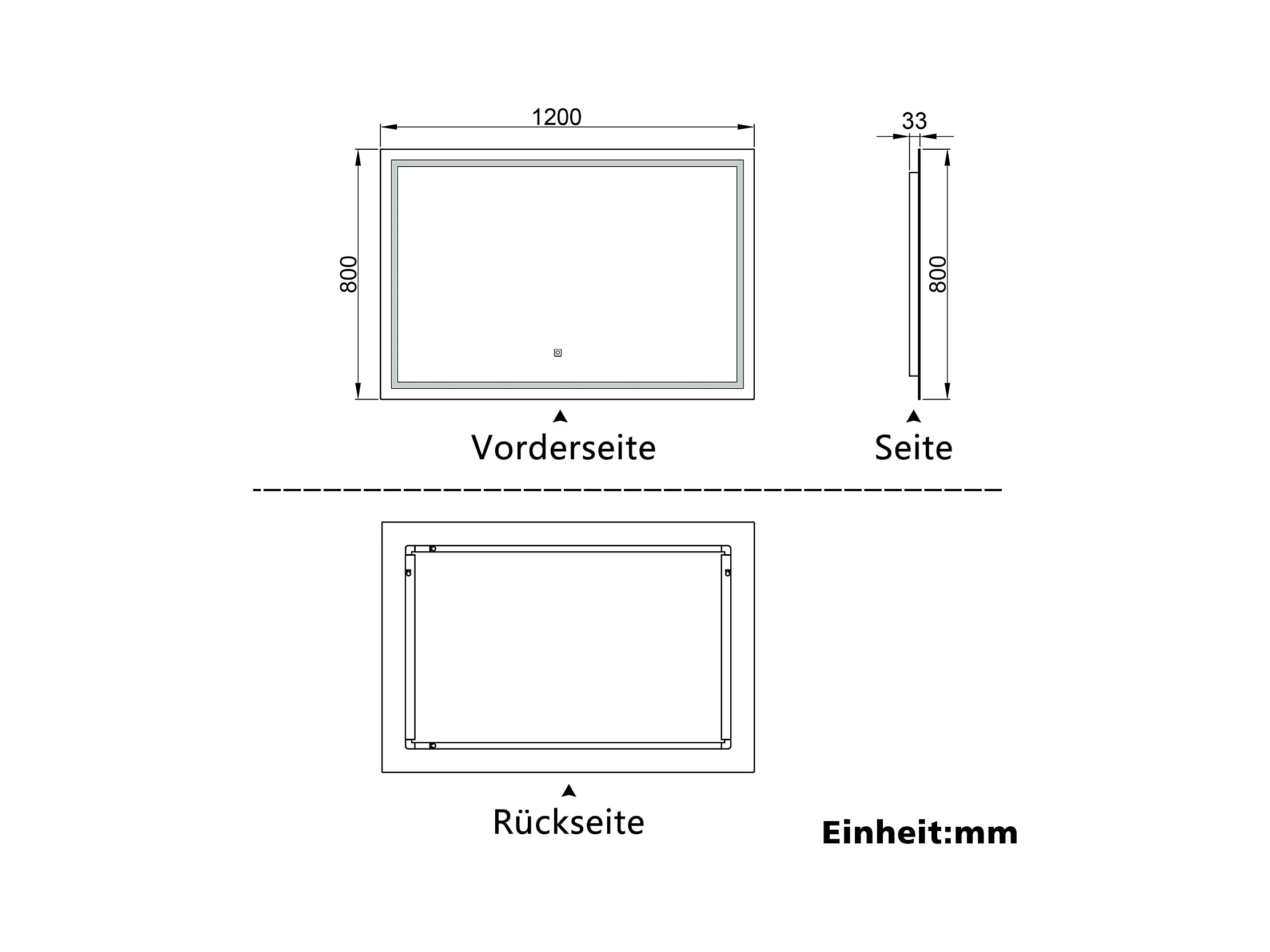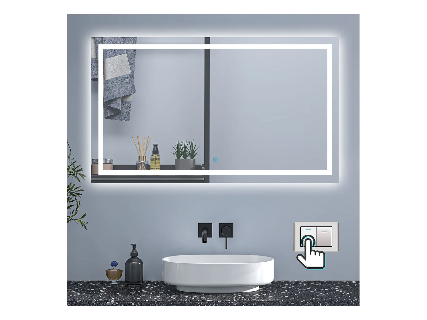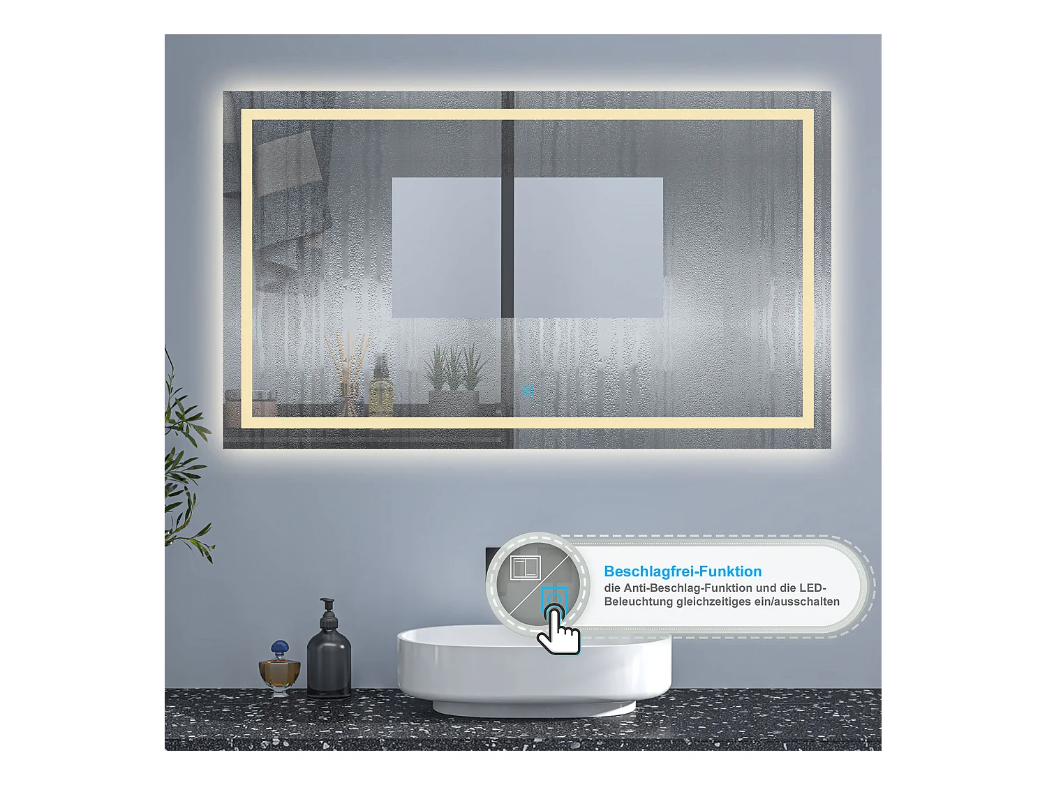 AICA Badspiegel mit LED-Beleuchtung 120x80cm Wand/Touchschalter Beschlagfrei 3 Lichtfarbe+Dimmbar Memory-Funktion - PALMAR