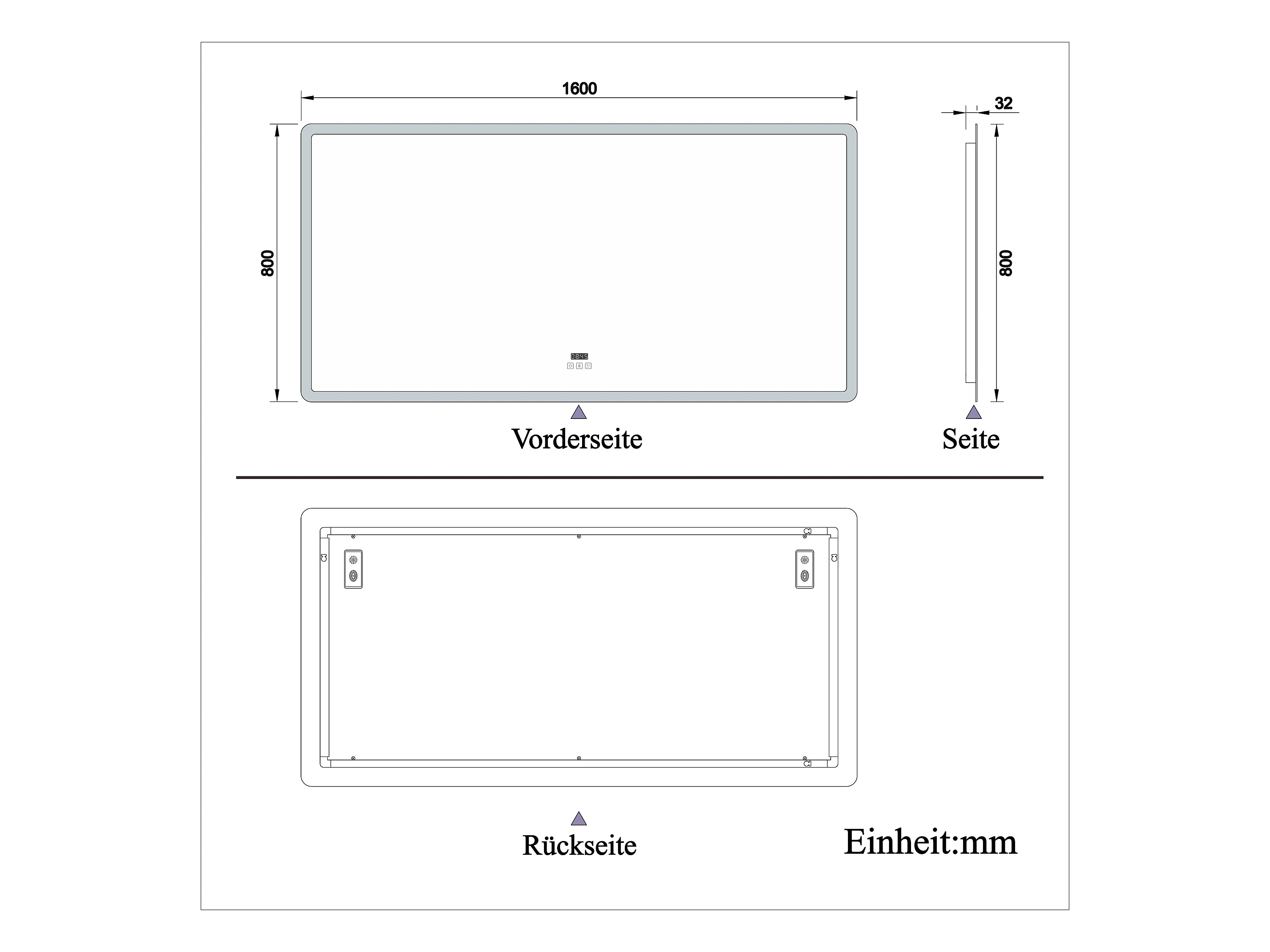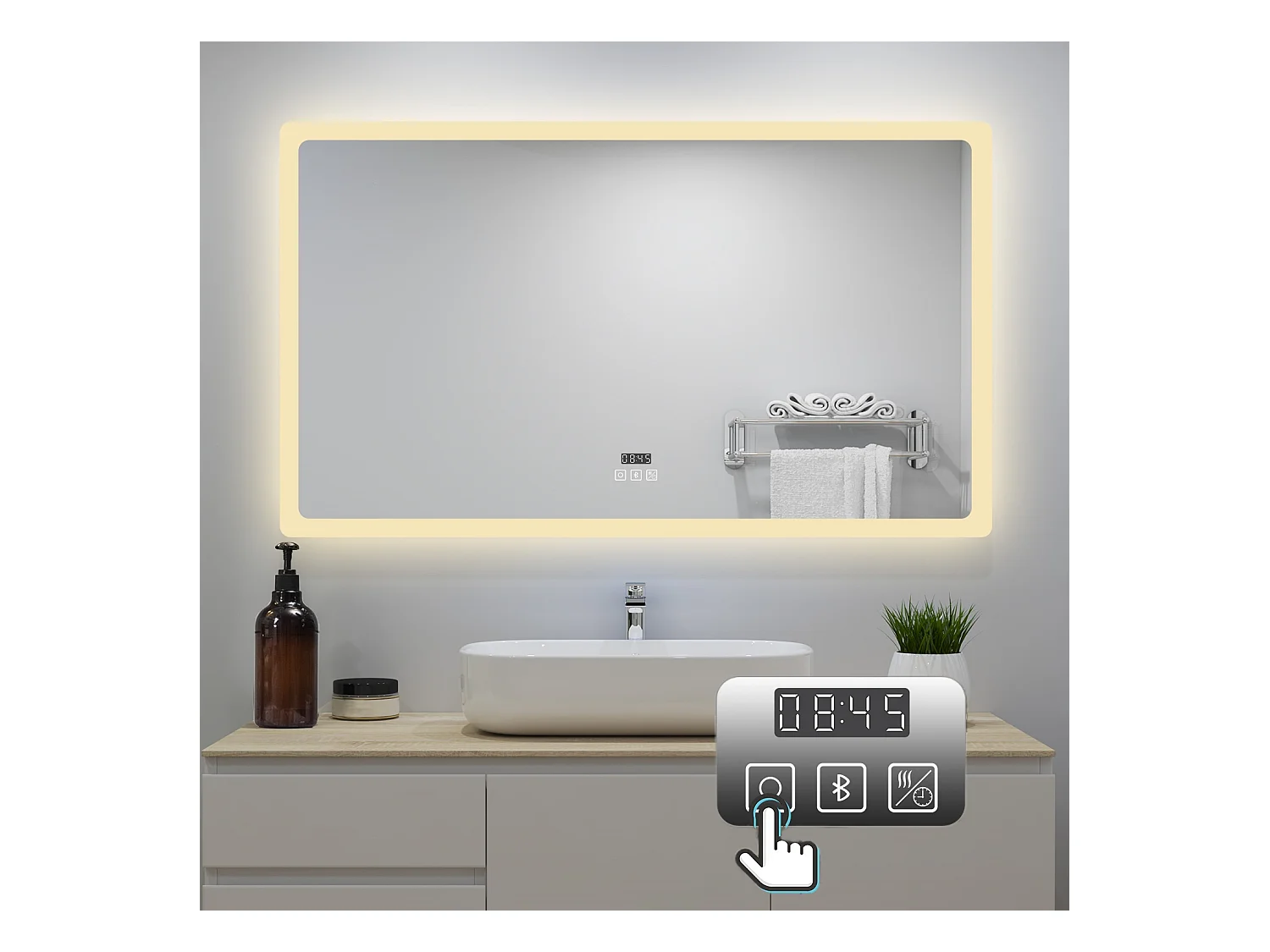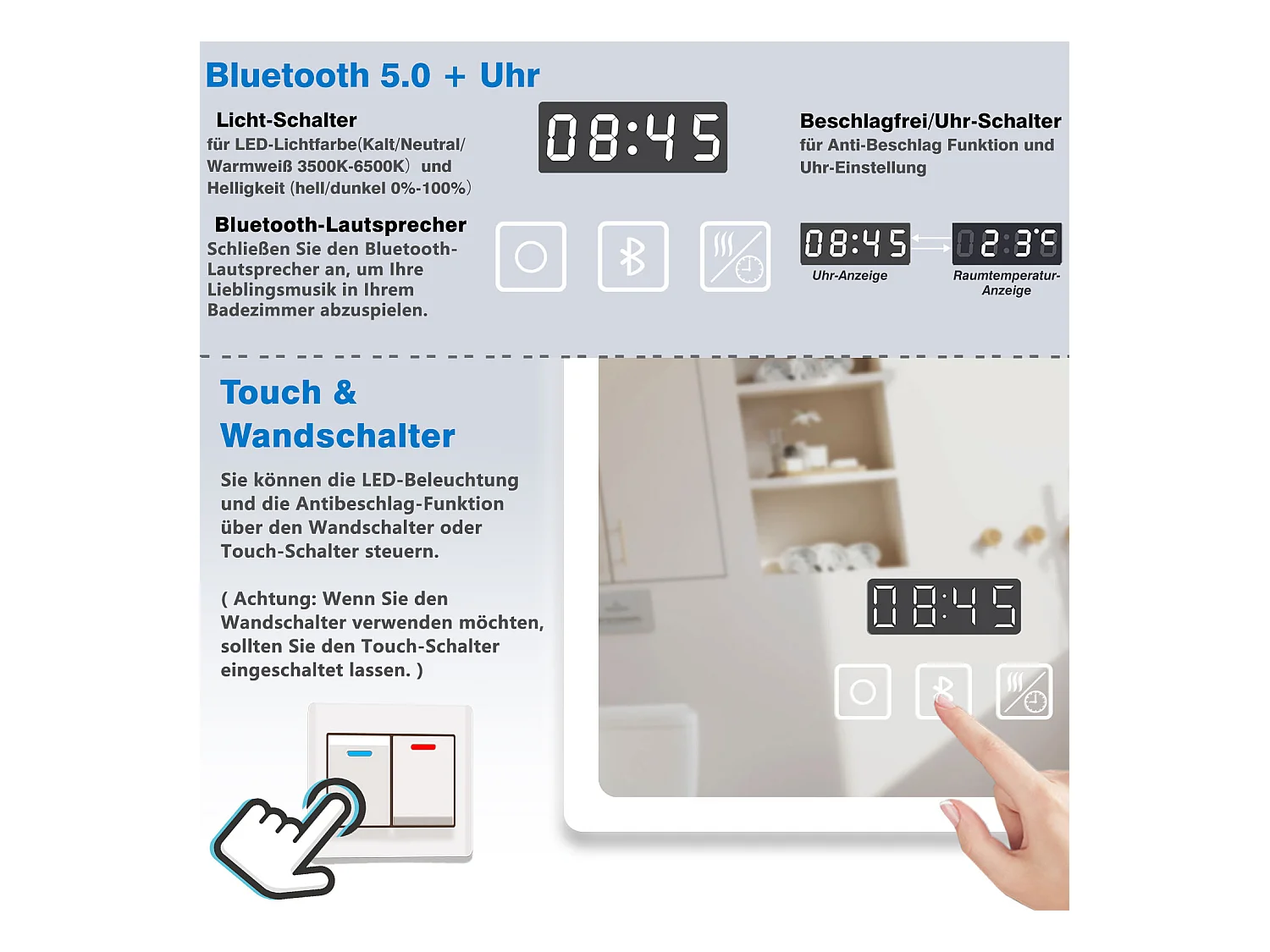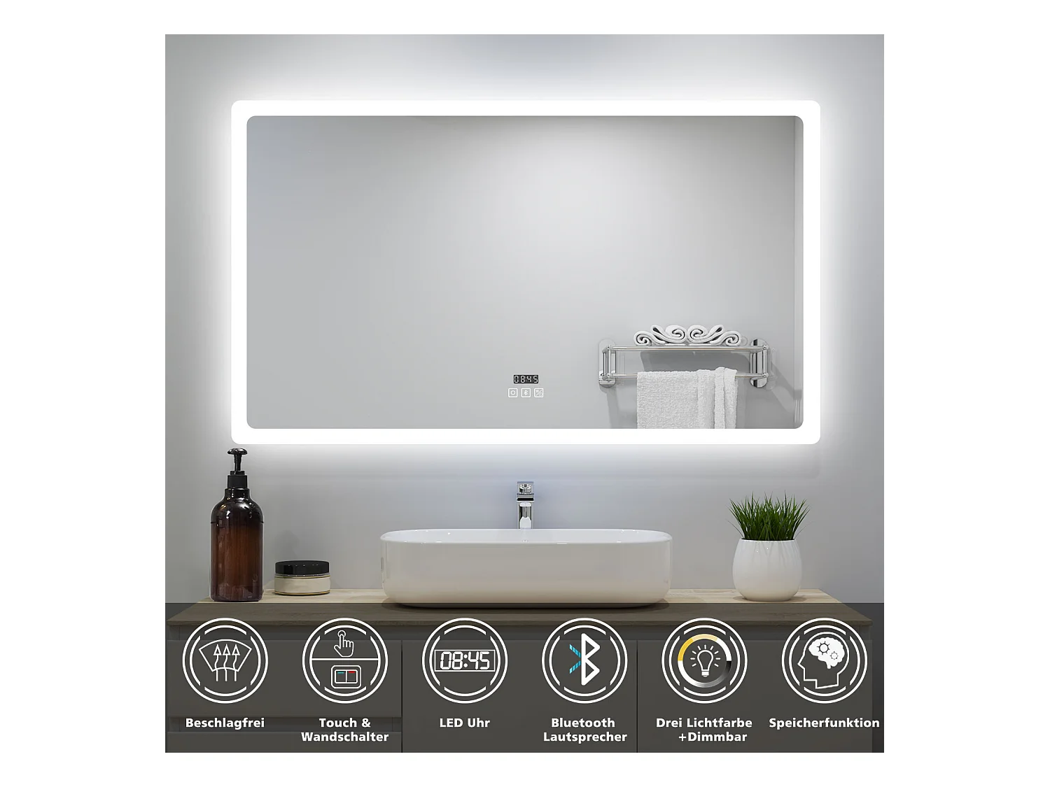 AICA Badspiegel mit LED-Beleuchtung 160x80cm Bluetooth Uhr Beschlagfrei 3 Lichtfarbe+Dimmbar Memory-Funktion