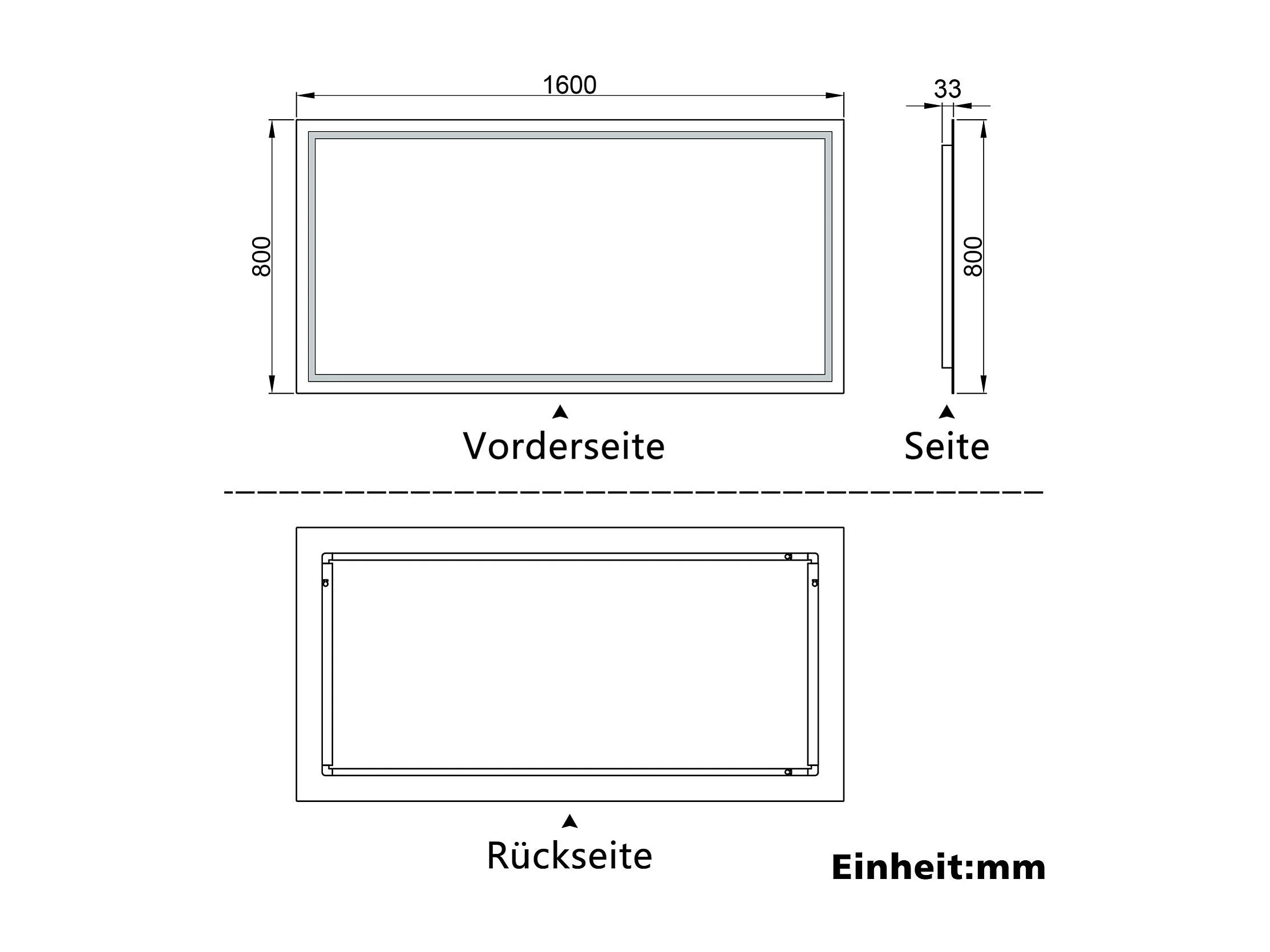 AICA Badspiegel mit LED-Beleuchtung 160x80cm Wandschalter Beschlagfrei Kaltweiß - PALMAR