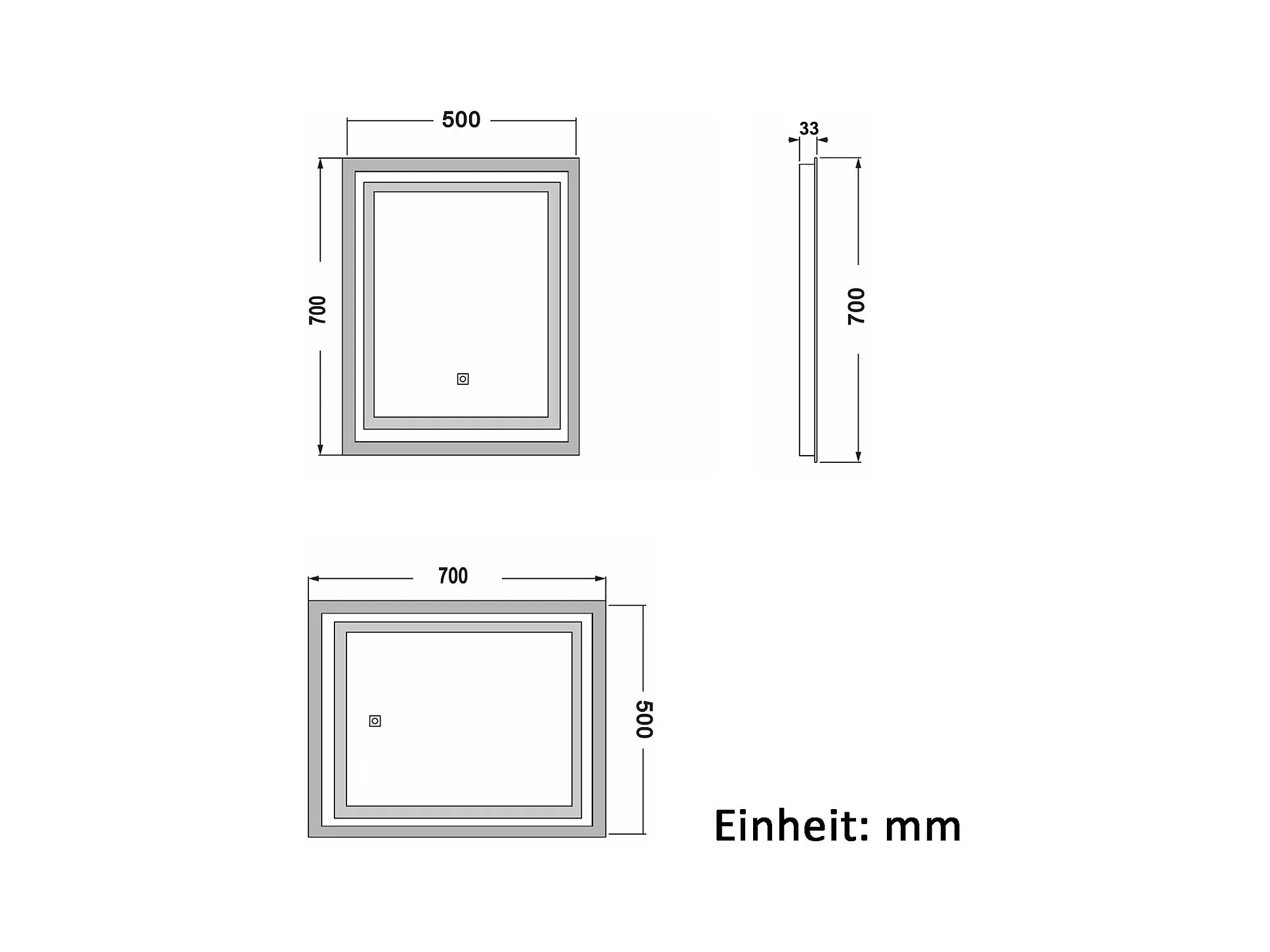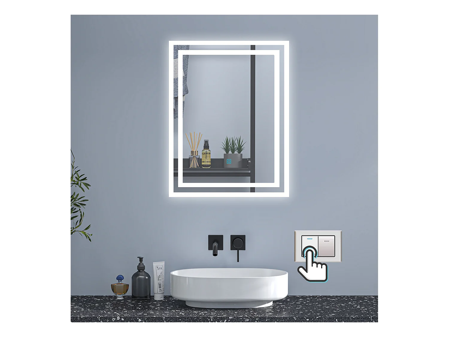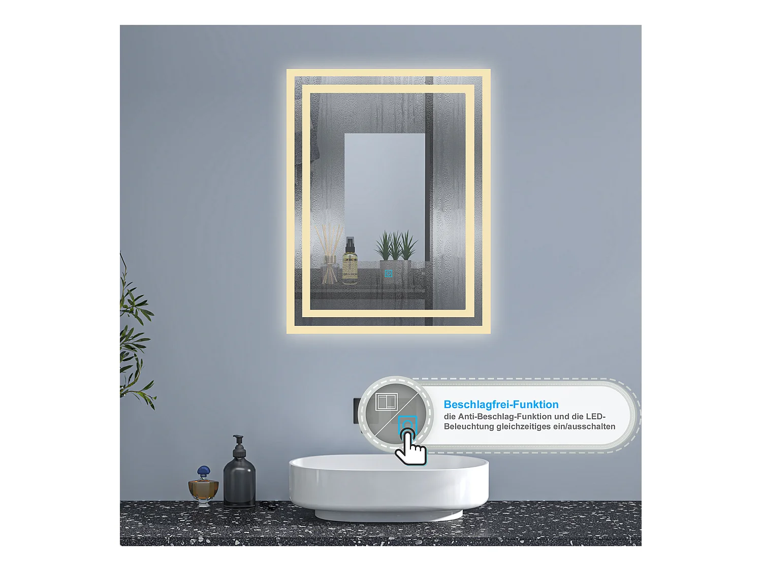AICA Badspiegel mit LED-Beleuchtung 50x70cm Wand/Touchschalter Beschlagfrei 3 Lichtfarbe+Dimmbar Memory-Funktion - PICHON