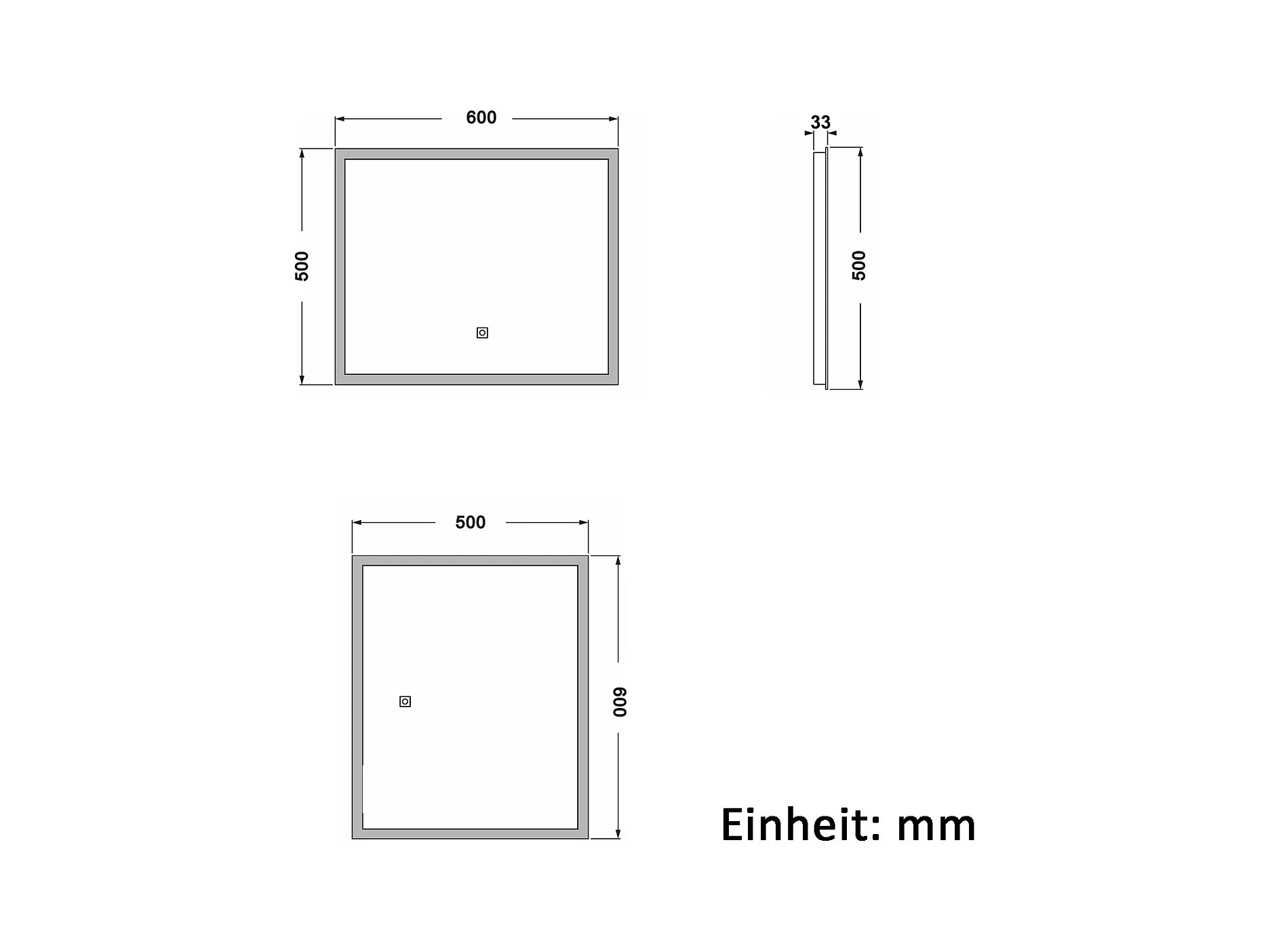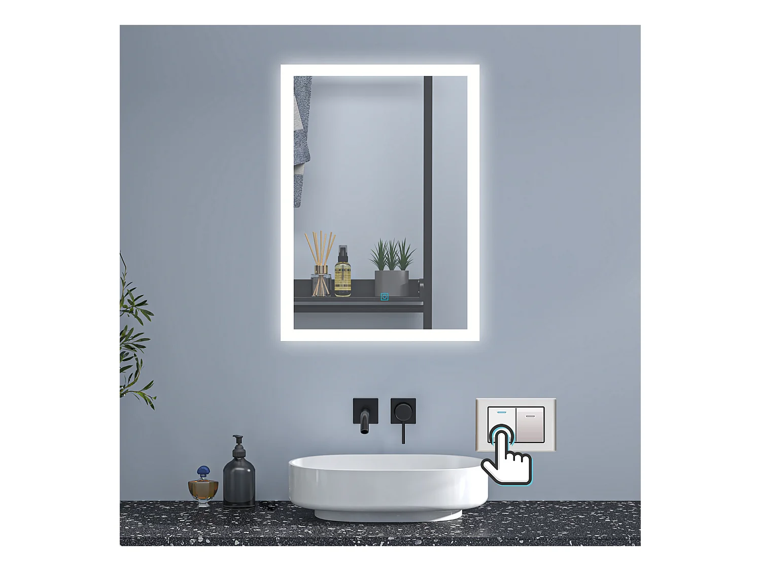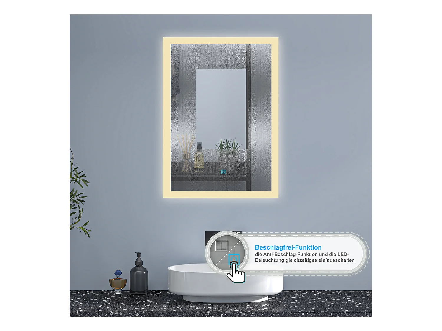 AICA Badspiegel mit LED-Beleuchtung 60x50cm Wand/Touchschalter Beschlagfrei 3 Lichtfarbe+Dimmbar Memory-Funktion - BELAIR