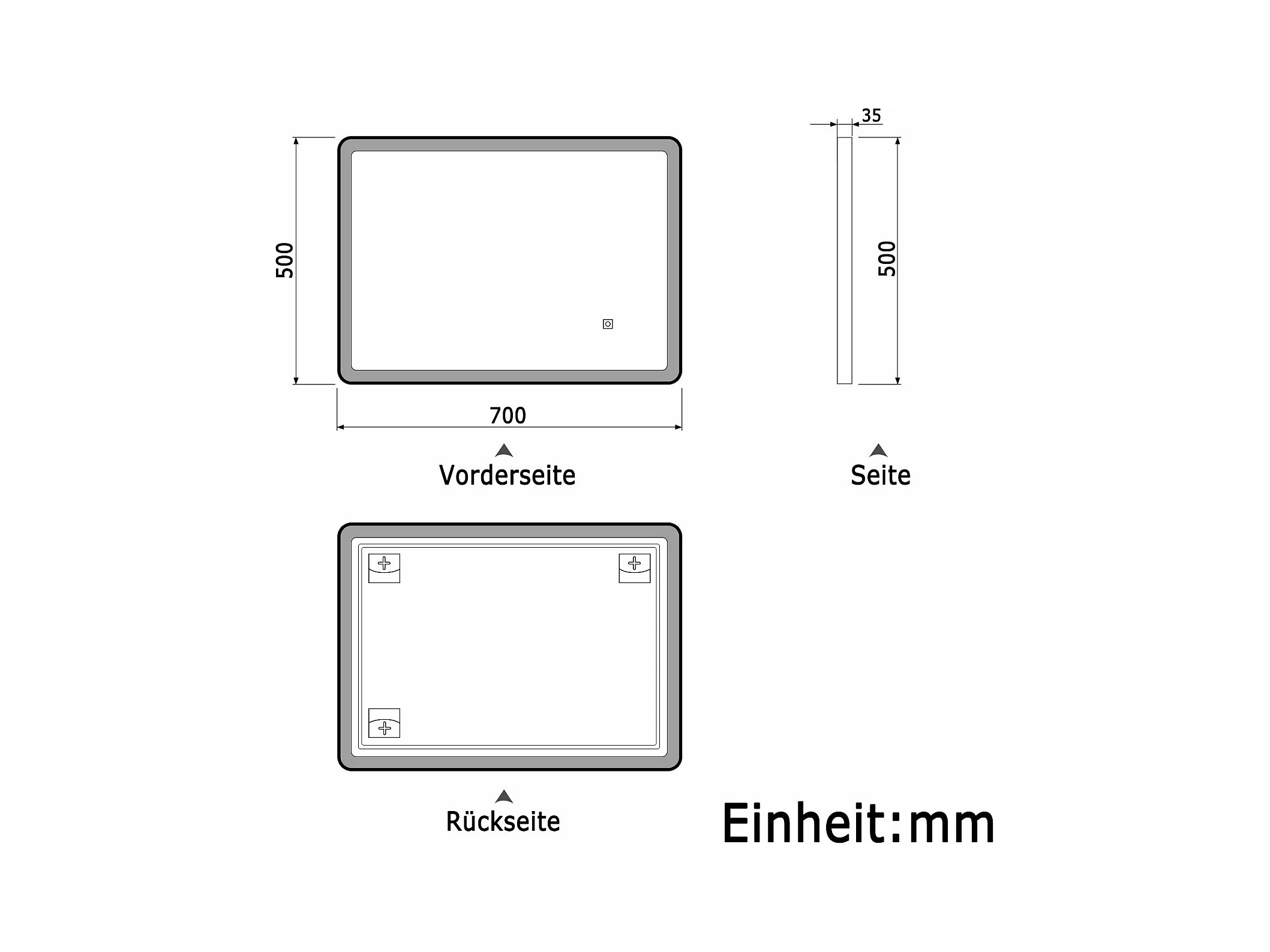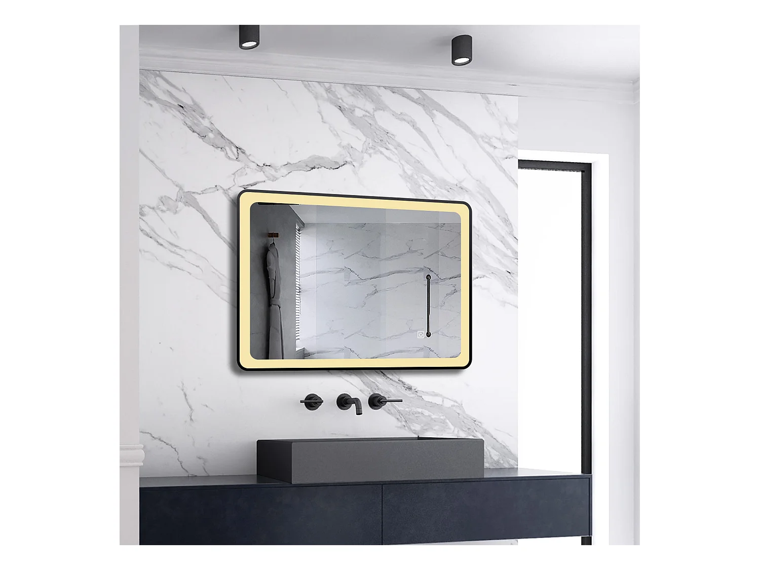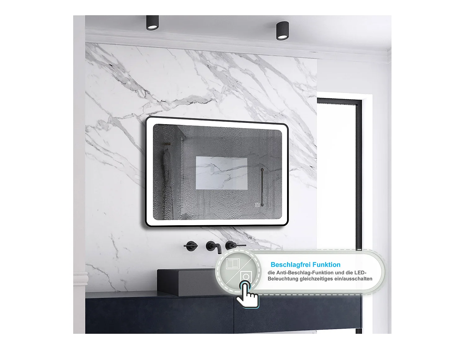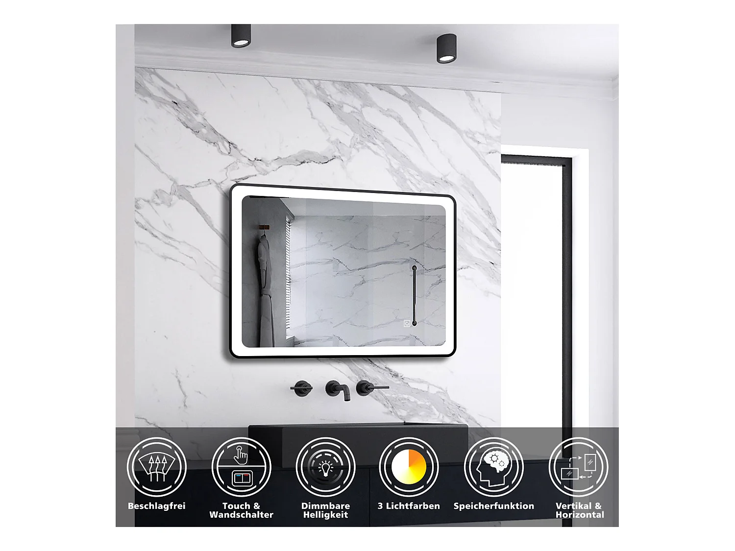 AICA Badspiegel mit LED-Beleuchtung 70x50cm Beschlagfrei 3 Lichtfarbe 3000K-6000K+Dimmbar Schwarz Rahmen