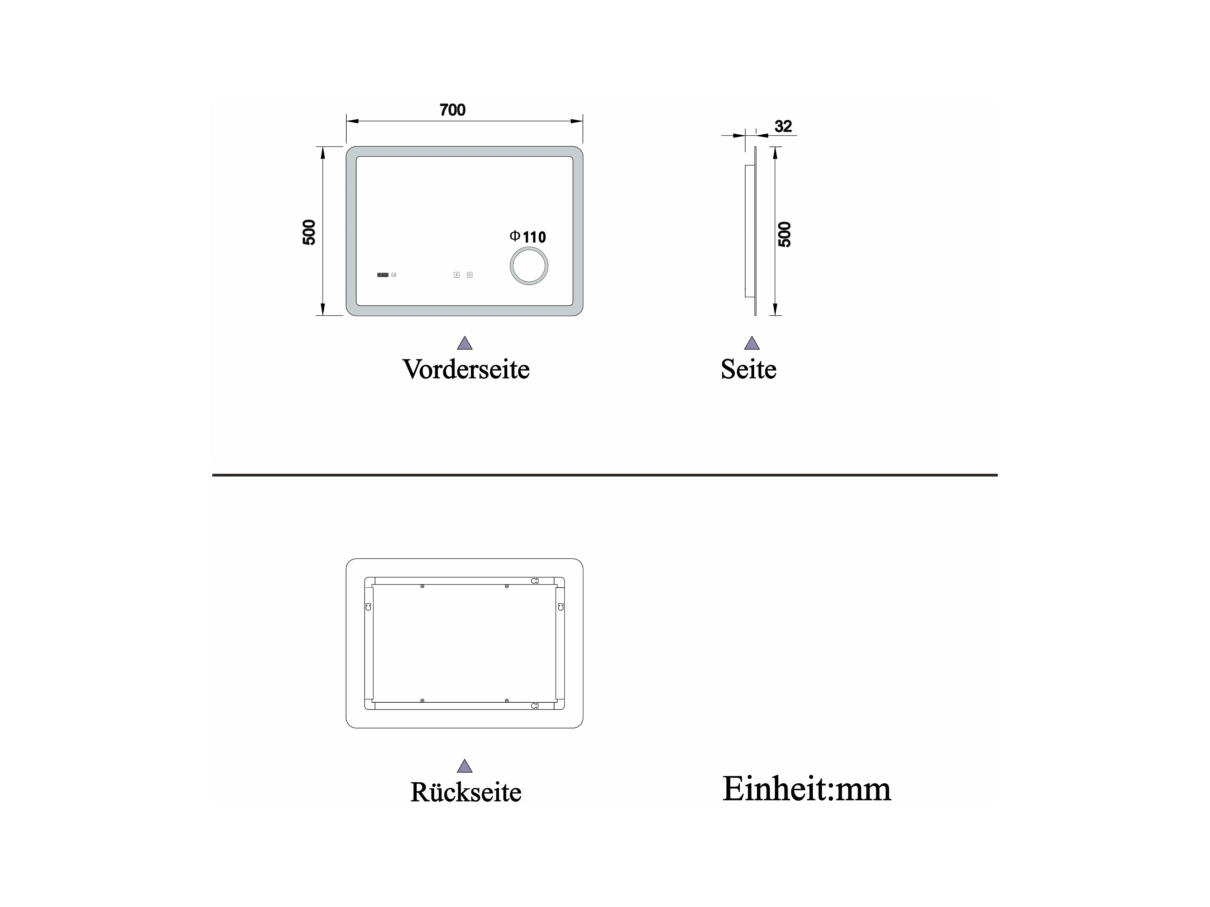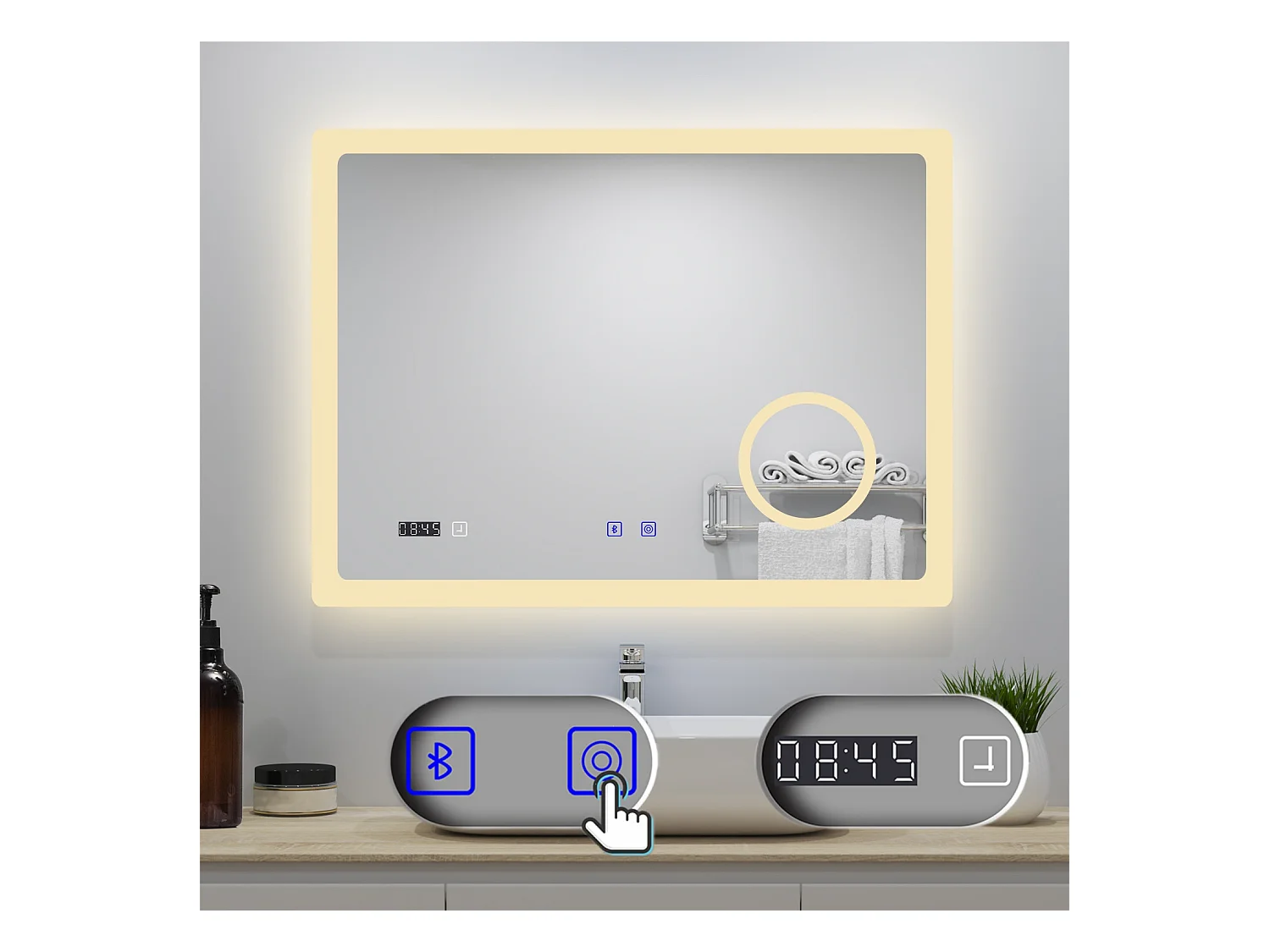 AICA Badspiegel mit LED-Beleuchtung 70x50cm Bluetooth Uhr Kosmetikspiegel 3 Lichtfarbe+Dimmbar Beschlagfrei Memory-Funktion
