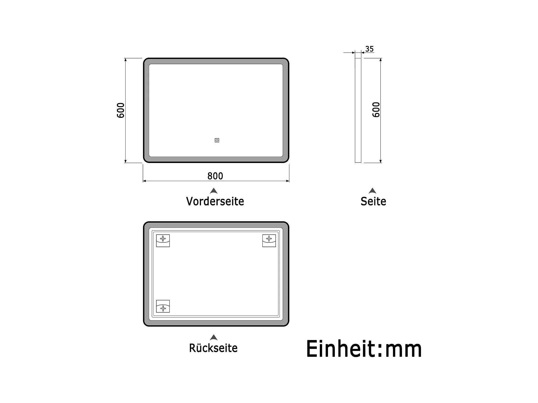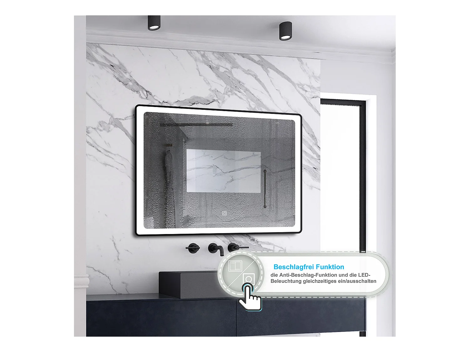 AICA Badspiegel mit LED-Beleuchtung 80x60cm Beschlagfrei 3 Lichtfarbe 3000K-6000K+Dimmbar Schwarz Rahmen