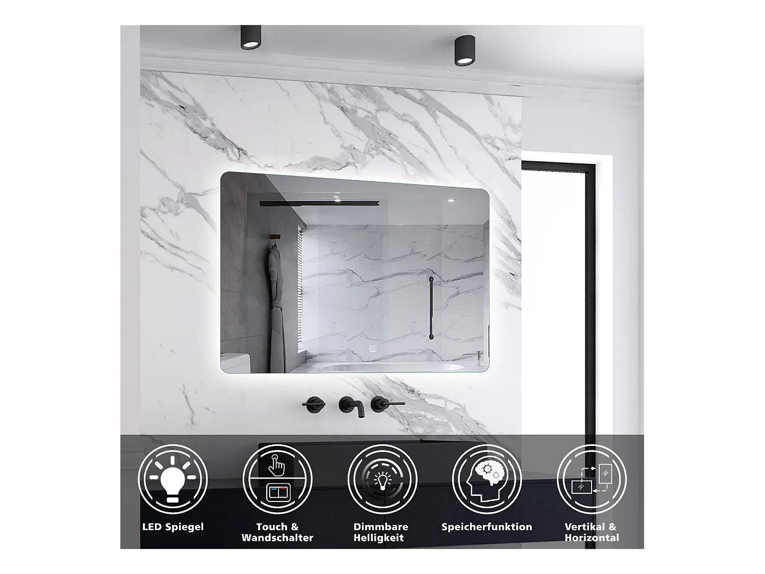 AICA Badspiegel mit LED-Beleuchtung 80x60cm Kaltweiß Dimmbar Memory-Funktion