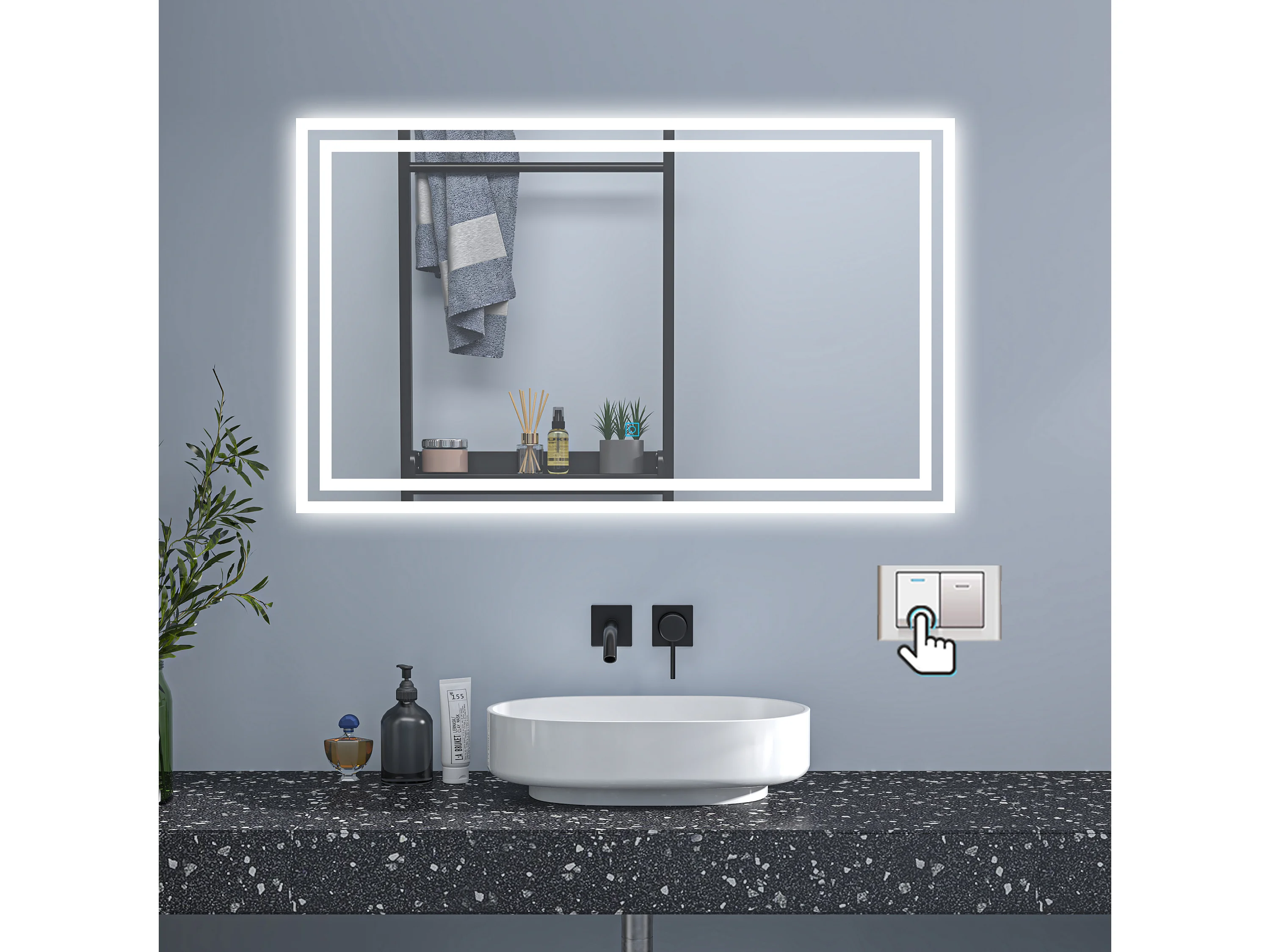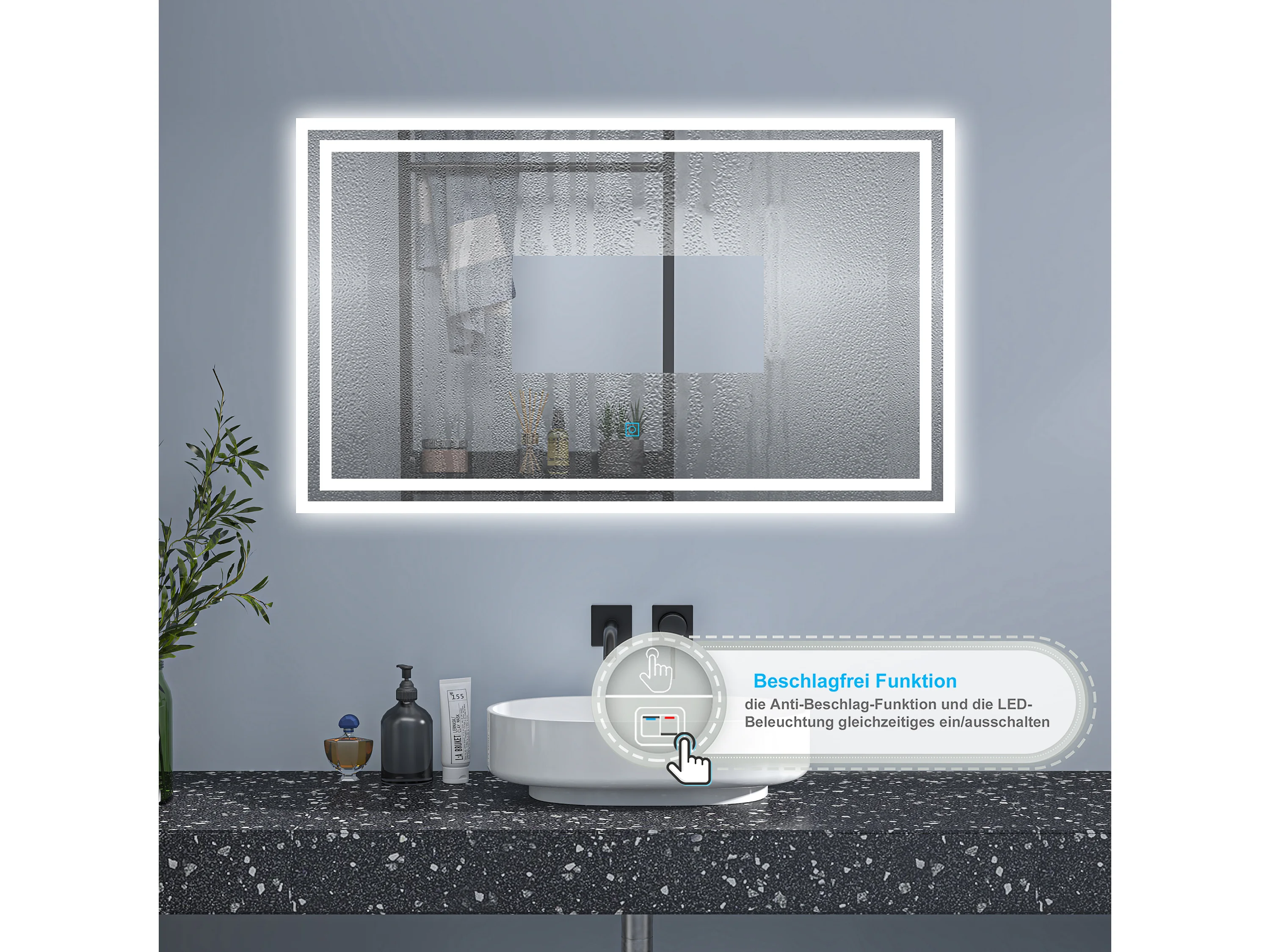 AICA Badspiegel mit LED-Beleuchtung 90x70cm Wand/Touchschalter Beschlagfrei 3 Lichtfarbe+Dimmbar Memory-Funktion - PICHON
